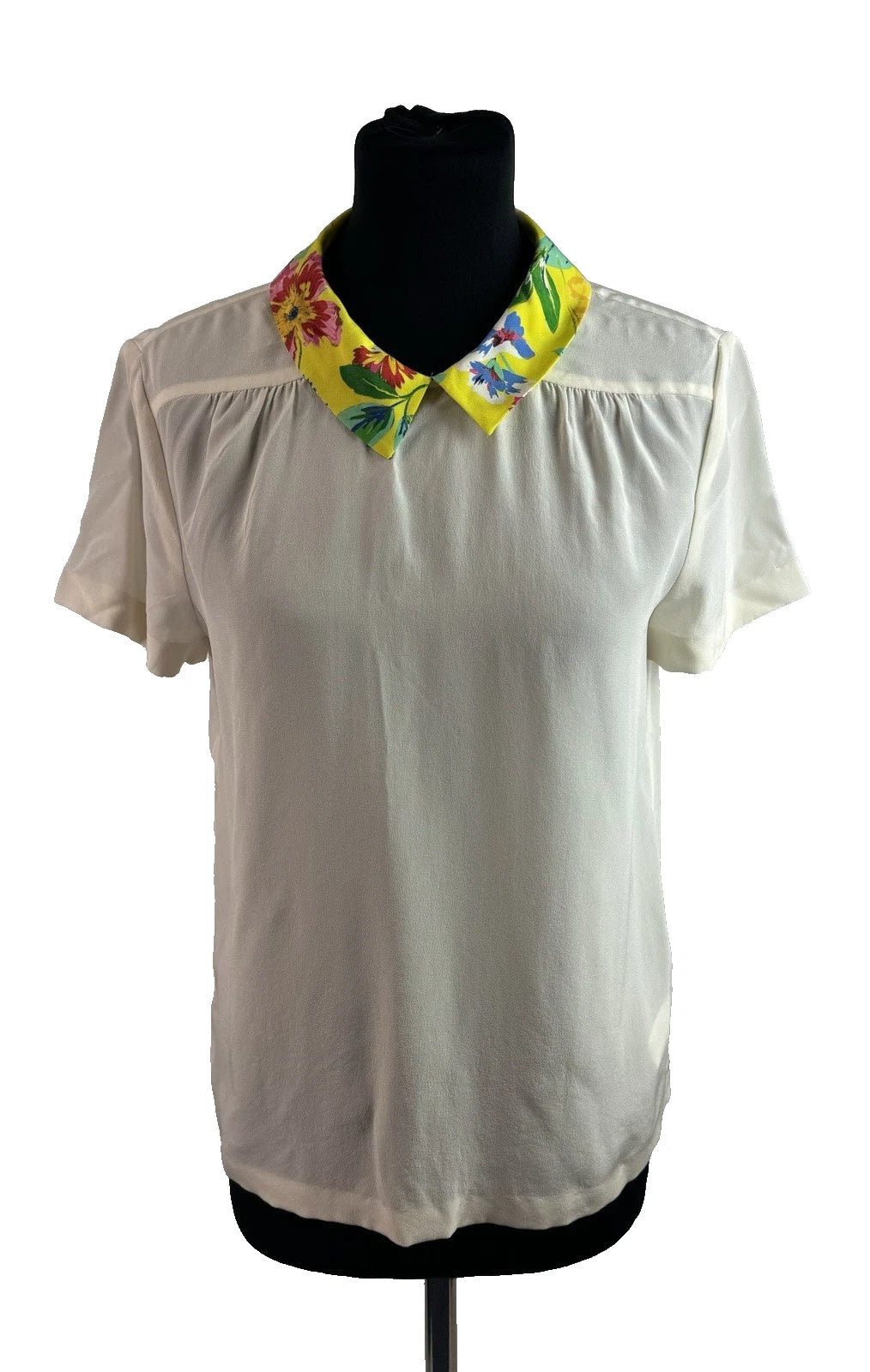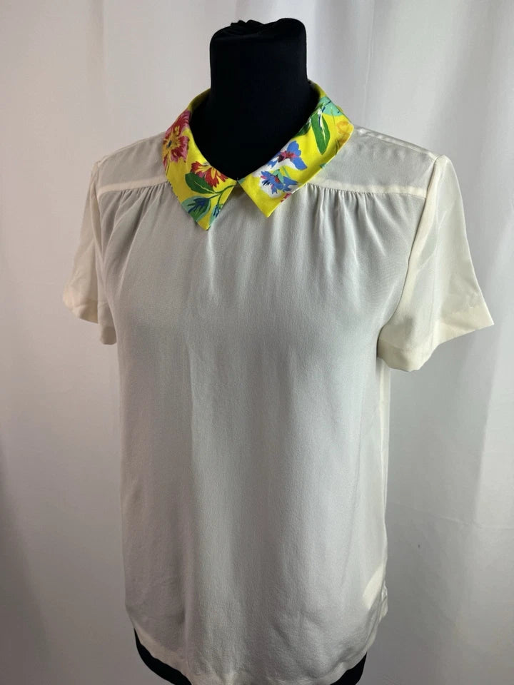 Kate Spade Silk Cream Women’s Colourful Collar Blouse Size Small- NEW