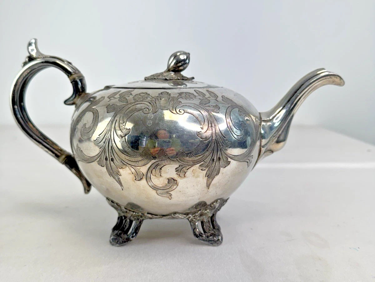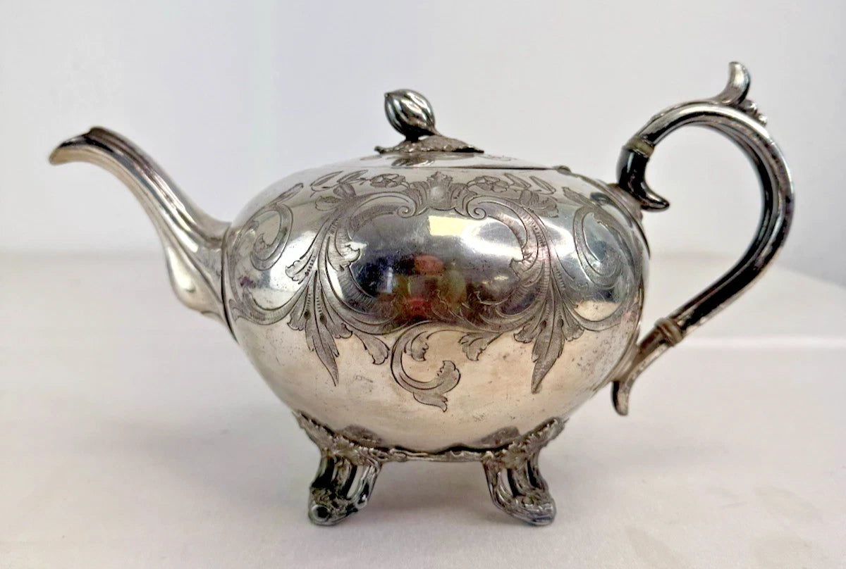 Ant Victorian James Dixon & Sons EPBM Silver Plated Ornate Teapot Sheffield 1800s