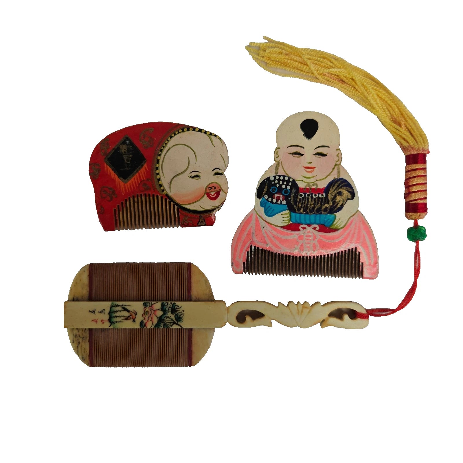 Chinese Tiny Miniature Painted Wooden Combs