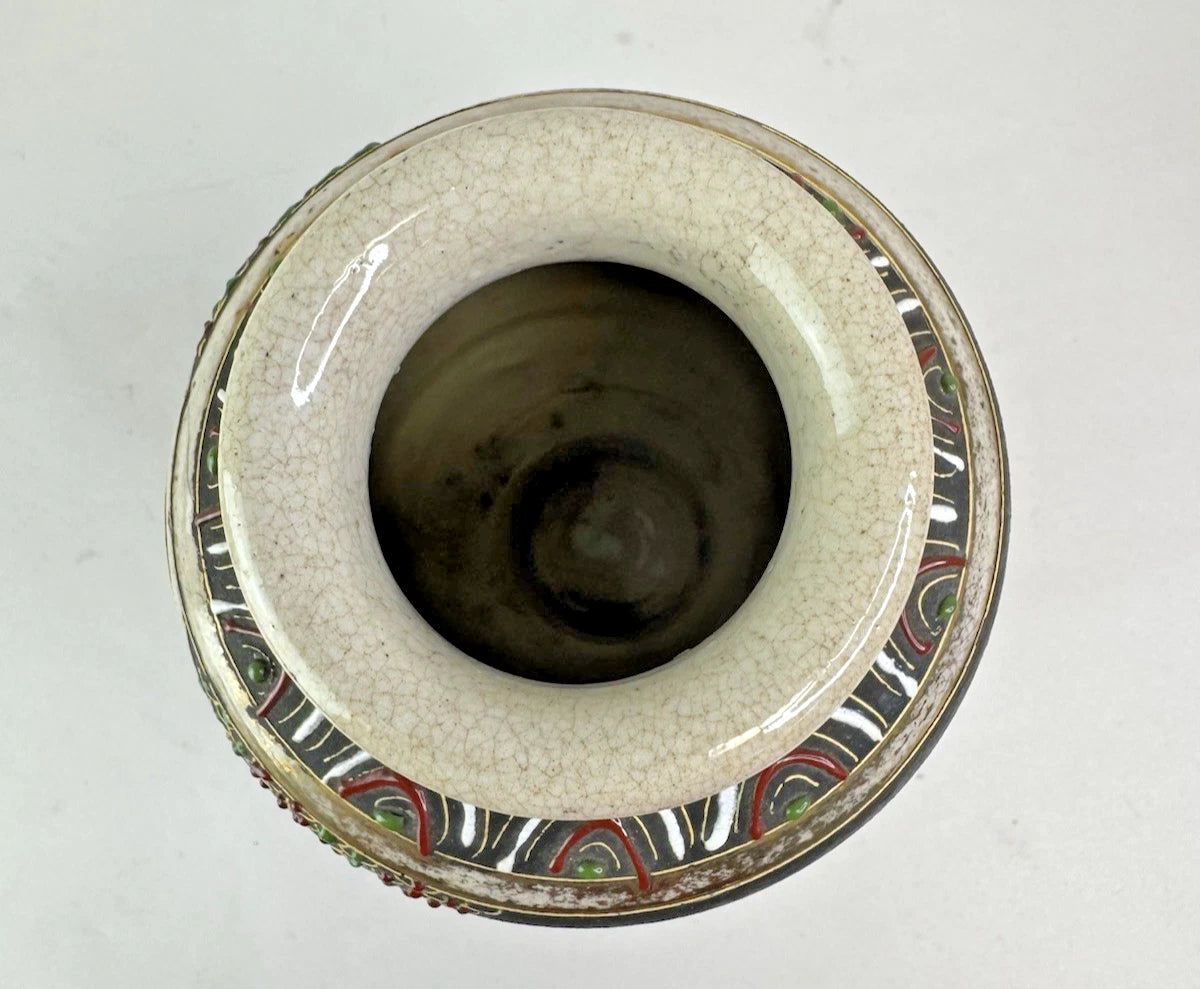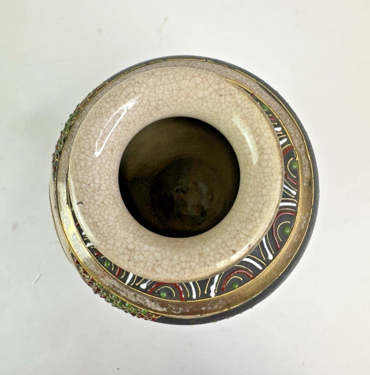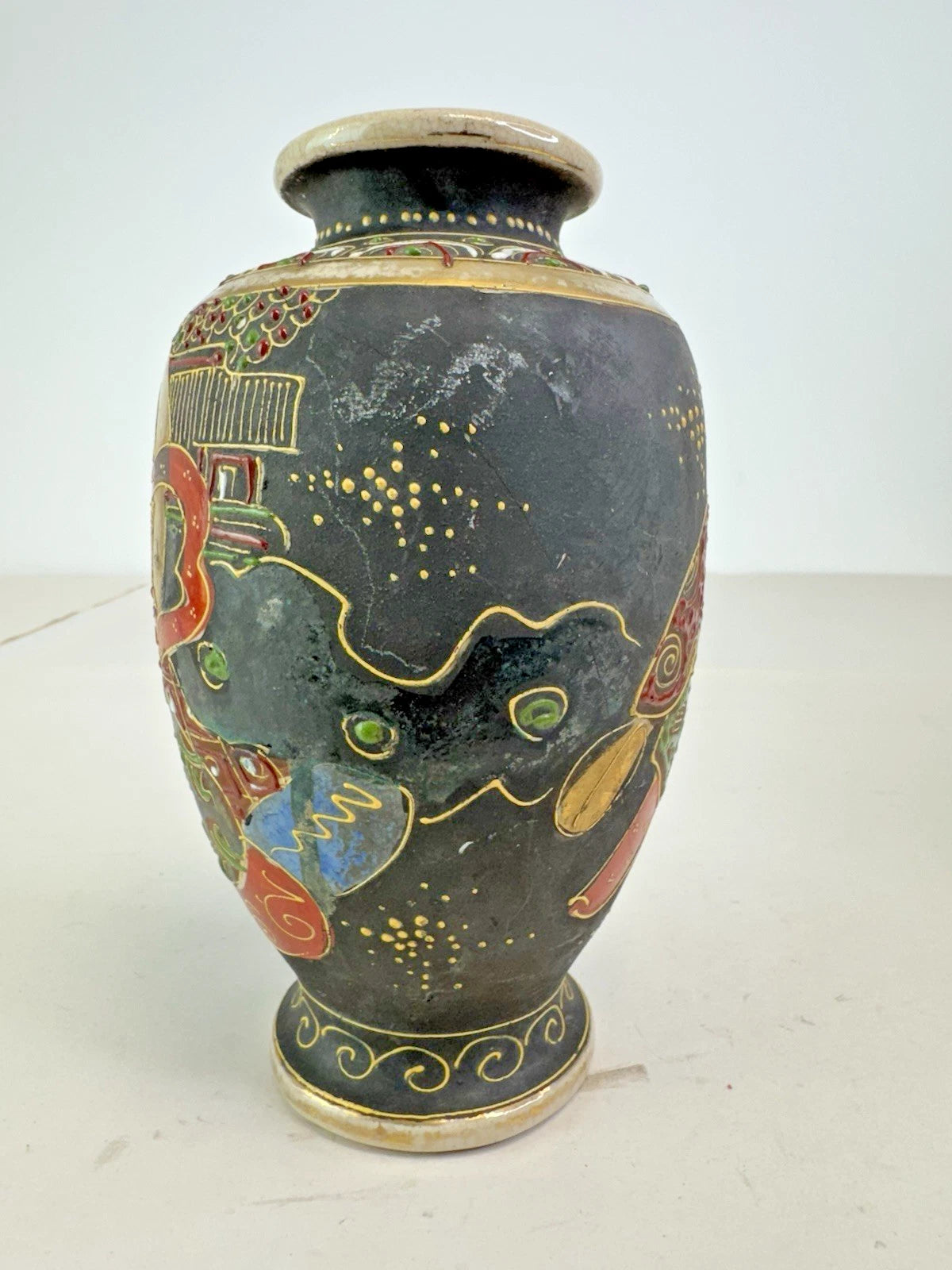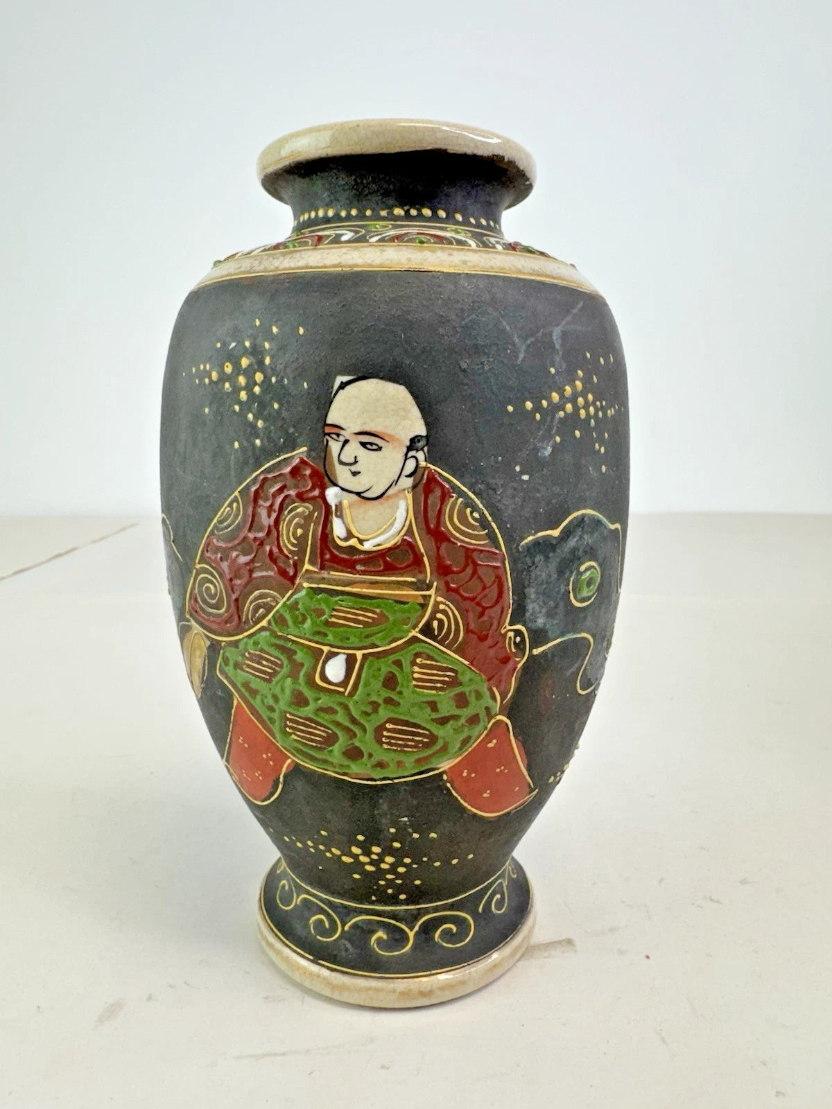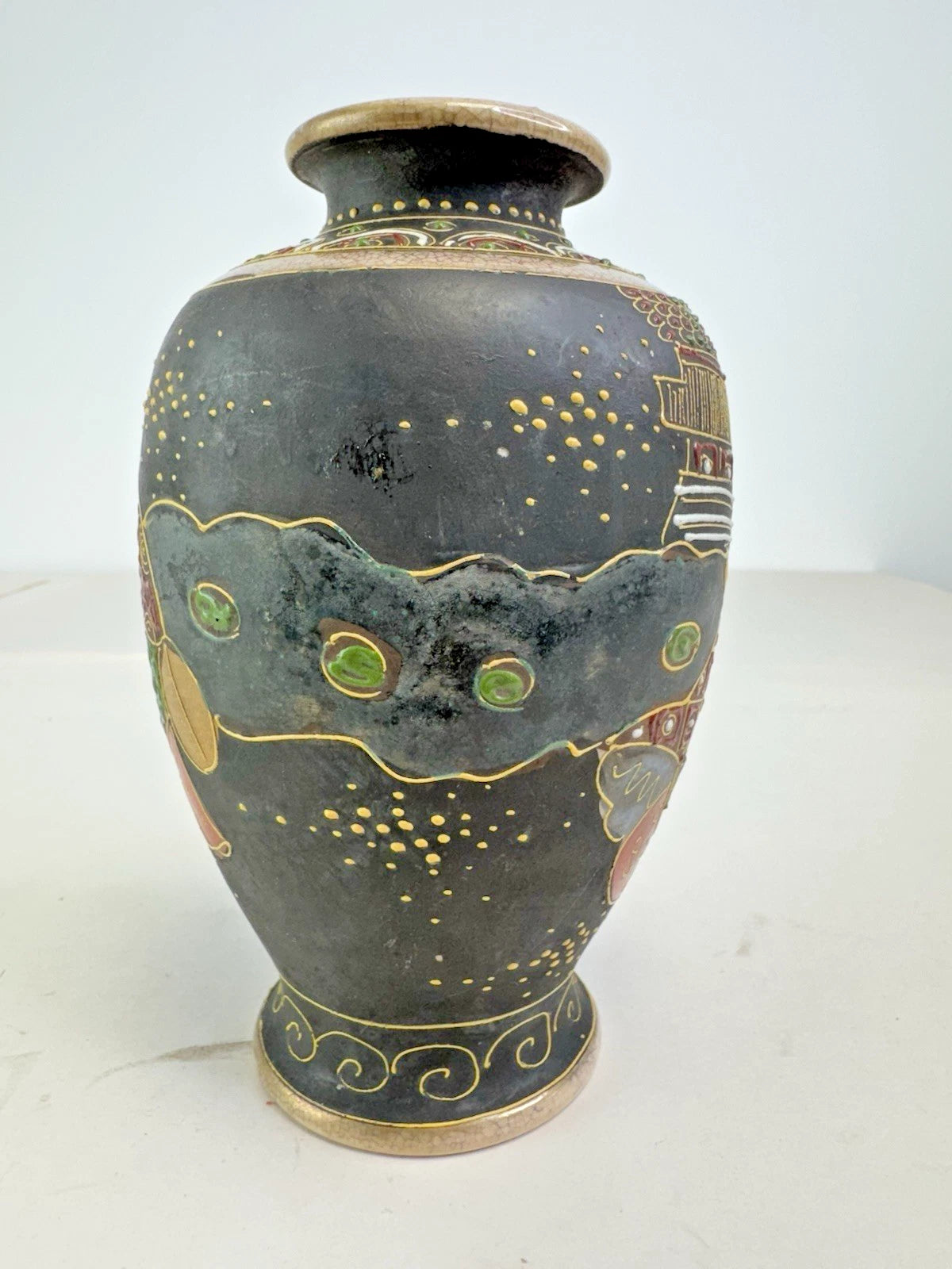 Pair of Antique Japanese Satsuma Moriage Vases Hand-Painted Figural Immortal 7.5" Tall