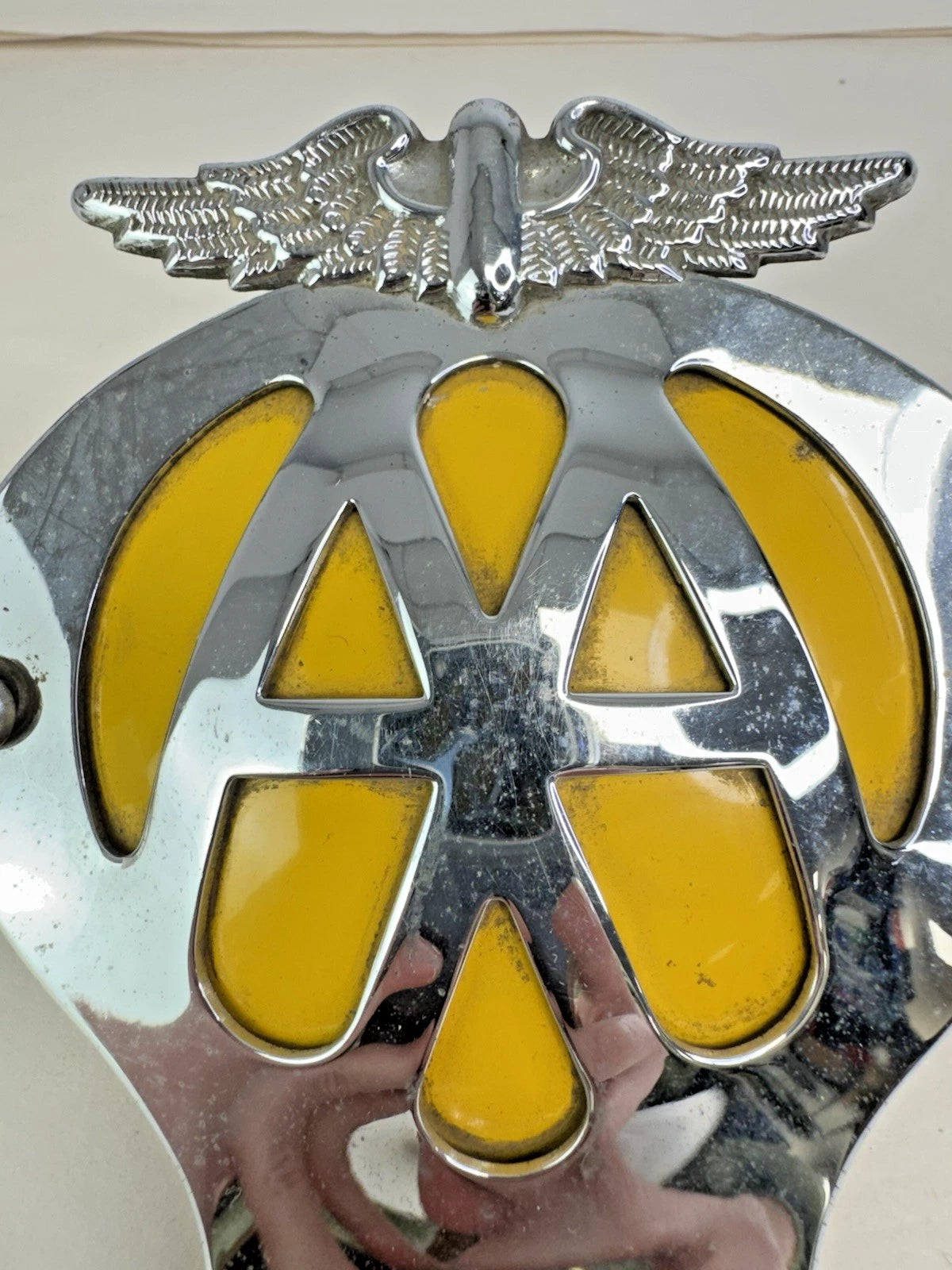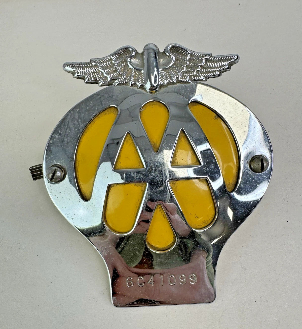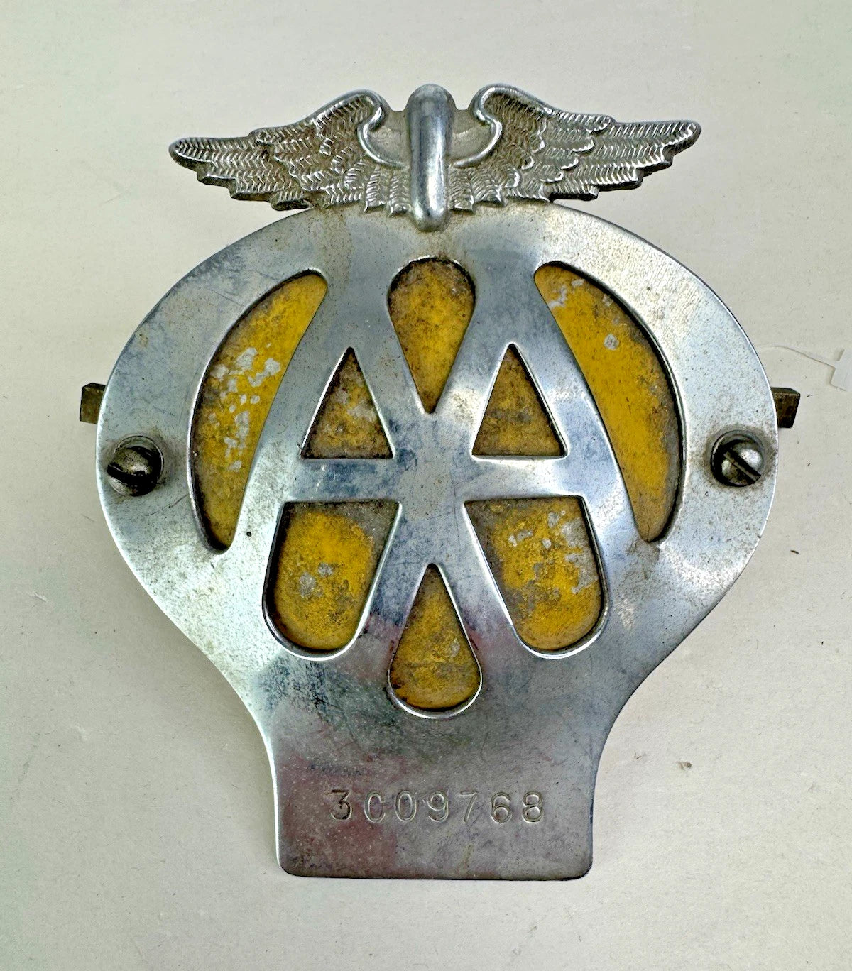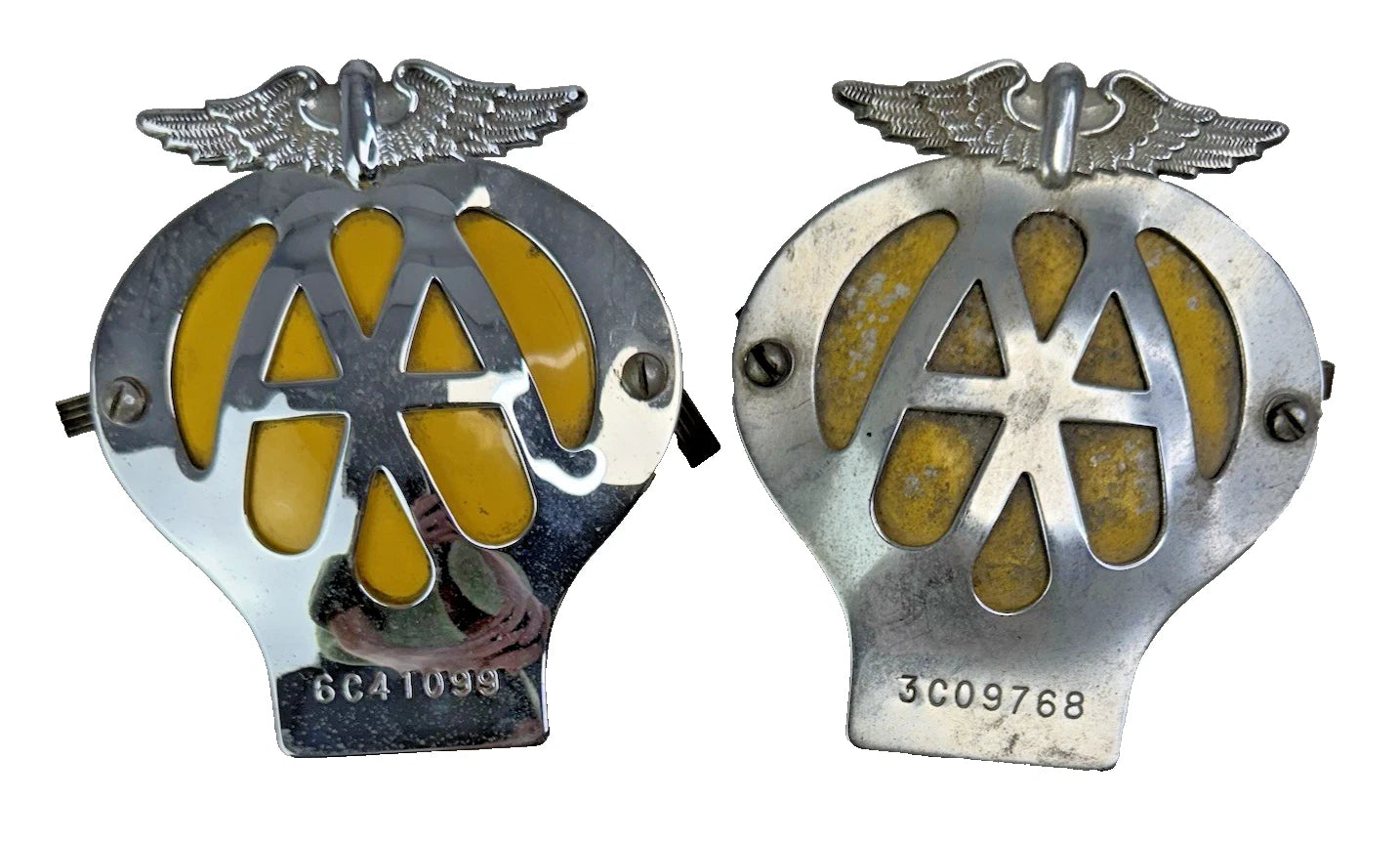 Pair Vtg AA Car Badge Automobile Association Emblem 1962-63 Serial 3C09768-6C41099