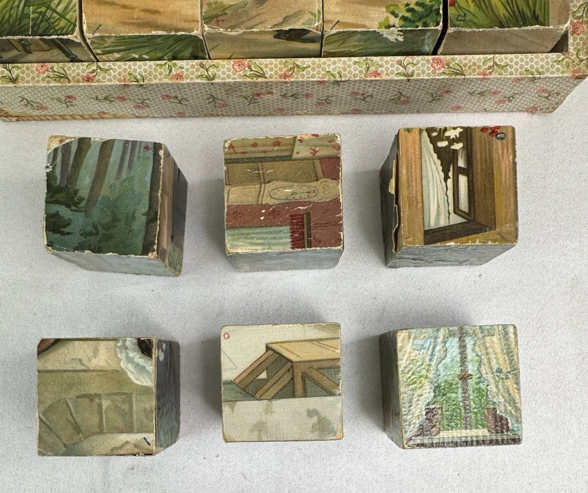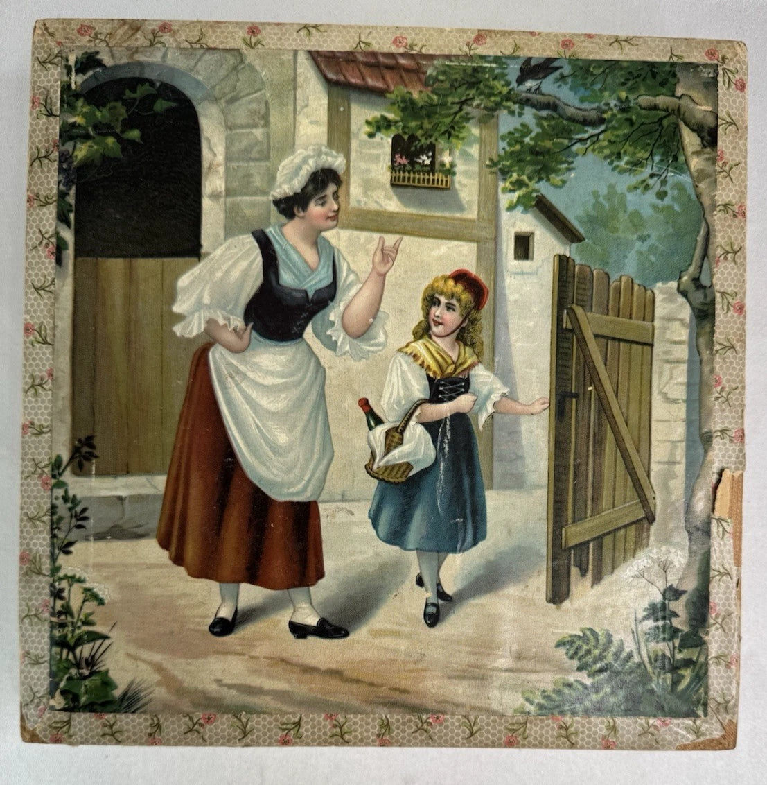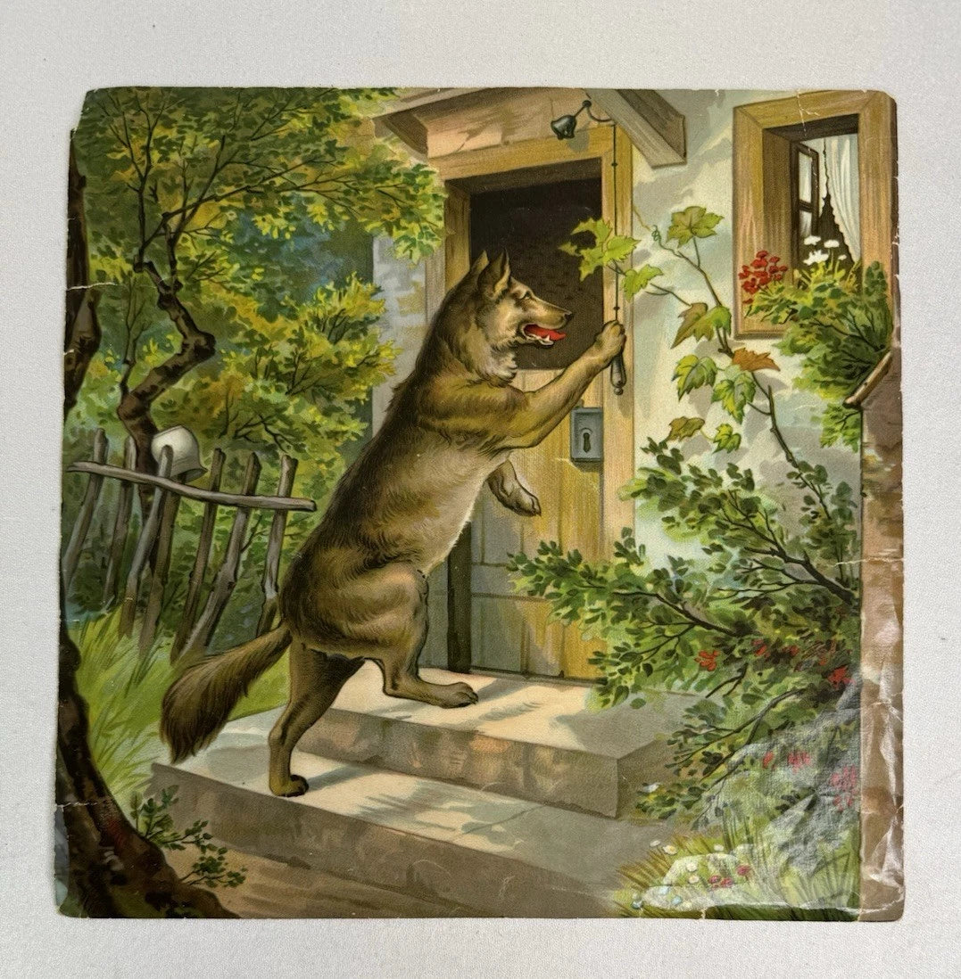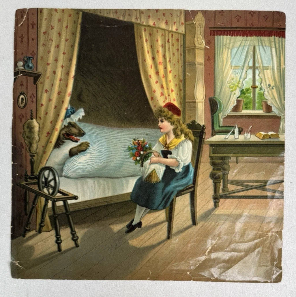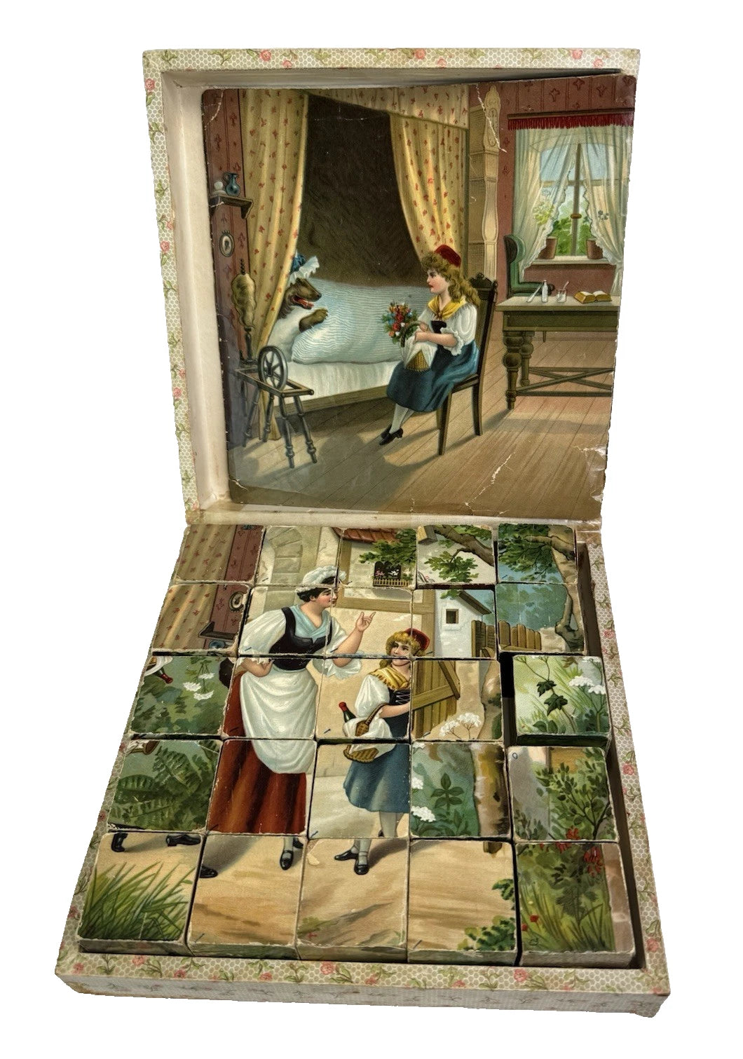 Rare Antique 6 in 1 Wooden Block Puzzle Little Red Riding Hood Fary Tale German