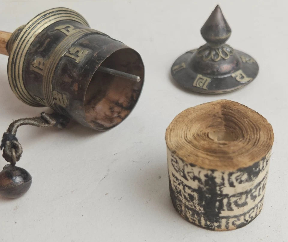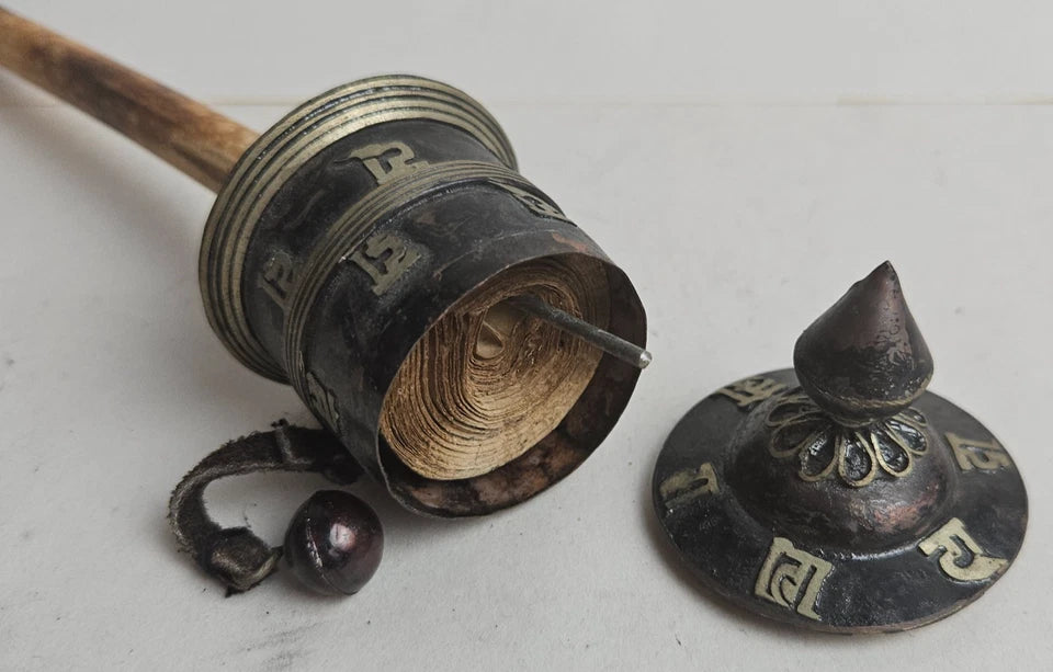 Tibetan Hand Prayer Wheel Vintage 24.5cm