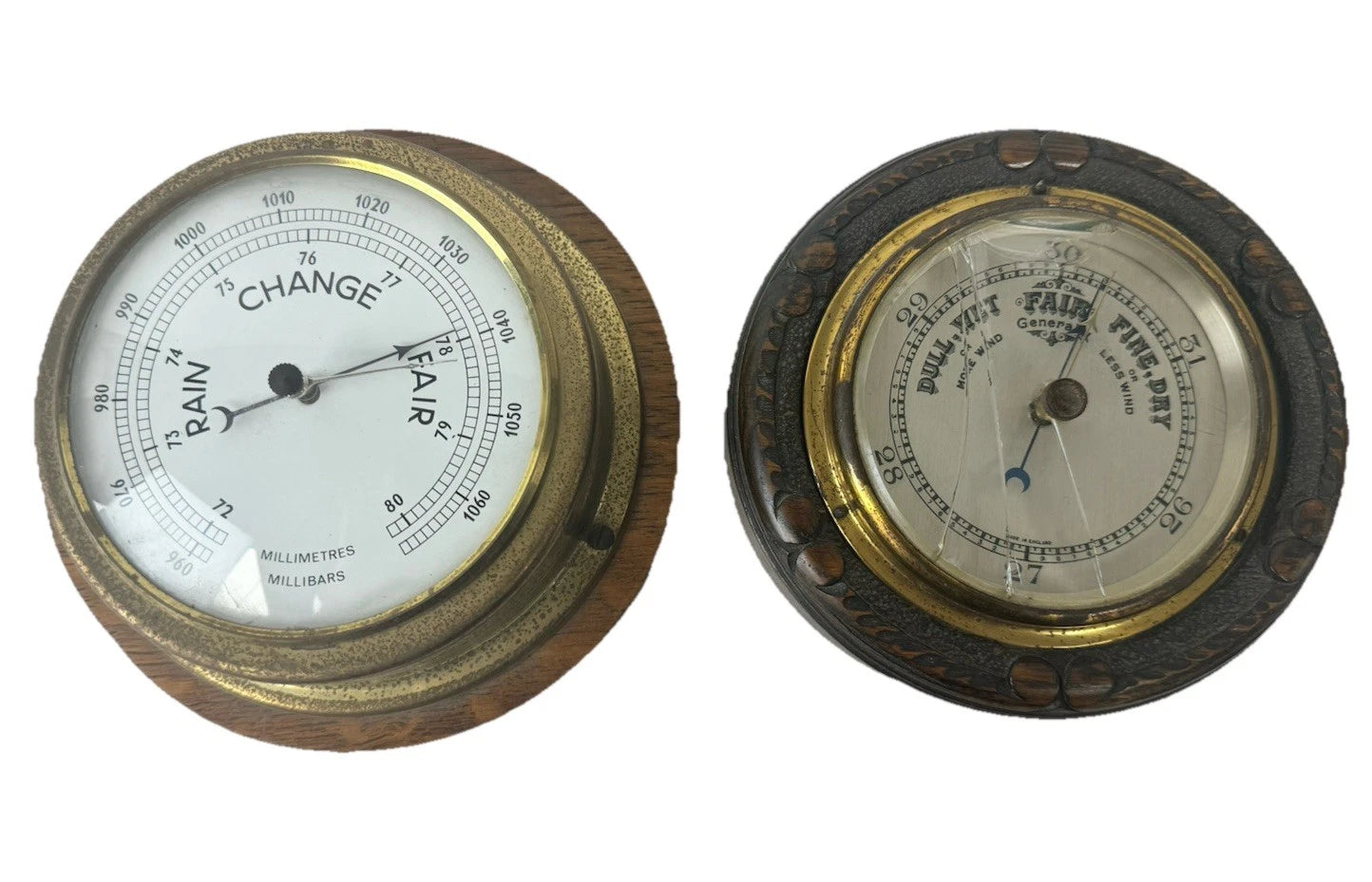 Vintage Barometer Bundle x2 Wood & Brass Weather Barometers- SEE DESCRIPTION