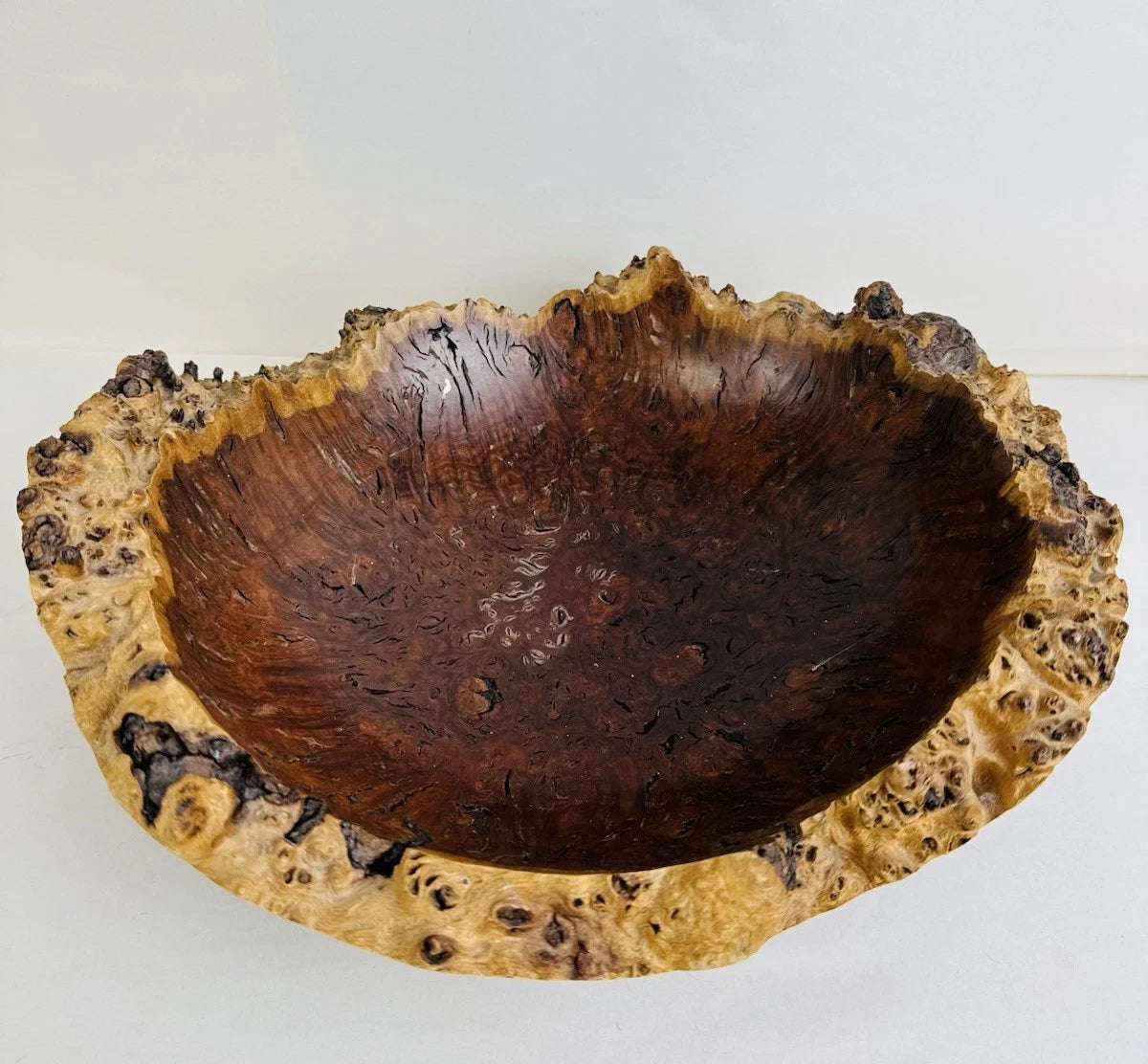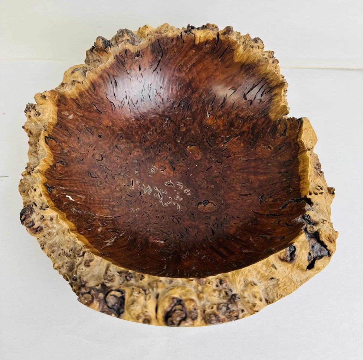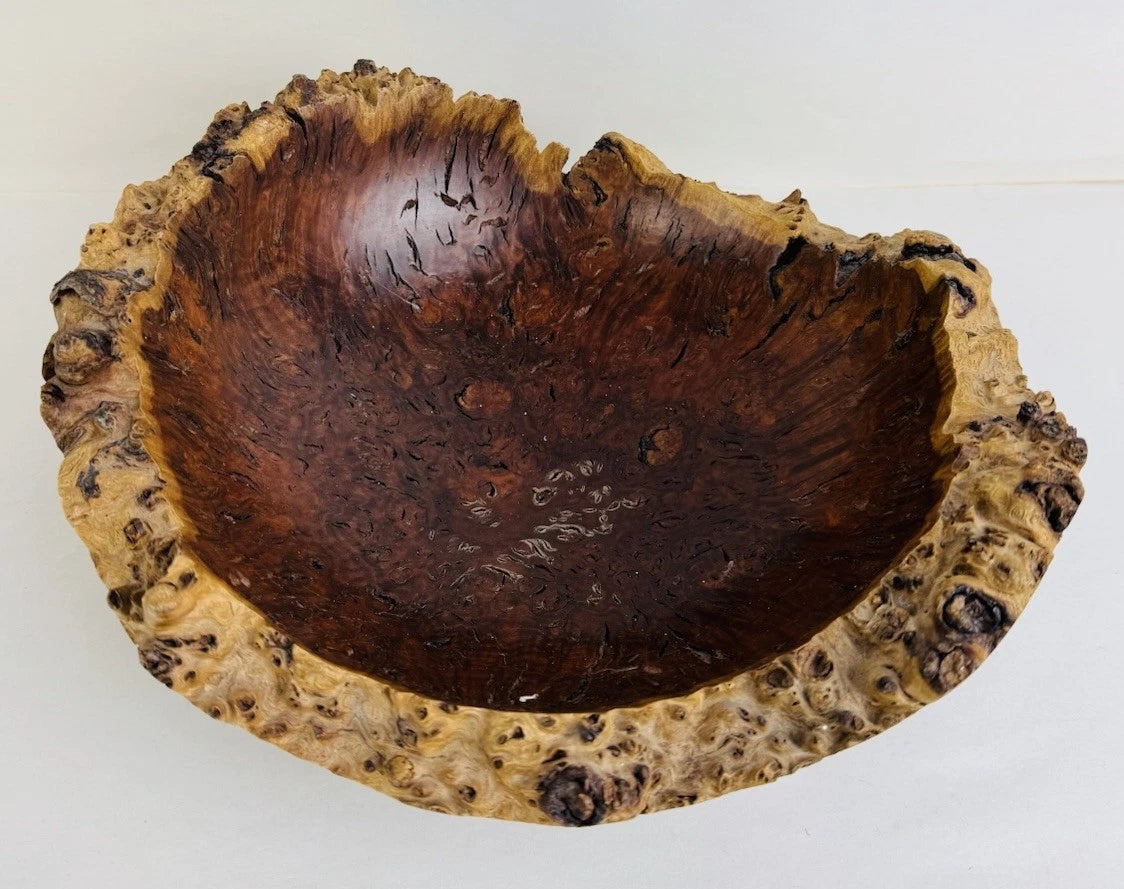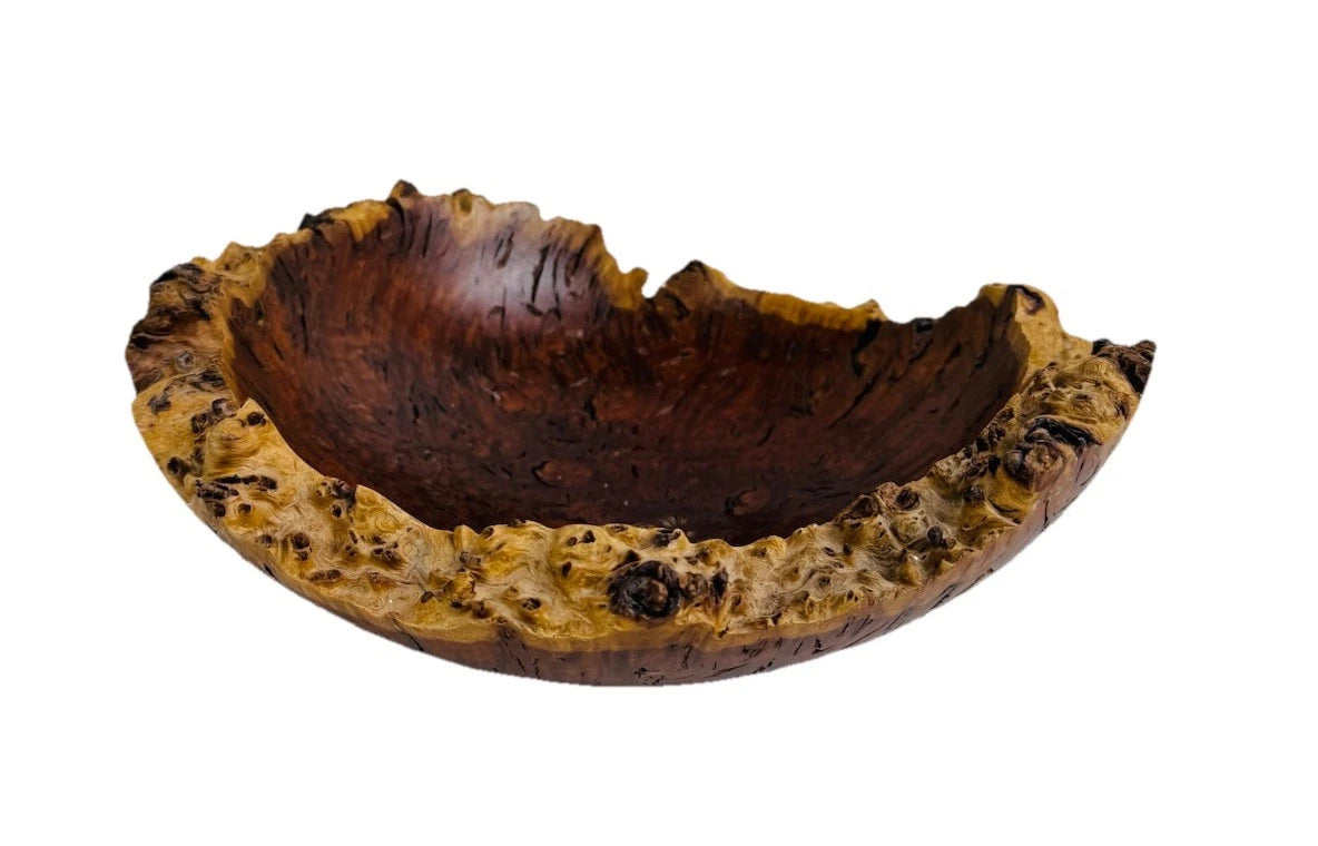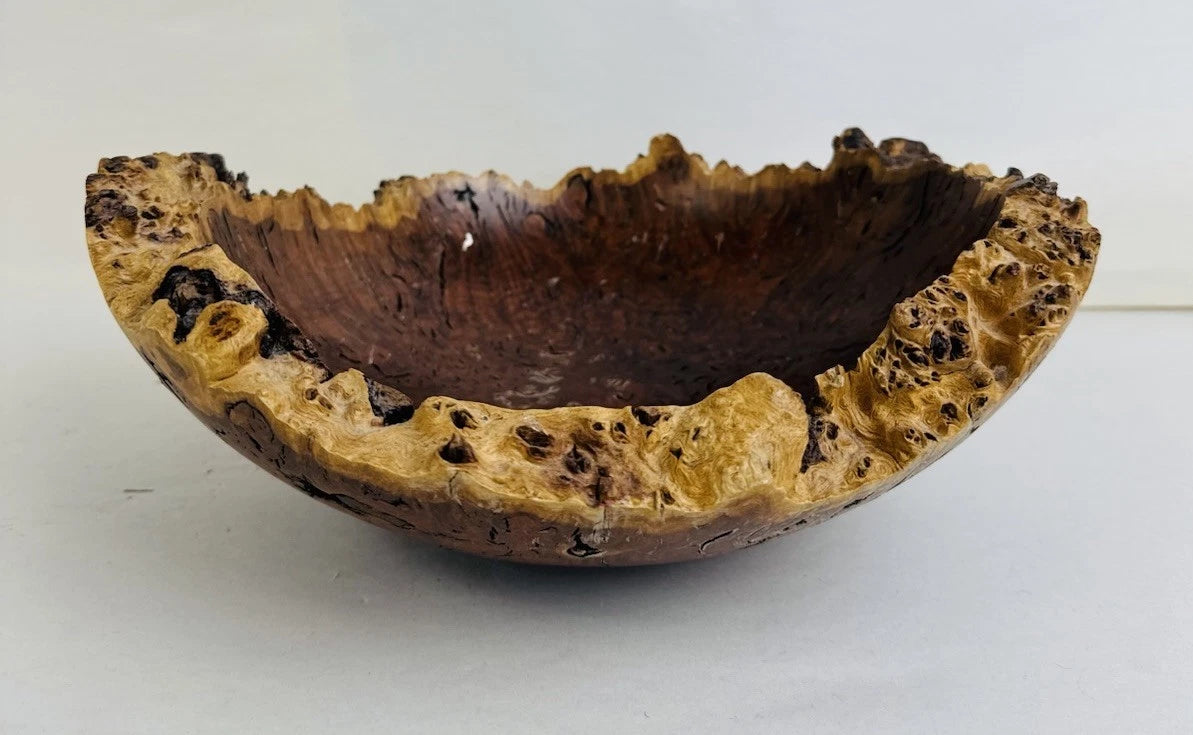 Vintage Hand Carved Wooden Brown Burl Bowl