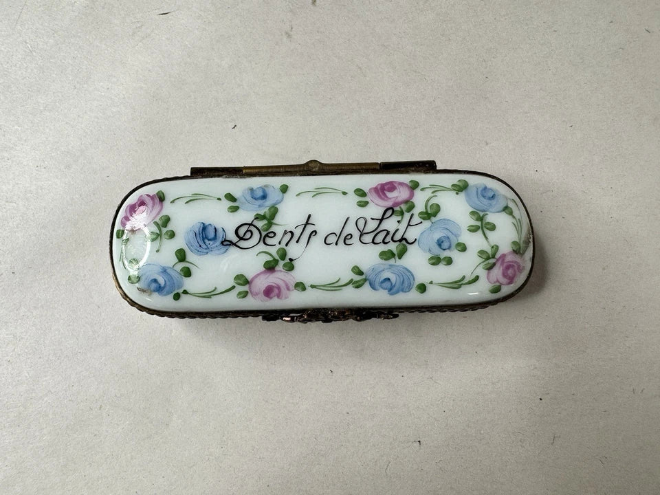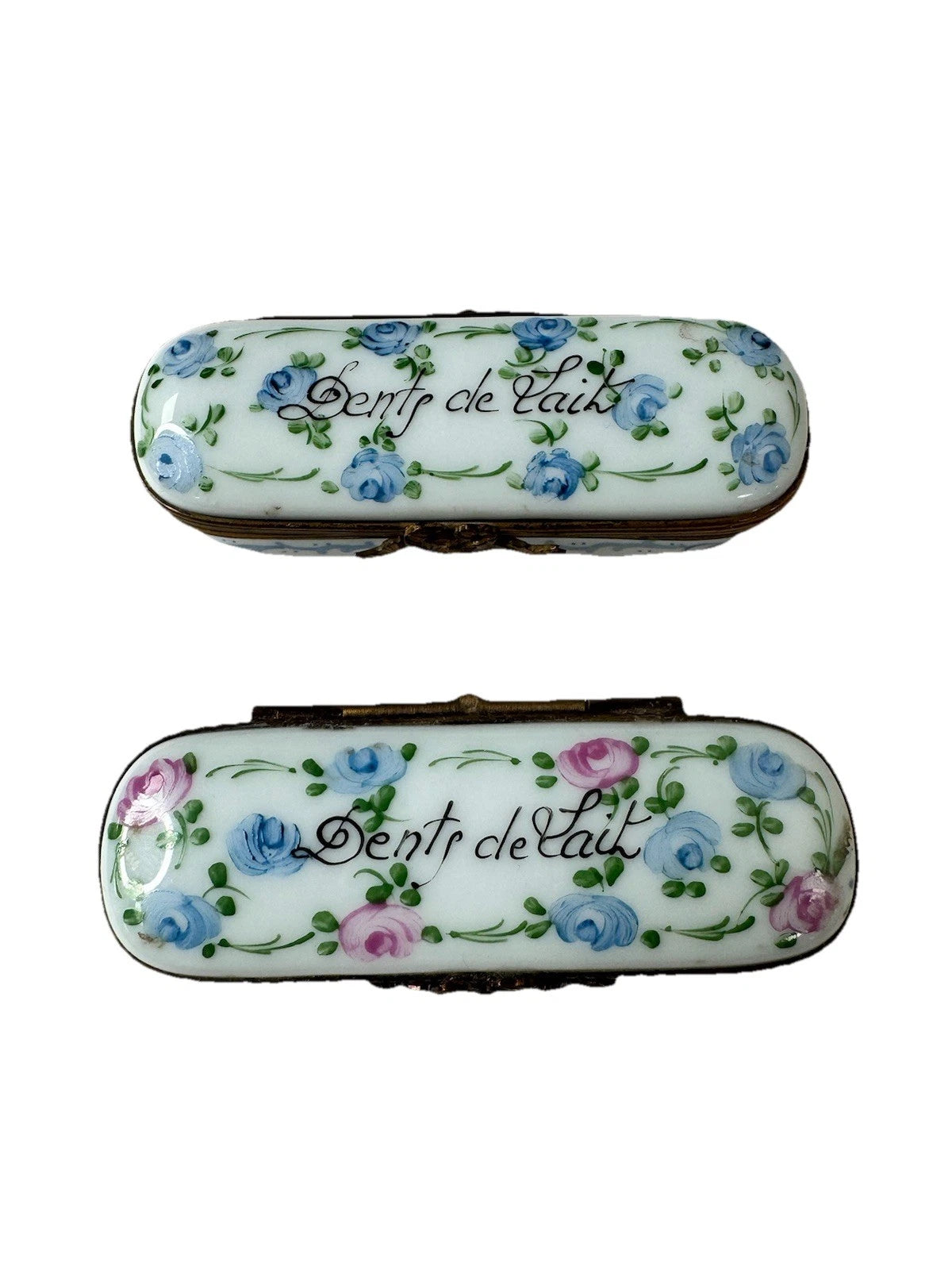 Limoges France Set x2 Porcelain Keepsake Milk Teeth Trinket Boxes