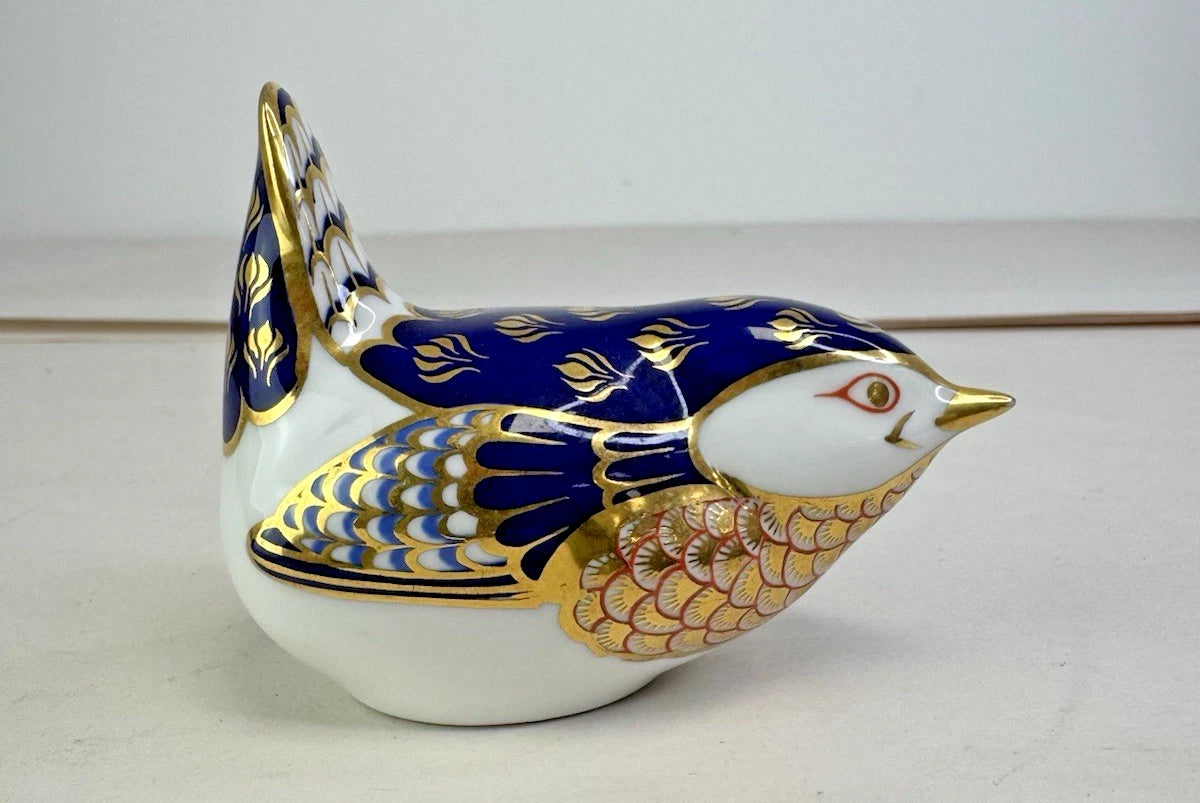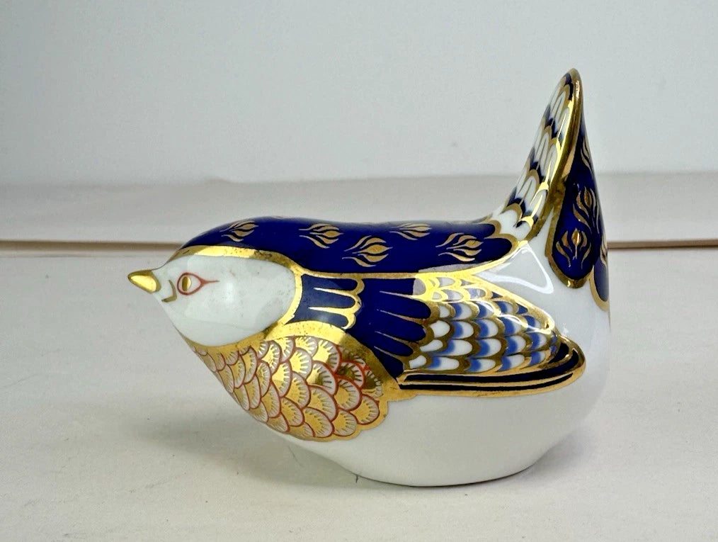 Vintage Royal Crown Derby Wren Bird Paperweight Imari Pattern Bone China Gold Stopper