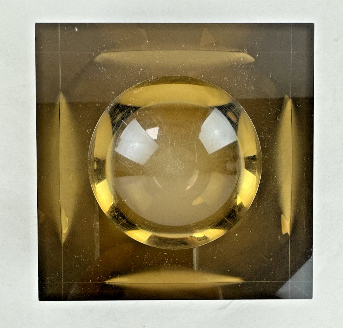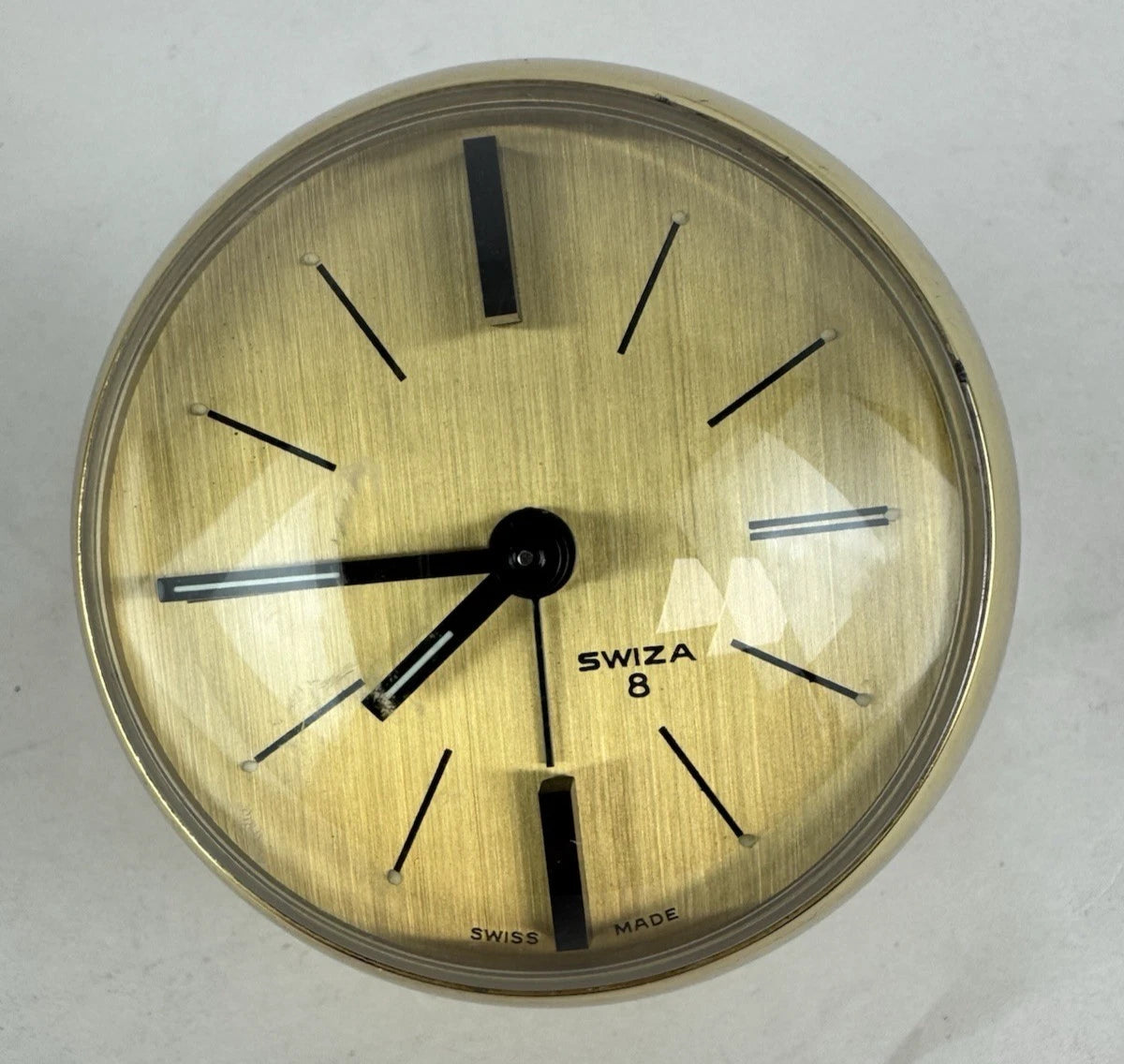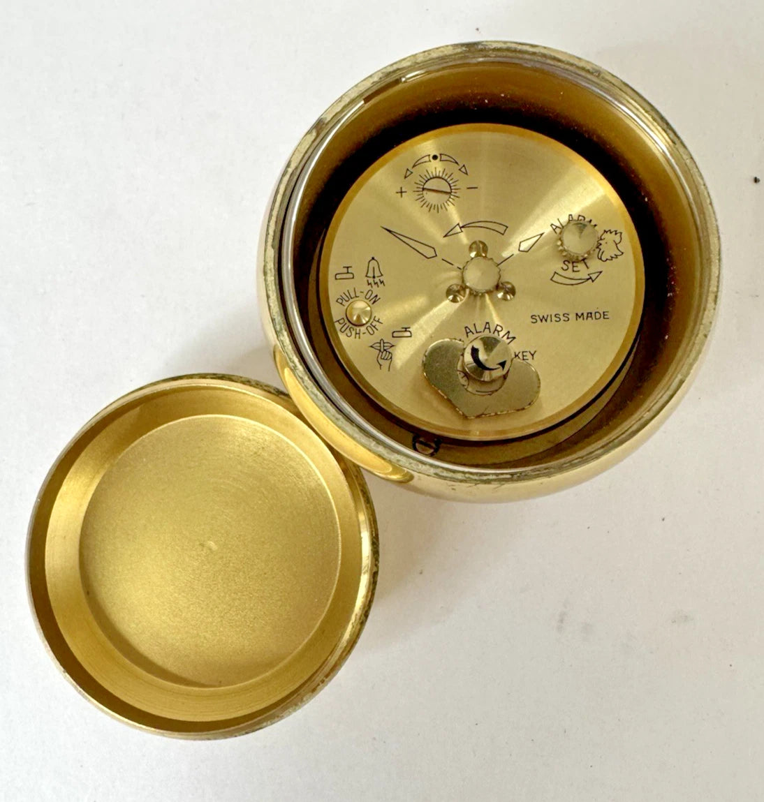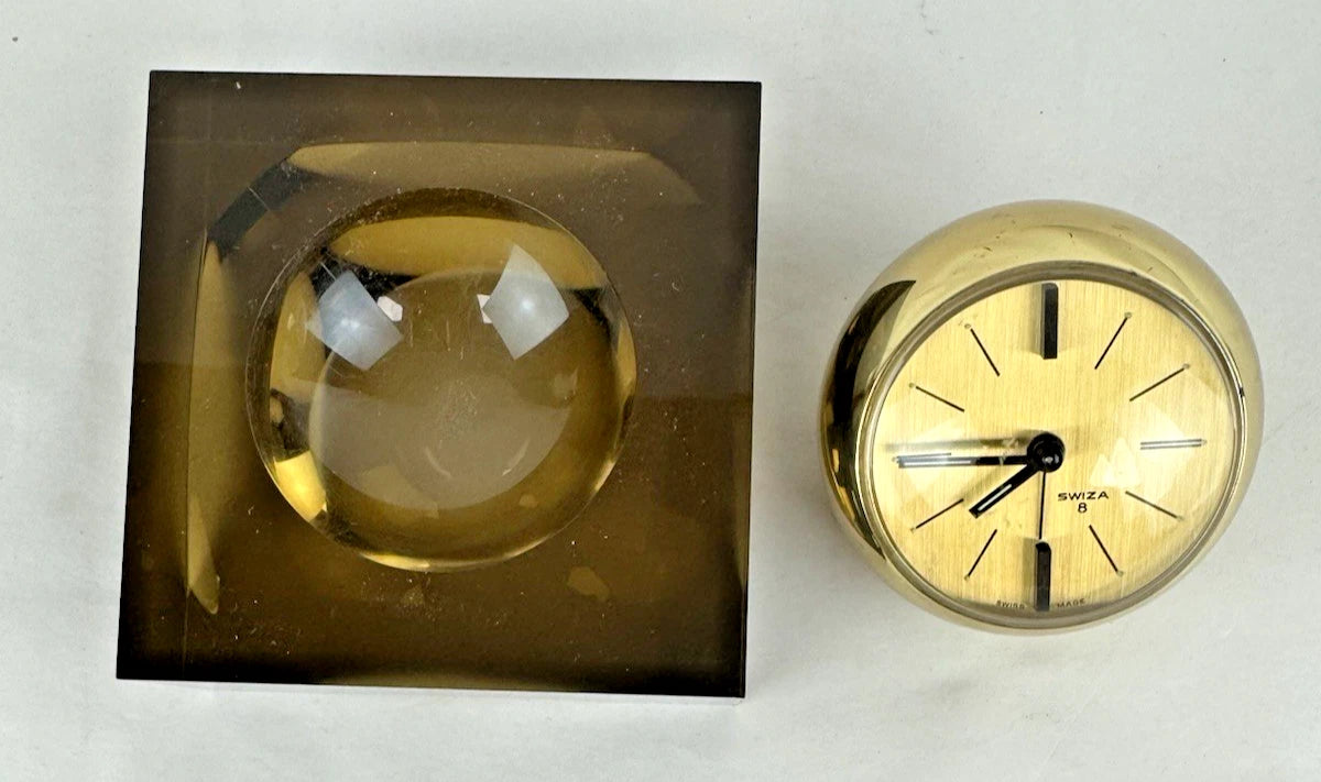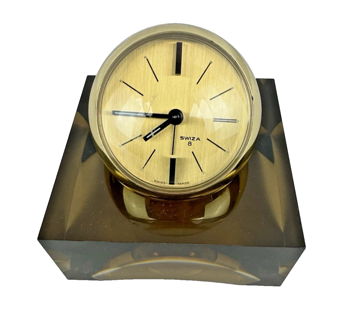 Swiza 8 Mid Century Modern Brass Sphere Ball Alarm Clock Smoke Lucite Base - UNTESTED
