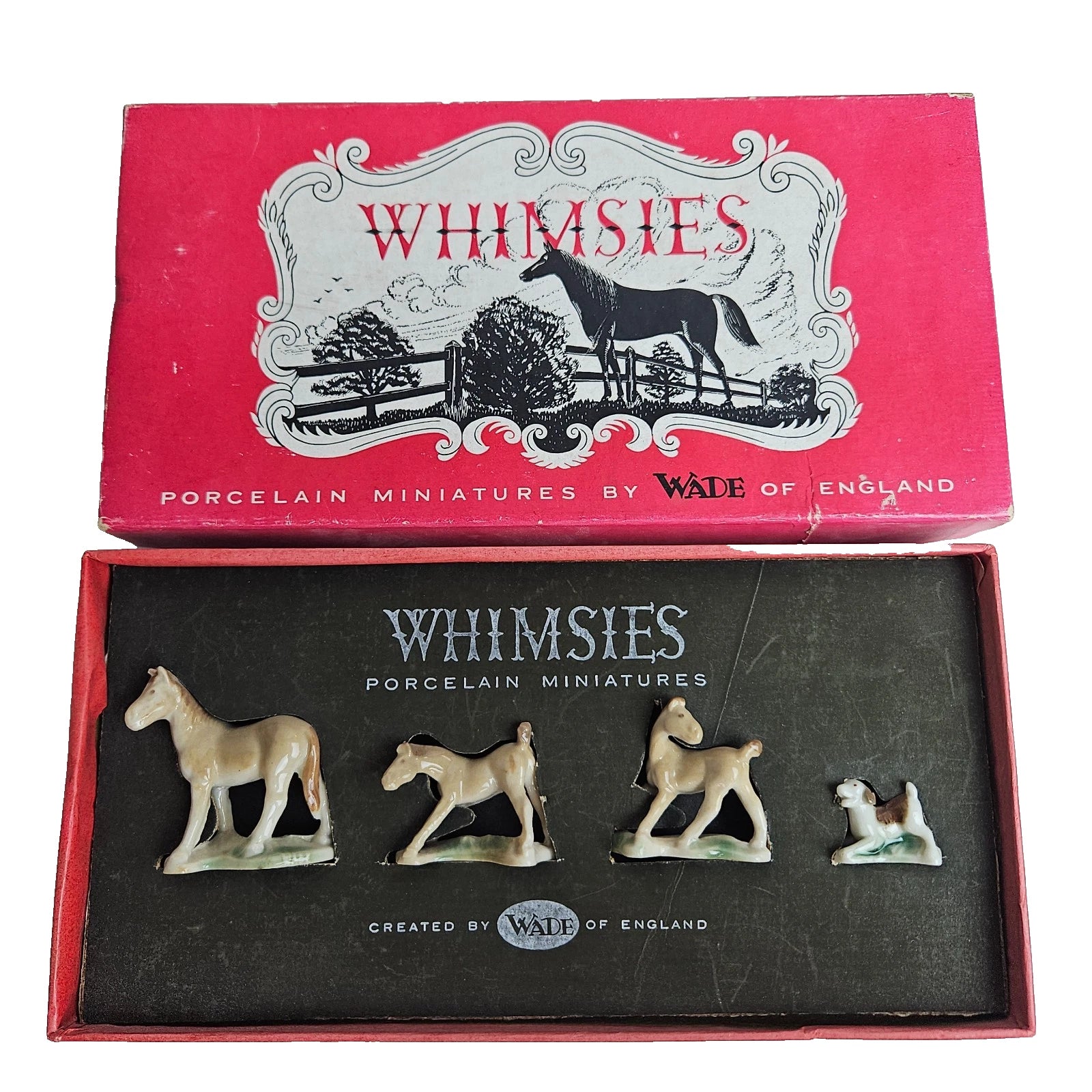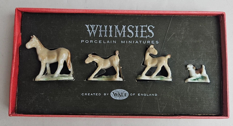 Wade Whimsies Porcelain Miniatures Set No 5 Horses and Beagle