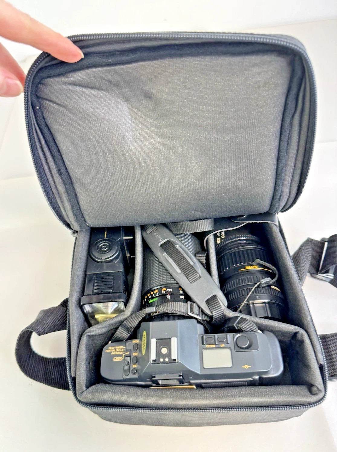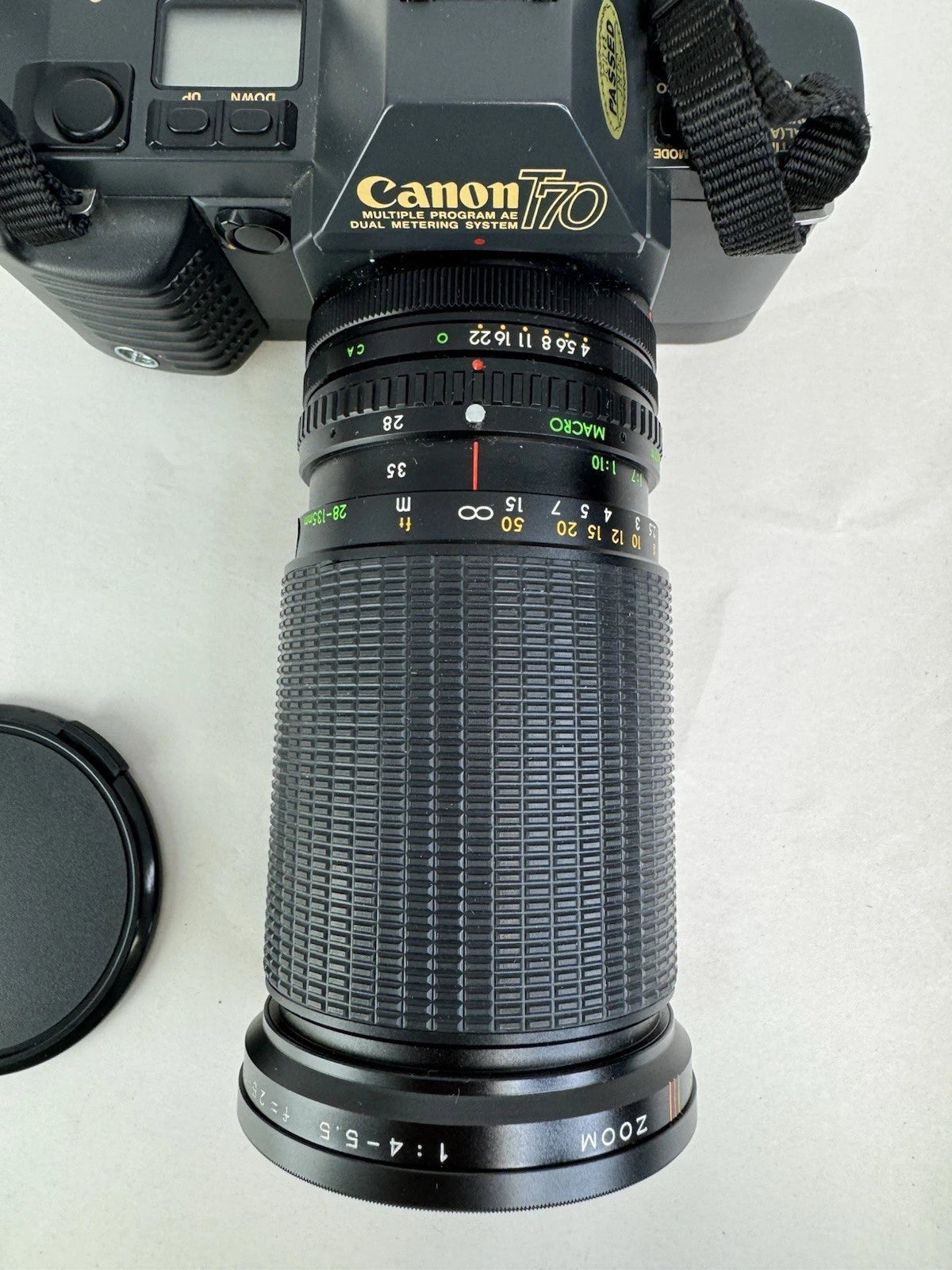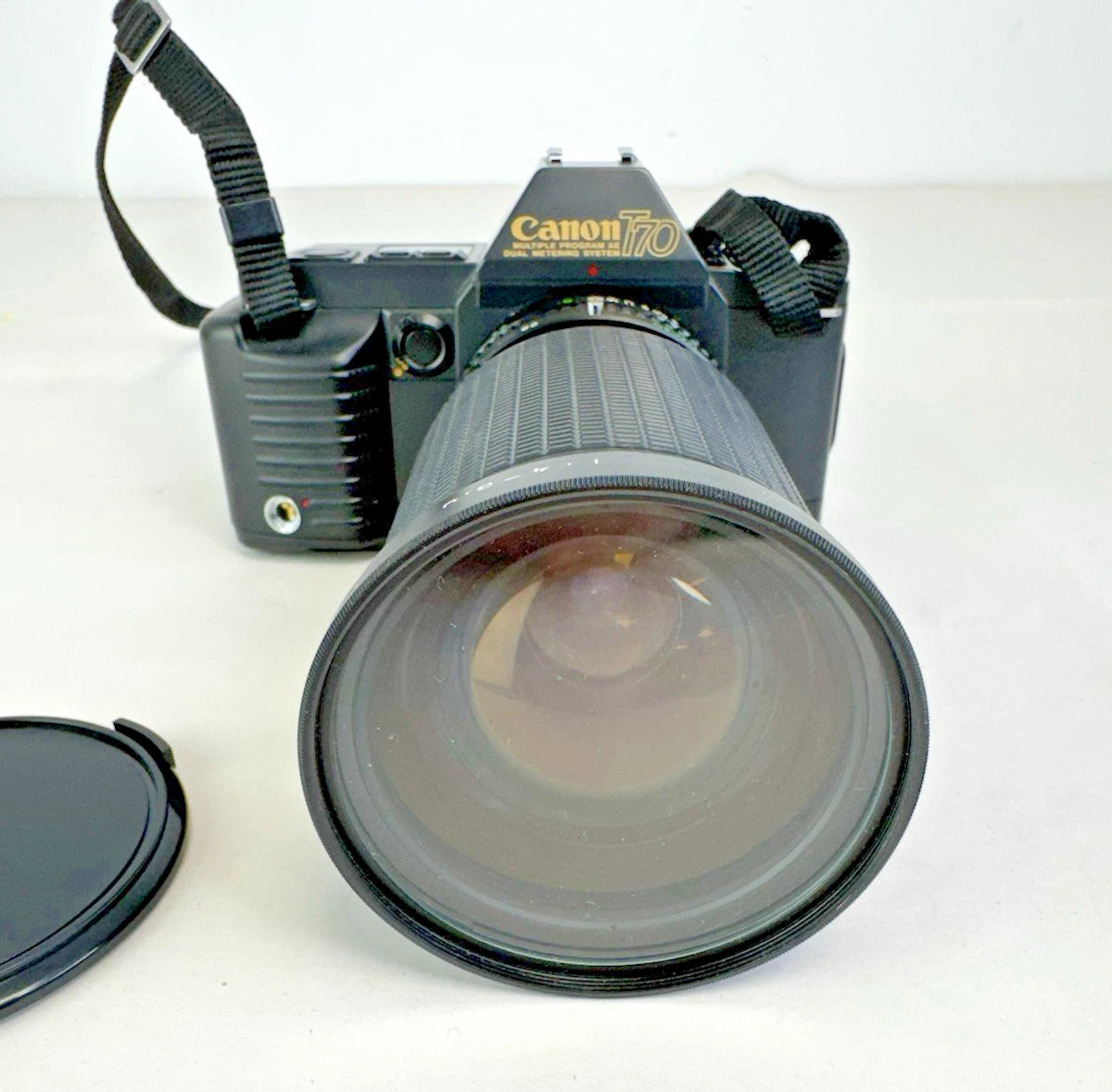 Canon T70 35mm SLR + FD 35-70mm & Makinon 28-135mm Lenses Flash Kit - UNTESTED