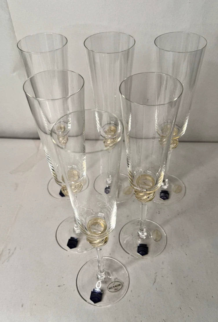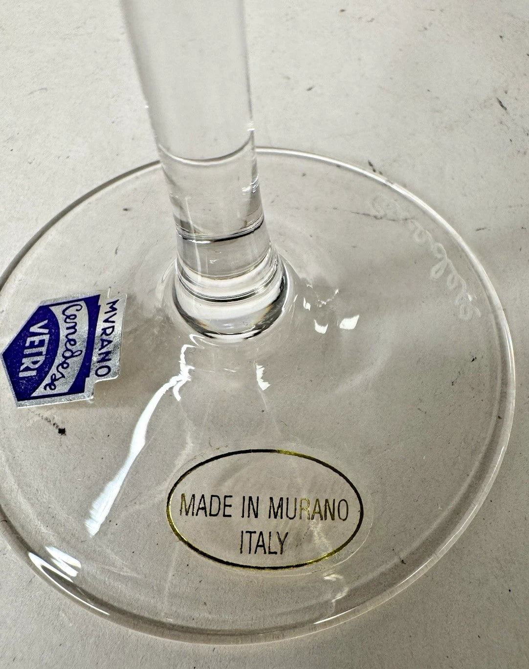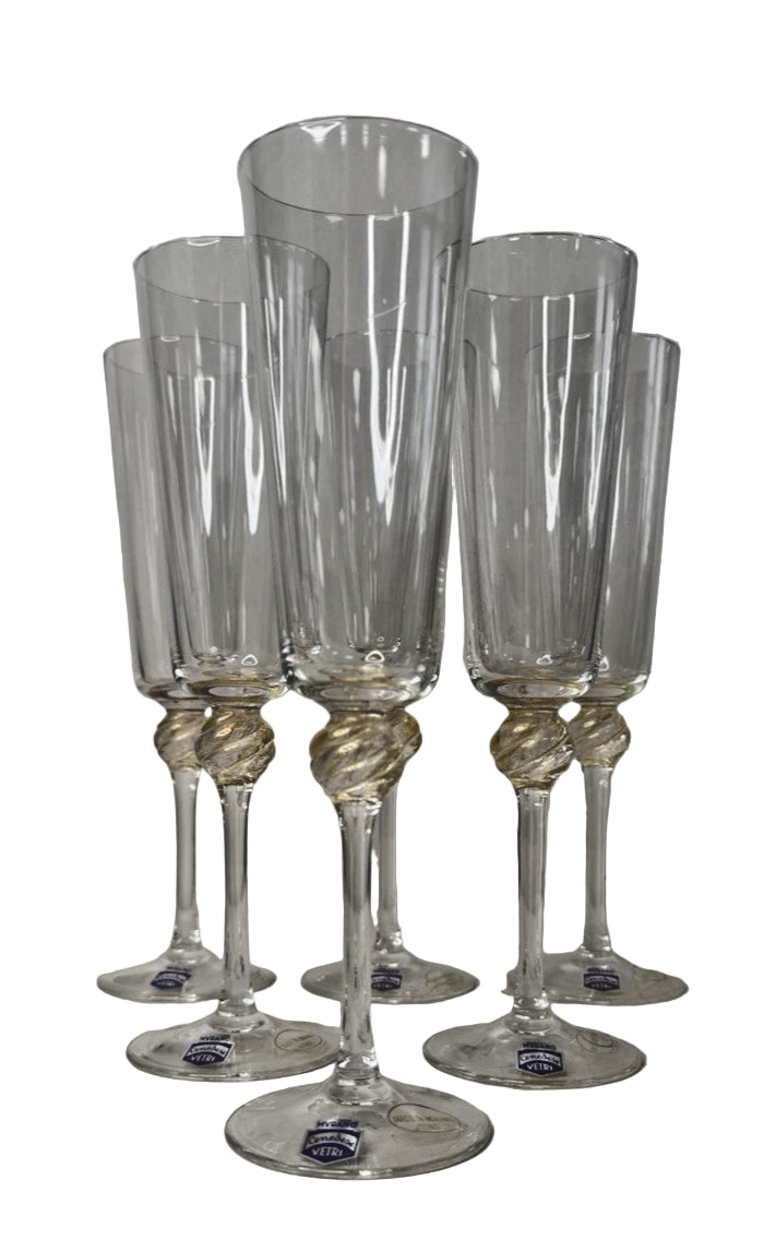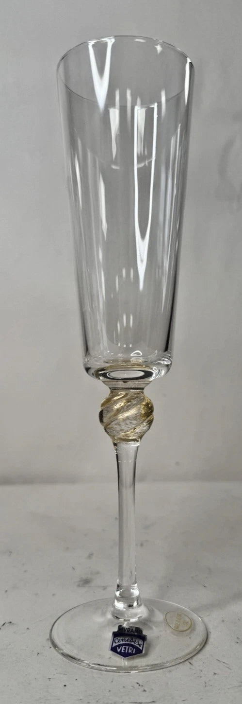 Murano Cenedese Vetri Crystal Champagne Flute Glass Set of 6 - NEW