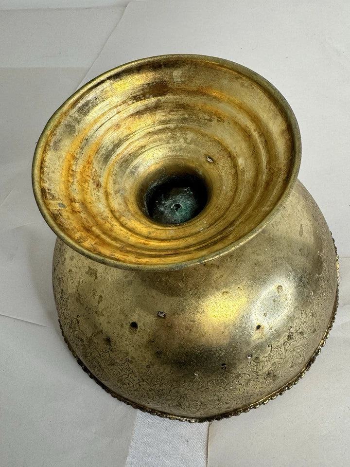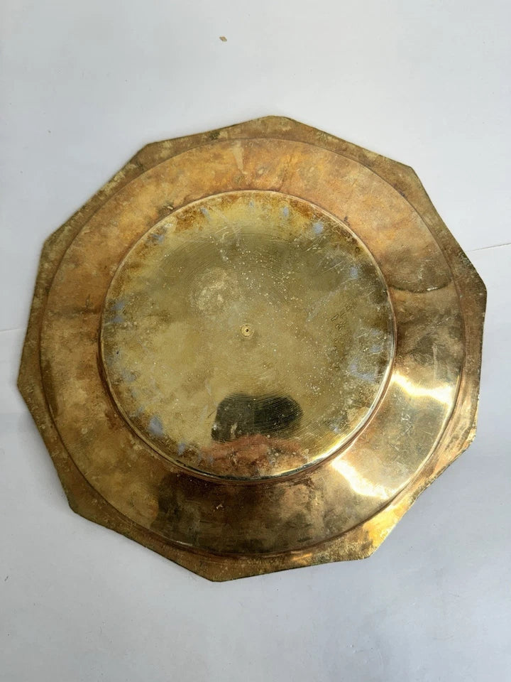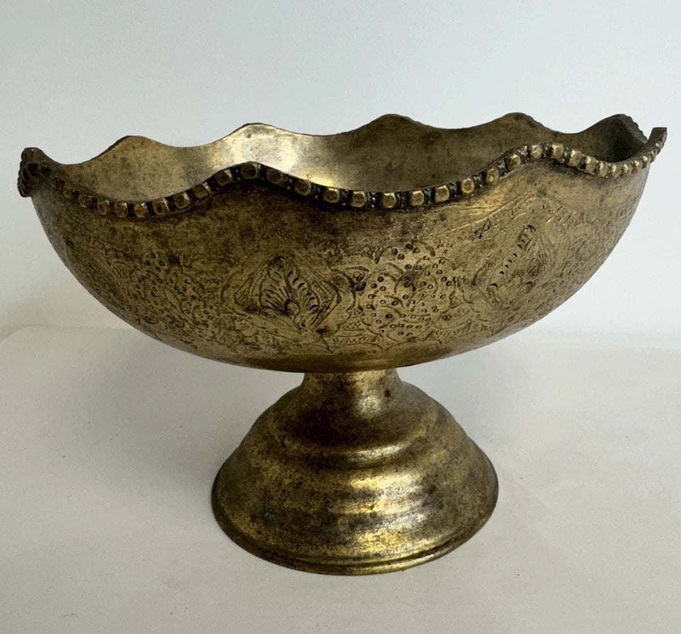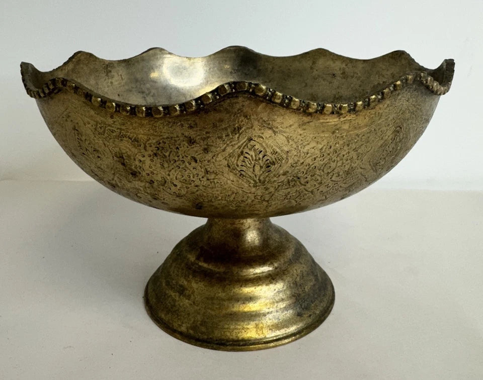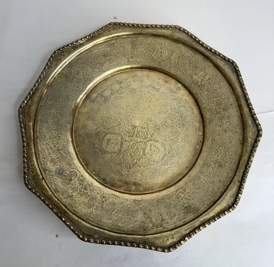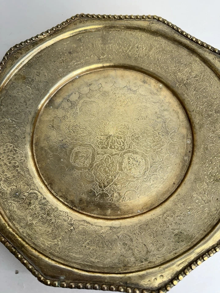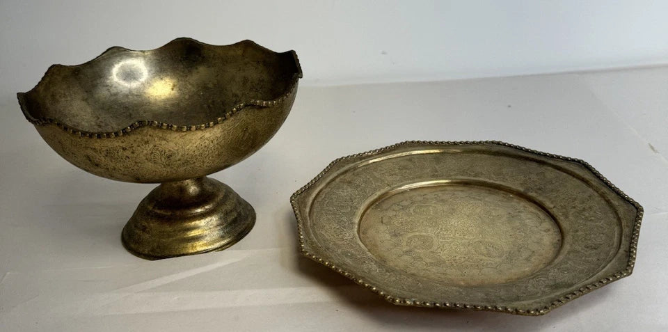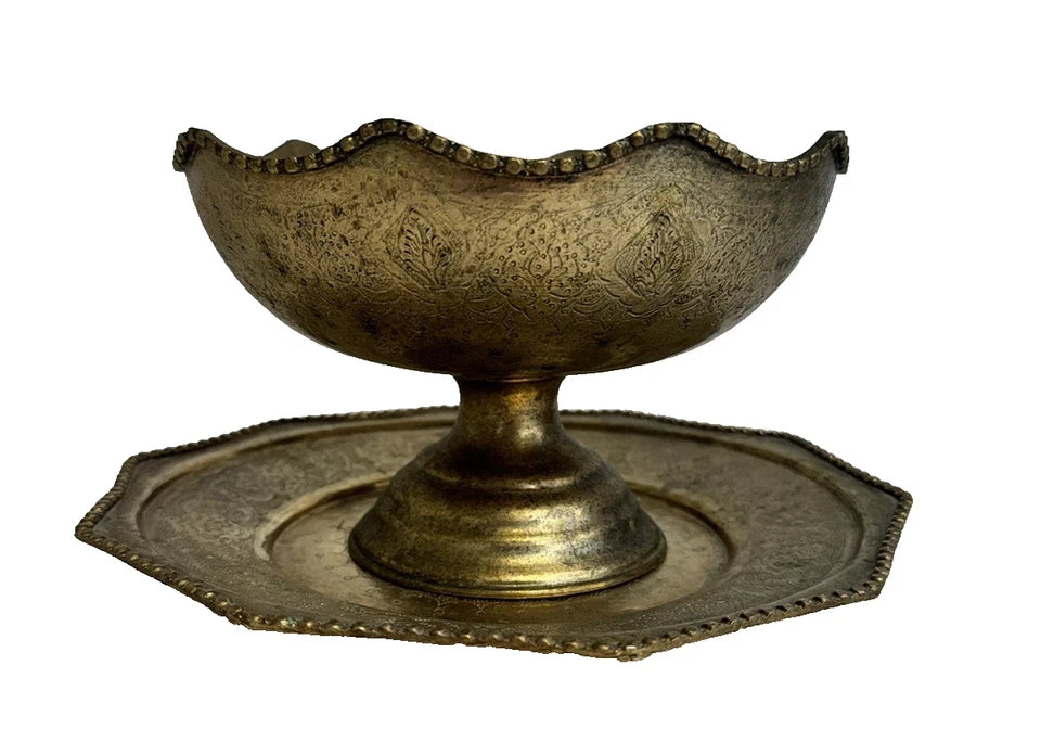 Vintage Brass Middle Eastern Footed Bowl & Tray 2pc Set