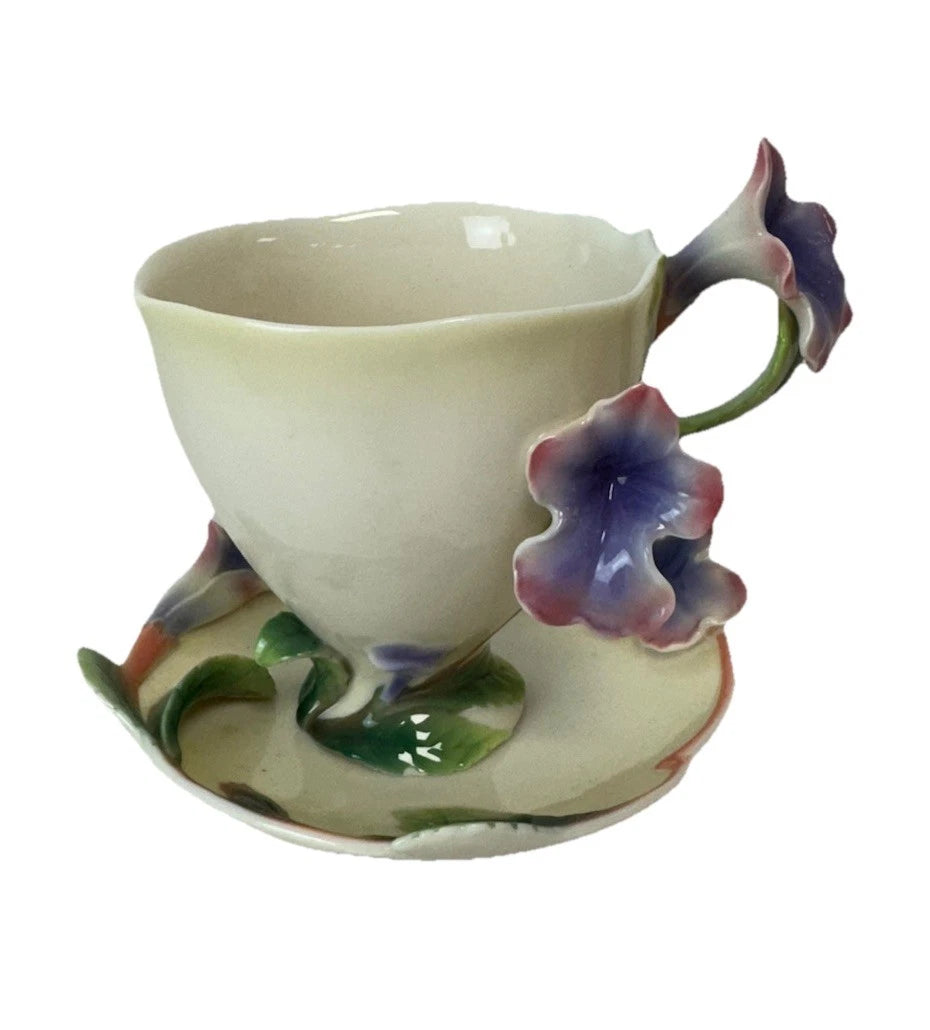 Franz FZ00457 Porcelain Sage Herb Teacup Saucer 2pc Set