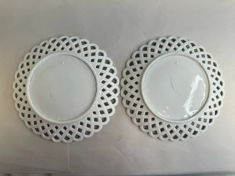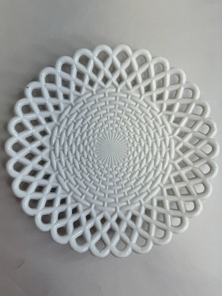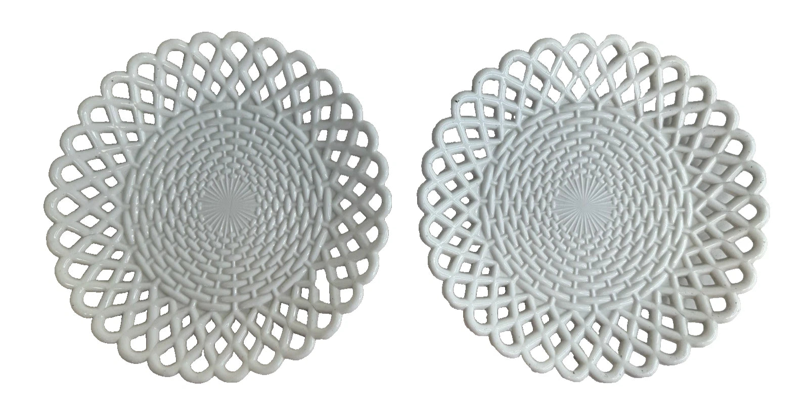 Sowerby Set x2 Milk Glass Woven Style White Plates 8.5”