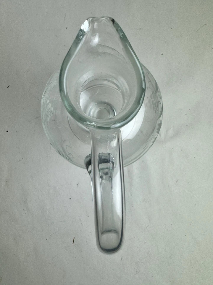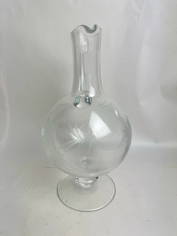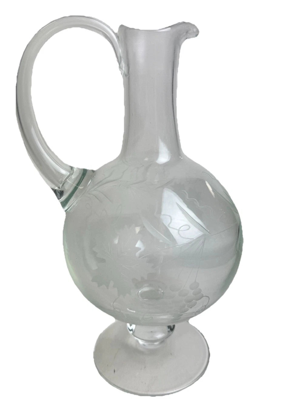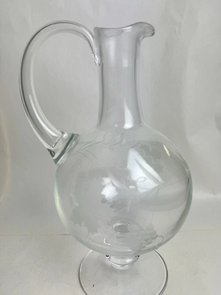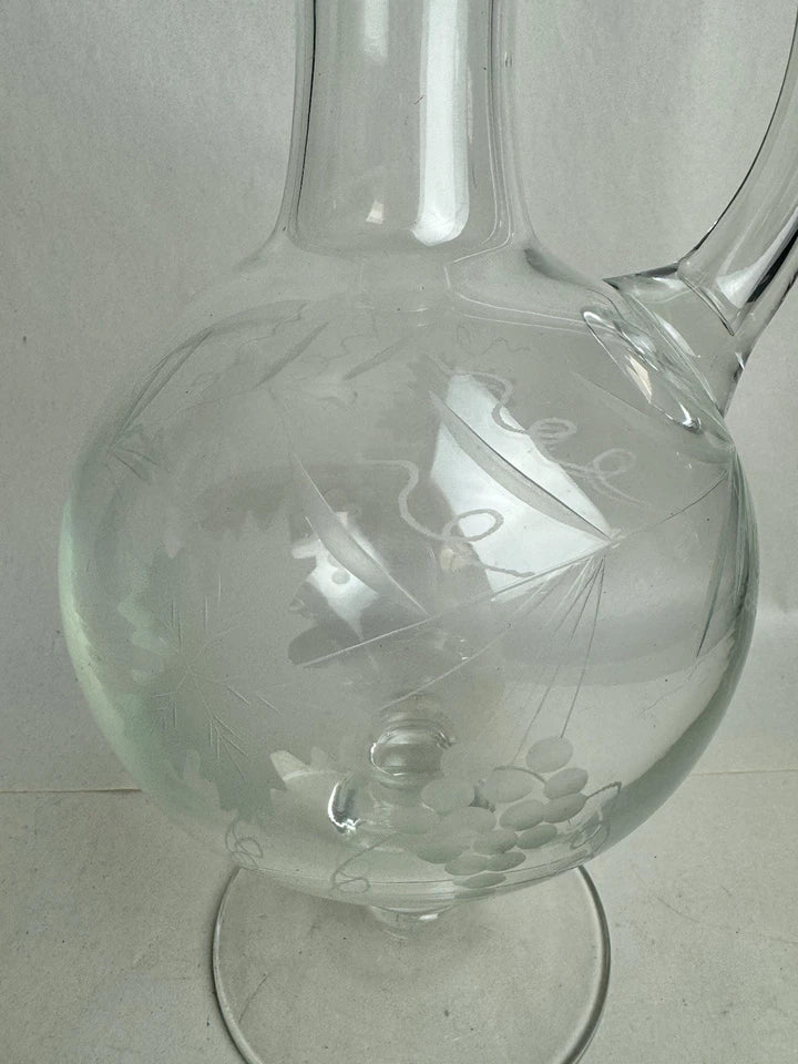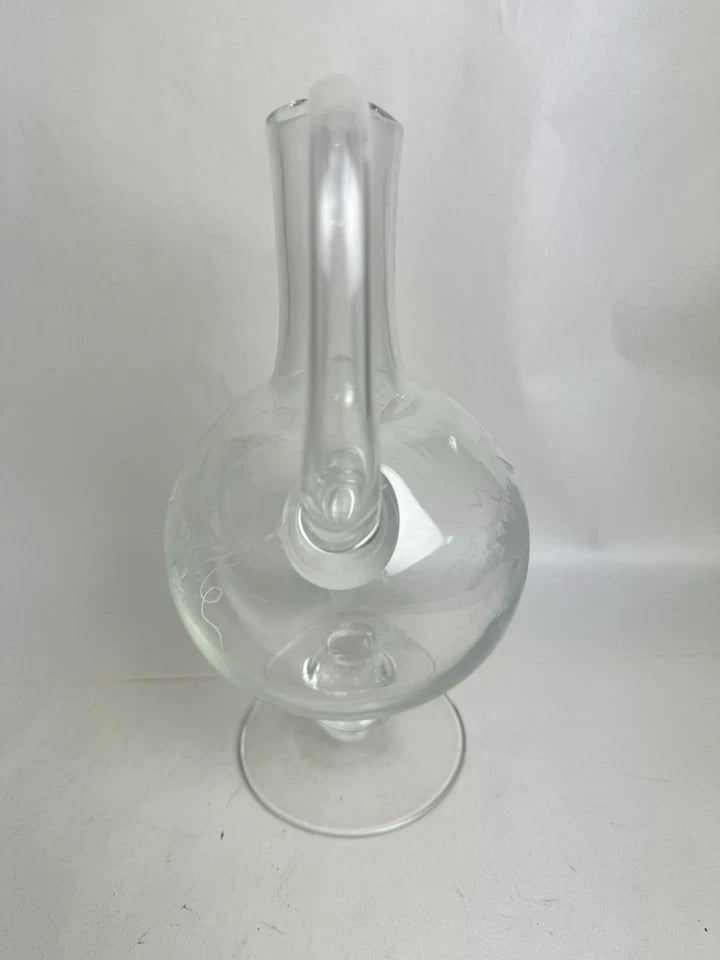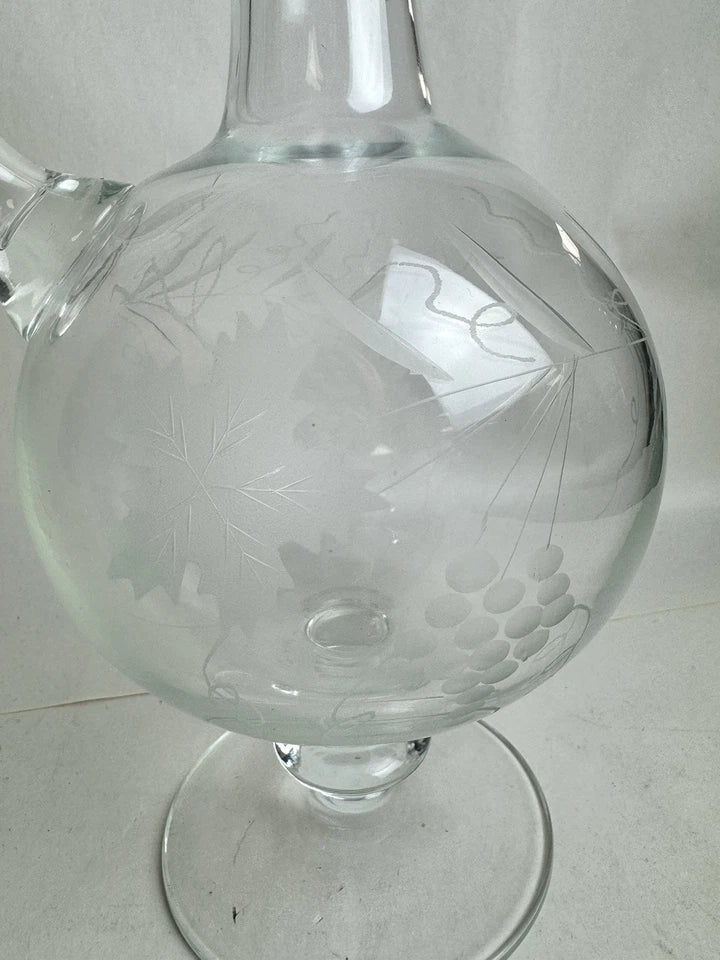 Vintage Hand Blown Glass Decanter Etched With Grapes Vine Leaves Design