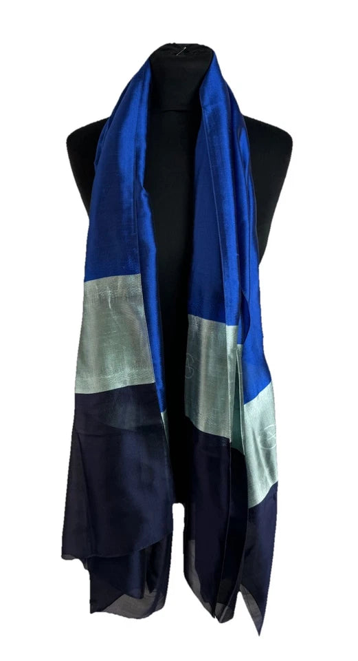 Giorgio Armani 100% Silk Blue Colourblock Scarf