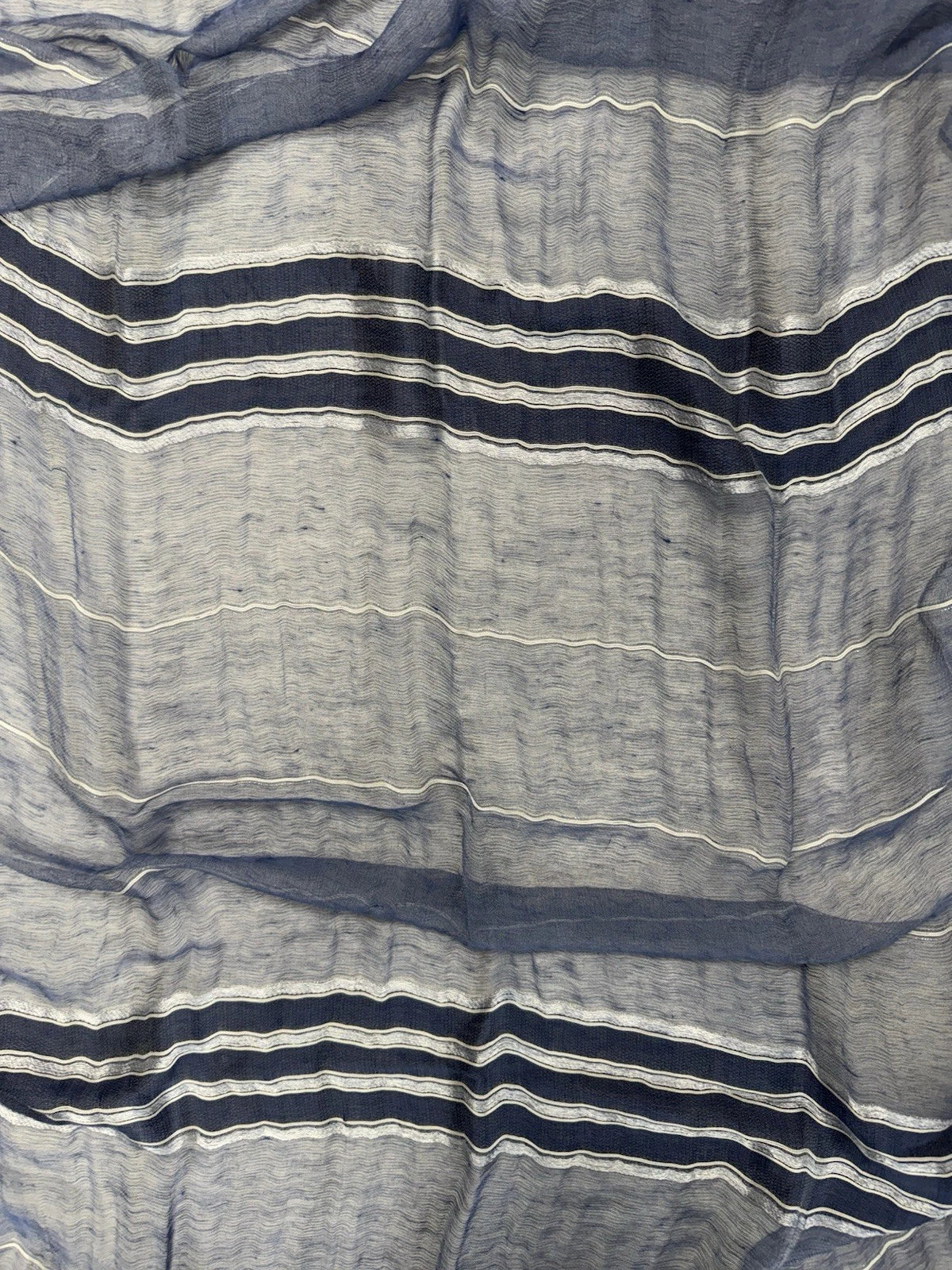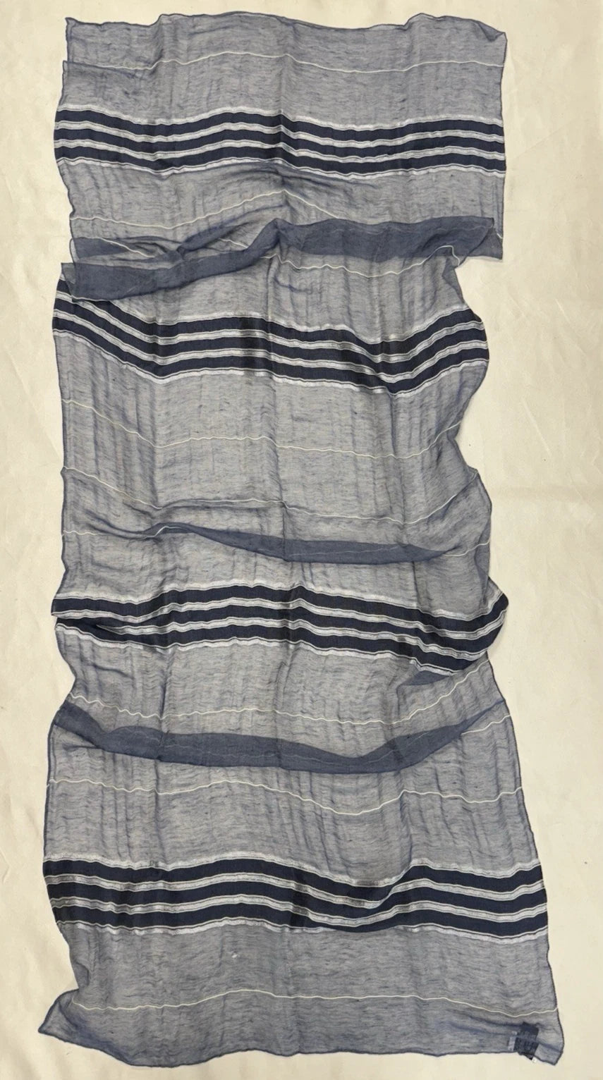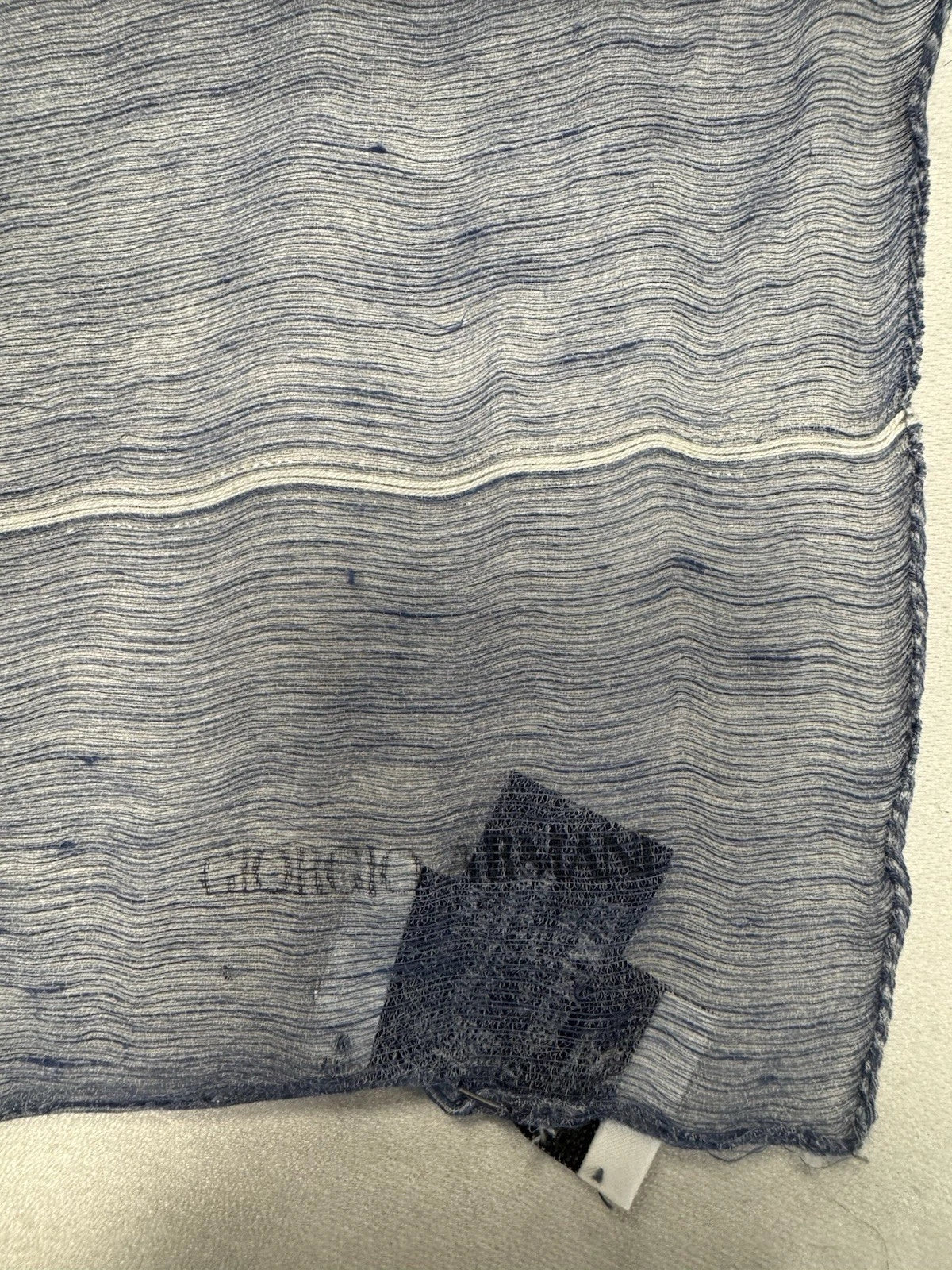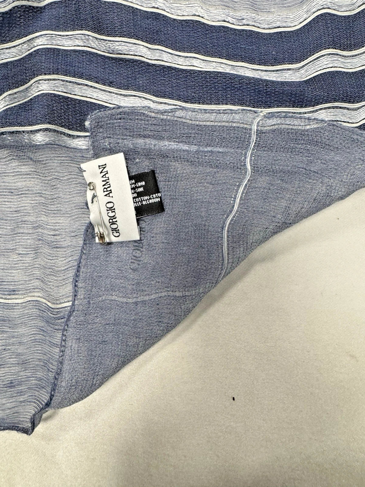 Giorgio Armani Women’s Sheer Striped Scarf Blue Linen & Silk Blend Wrap Shawl