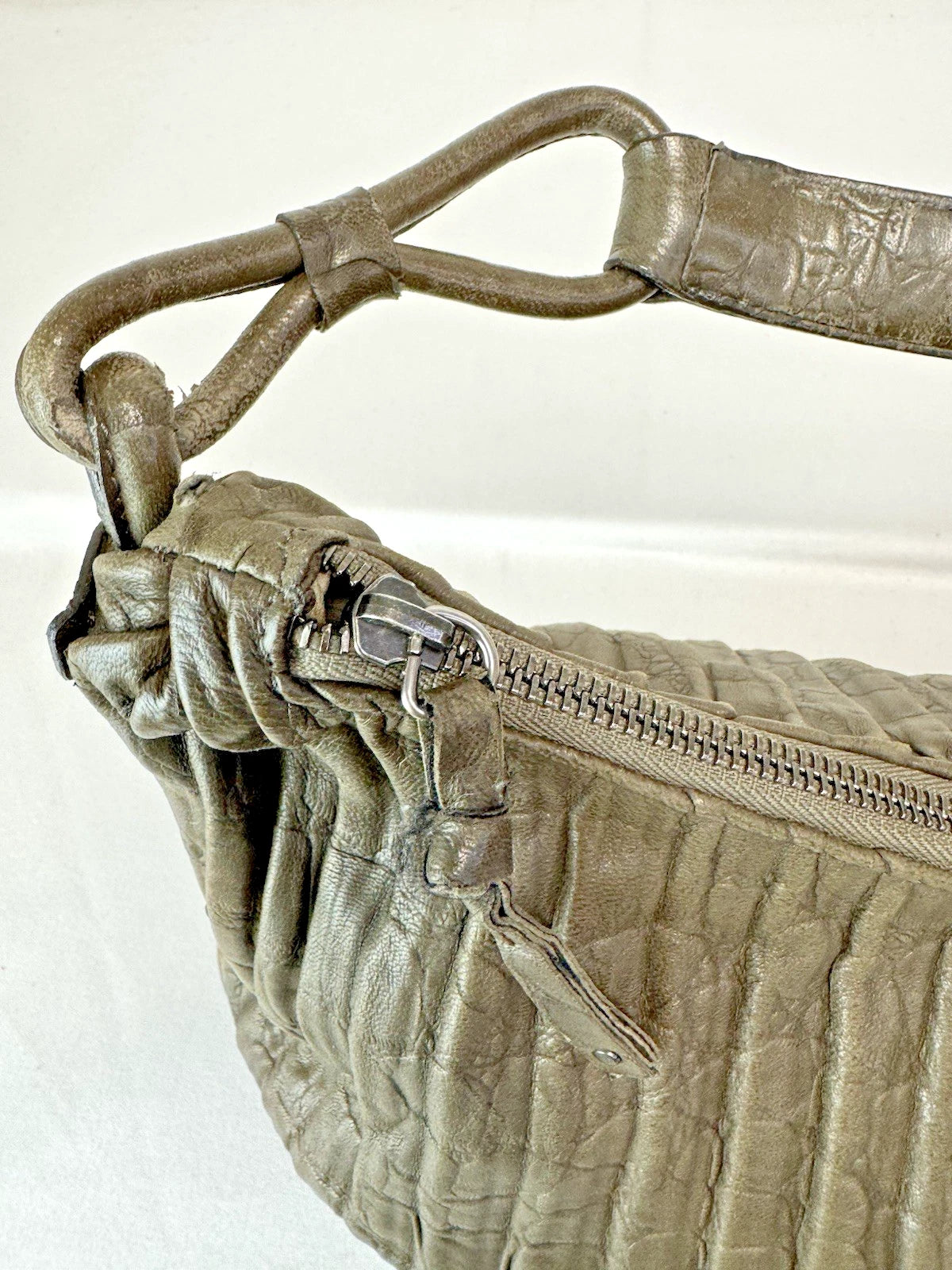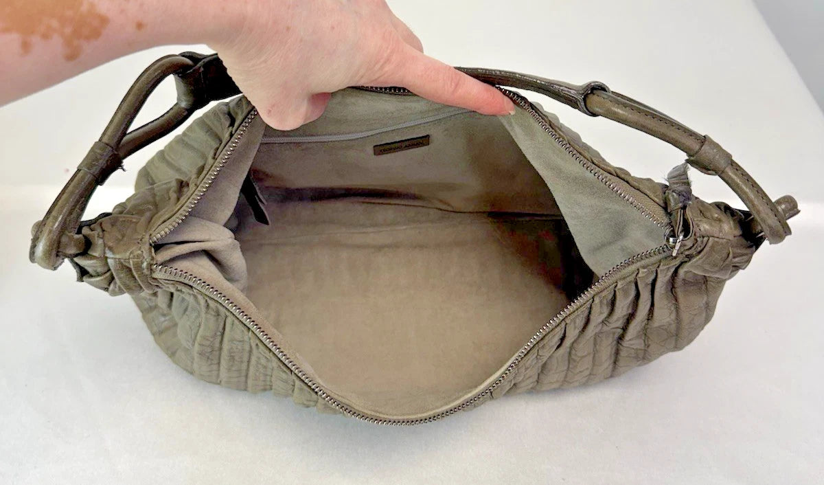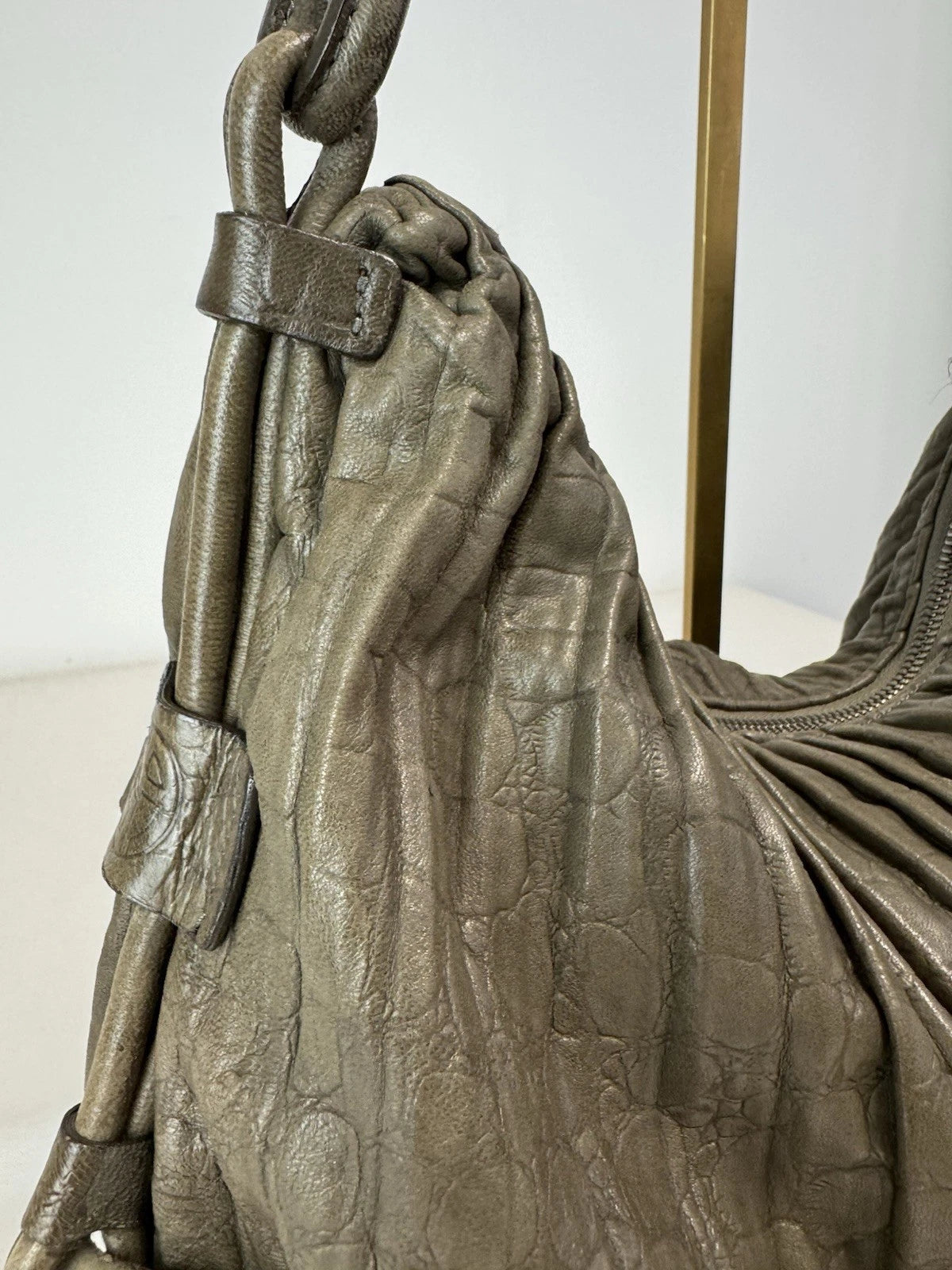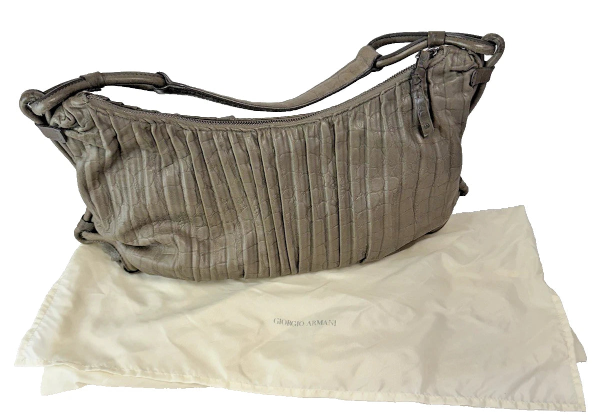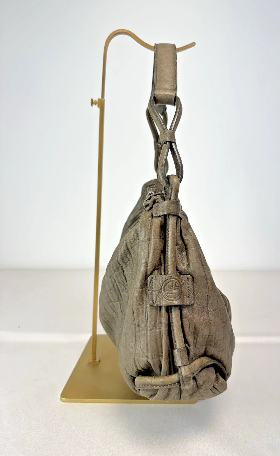 Giorgio Armani Women’s Taupe Olive Green Pleated Leather Hobo Shoulder Handbag