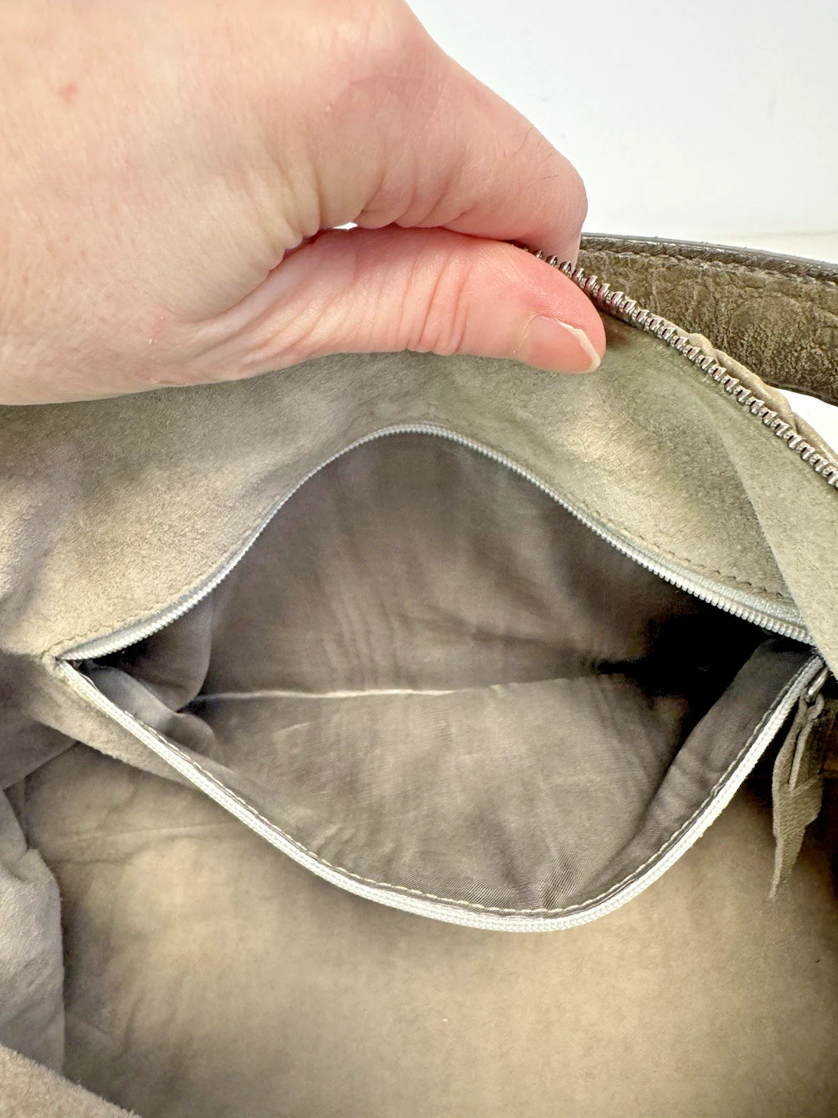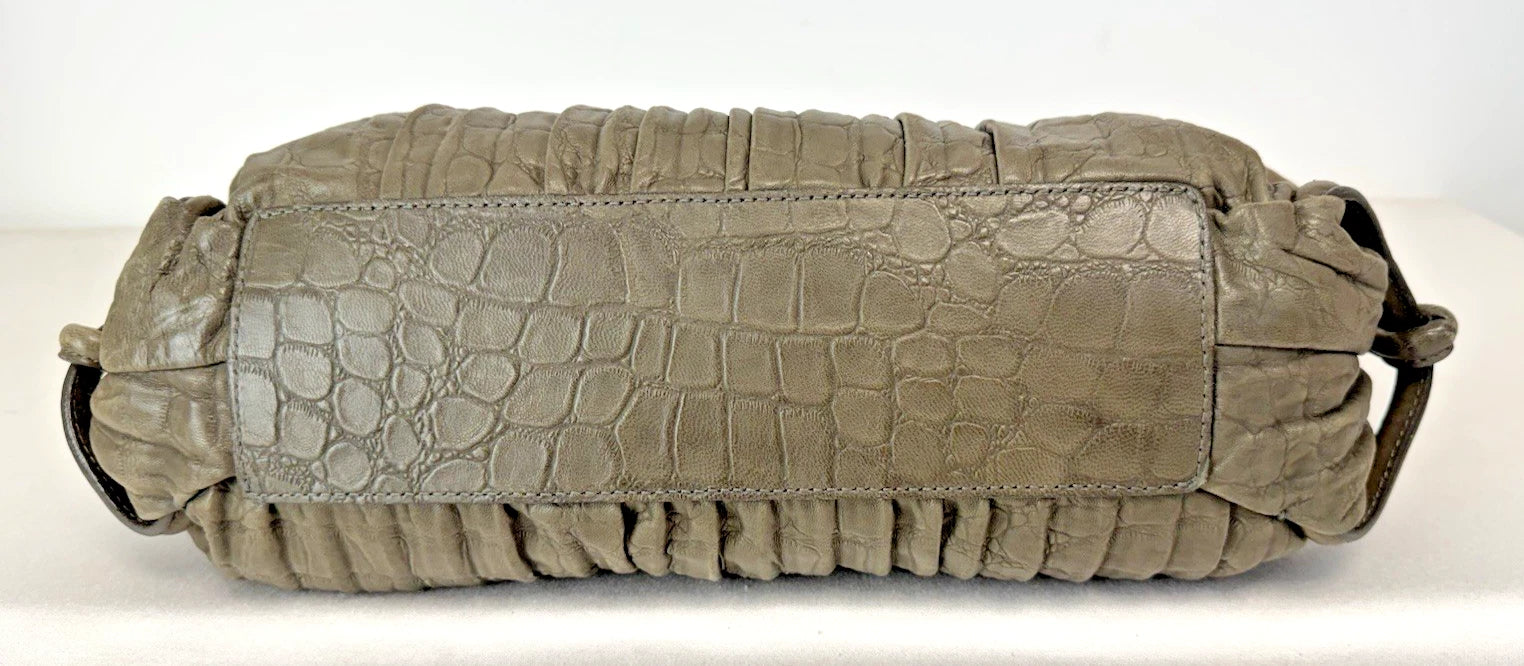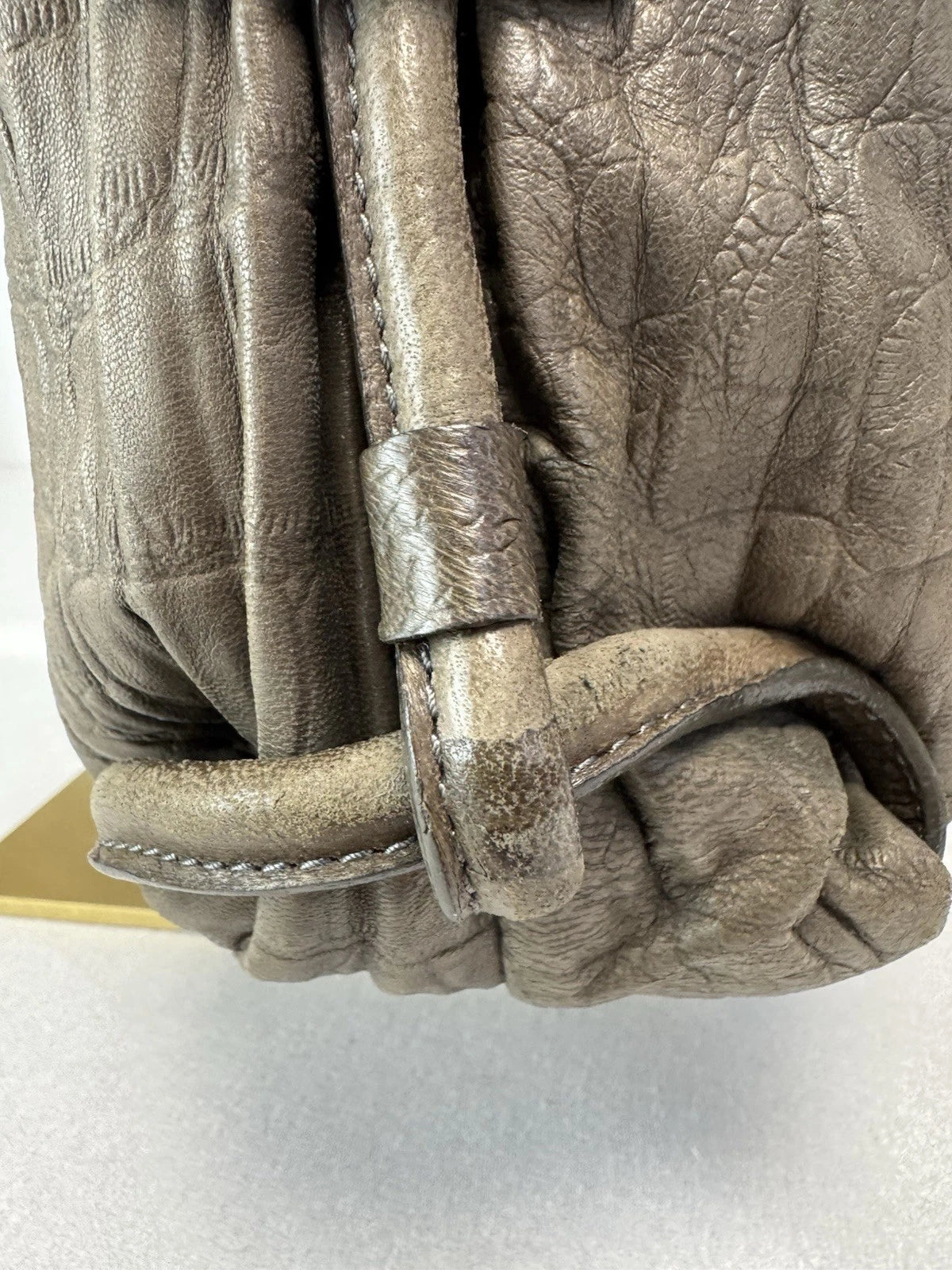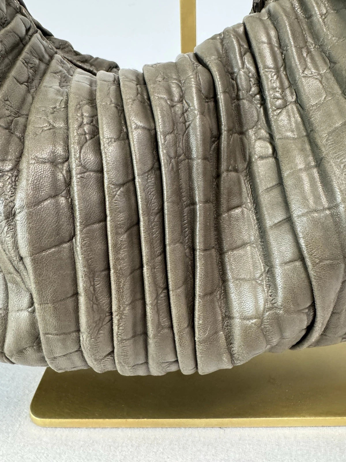 Giorgio Armani Women’s Taupe Olive Green Pleated Leather Hobo Shoulder Handbag