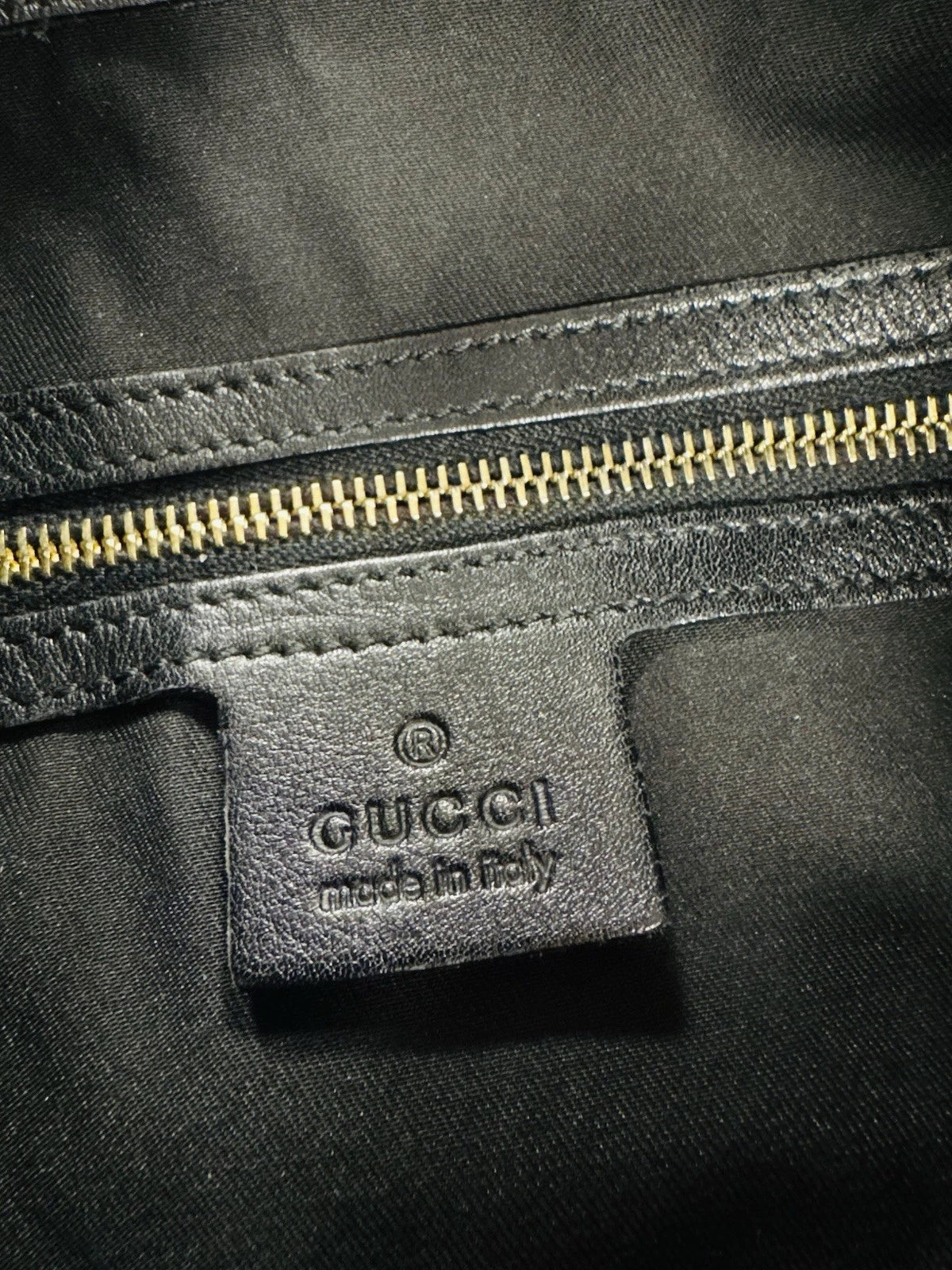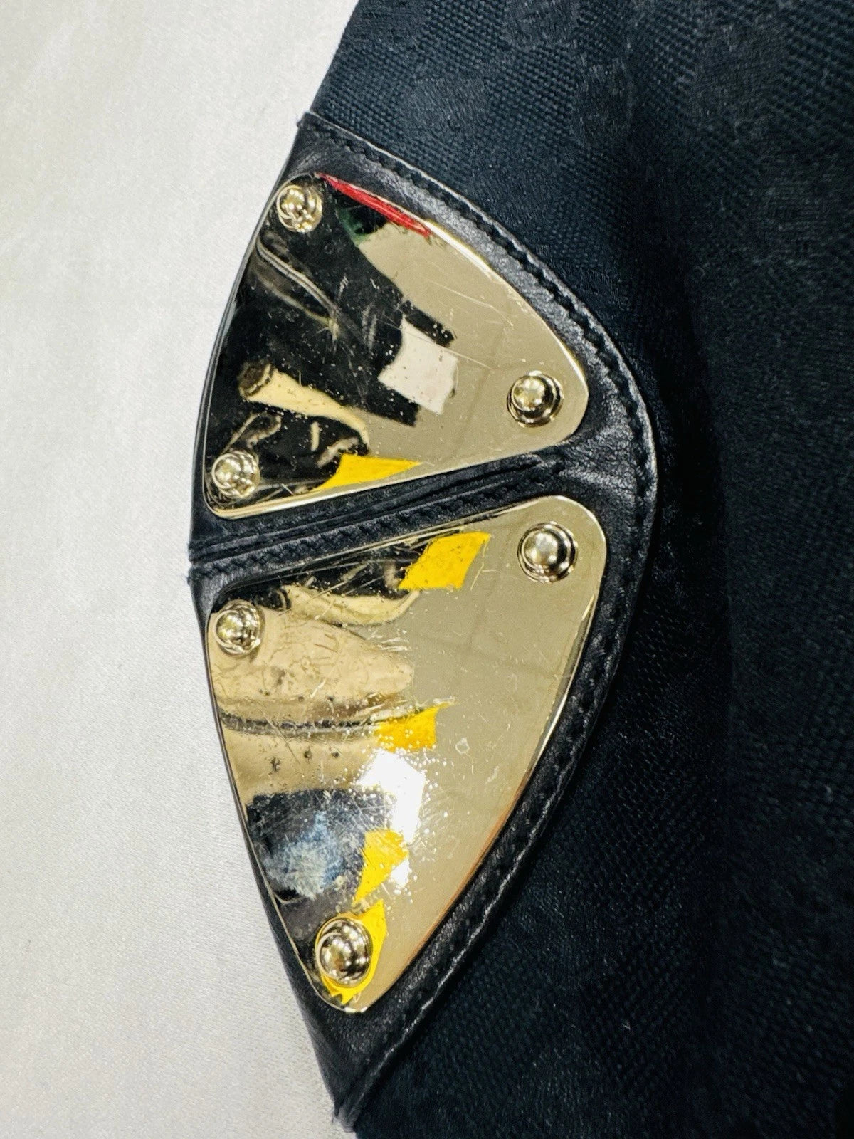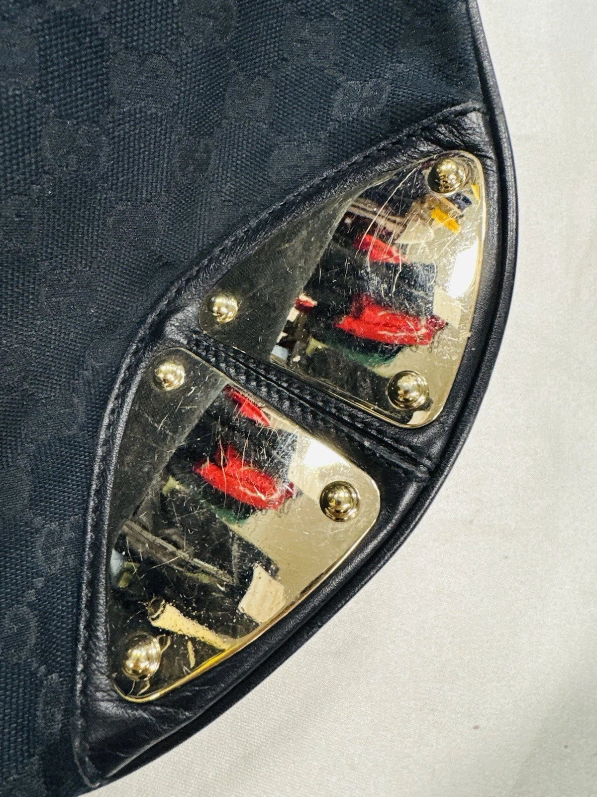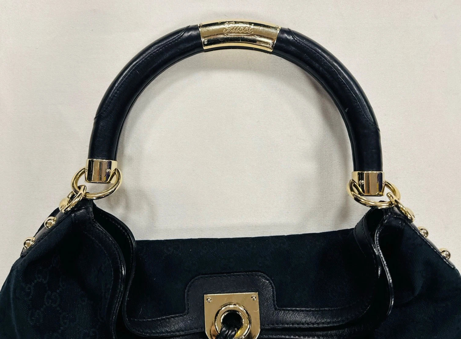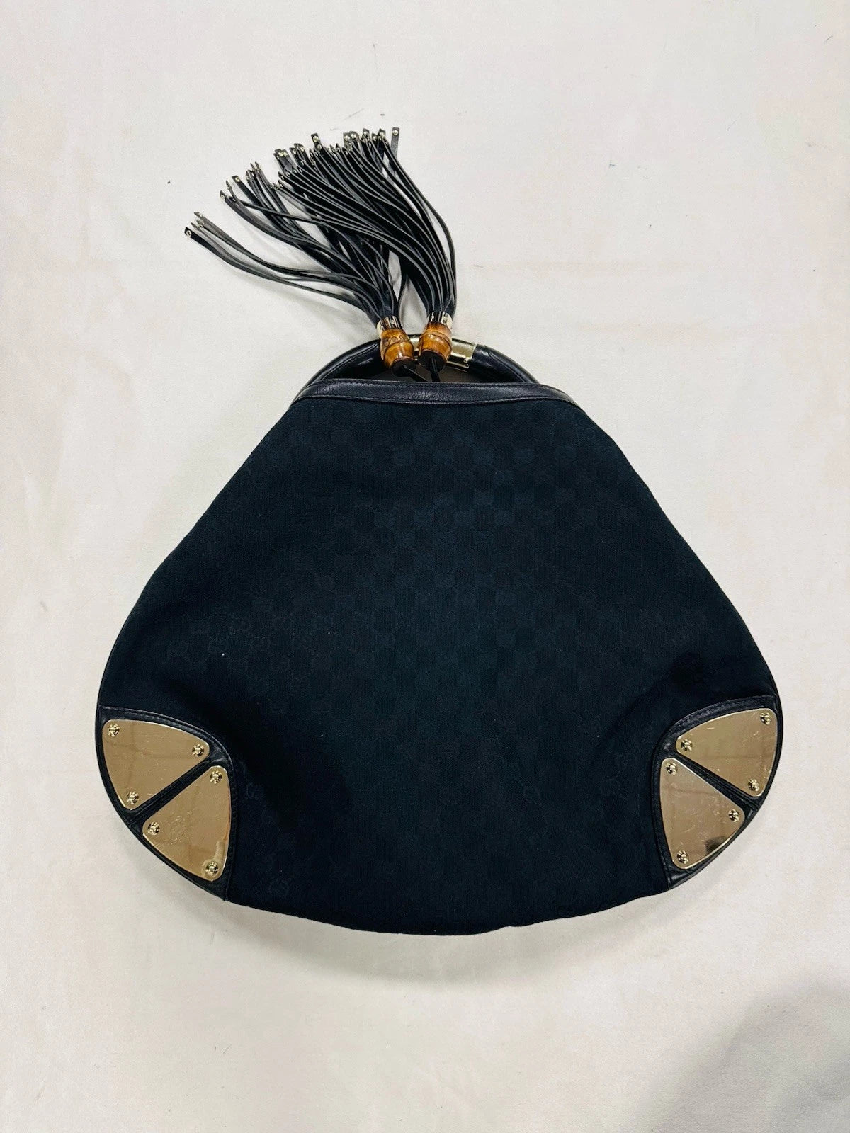 Gucci Black GG Monogram Canvas Medium Indy Tassel Hobo Top Handle Bag