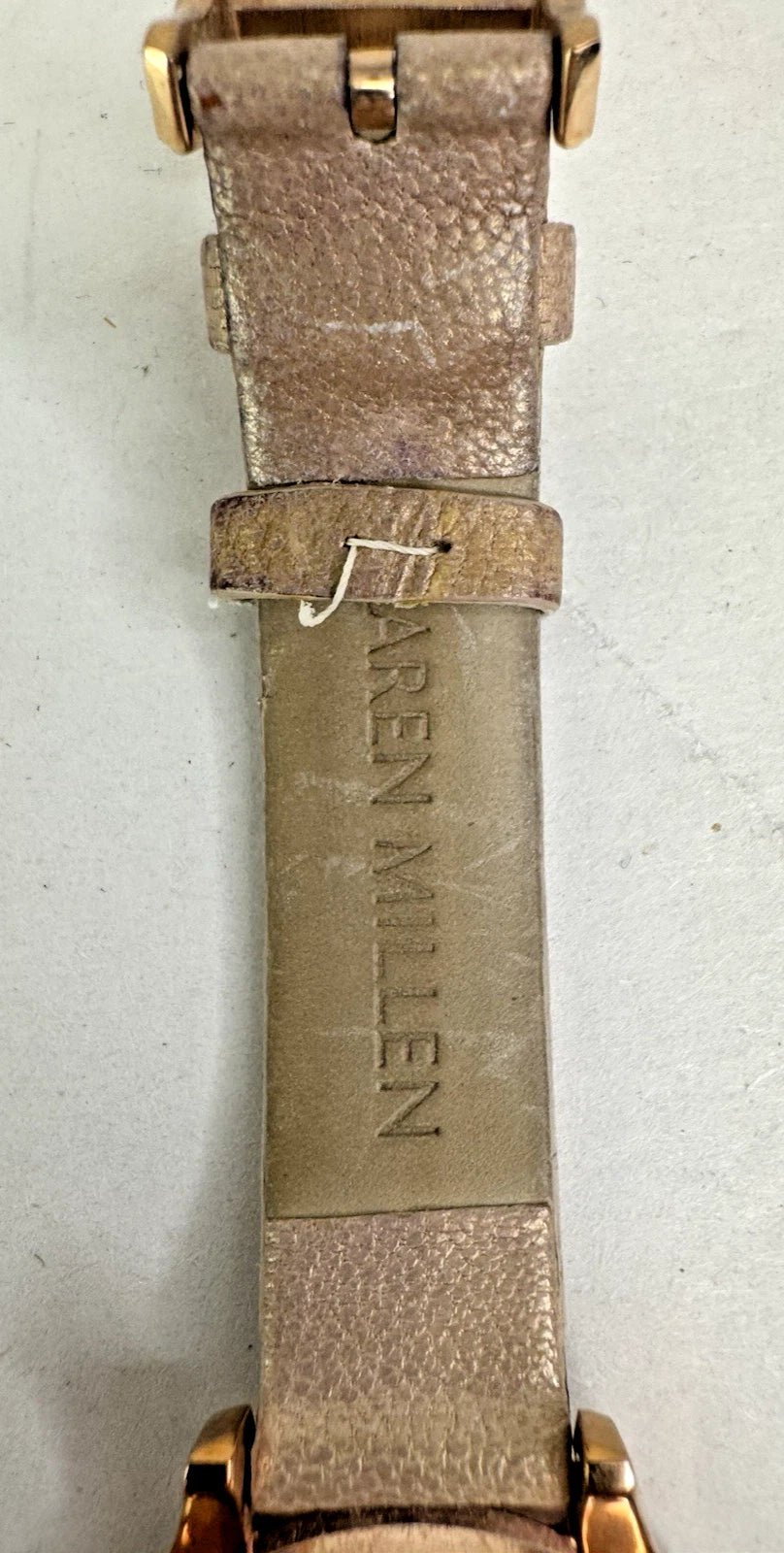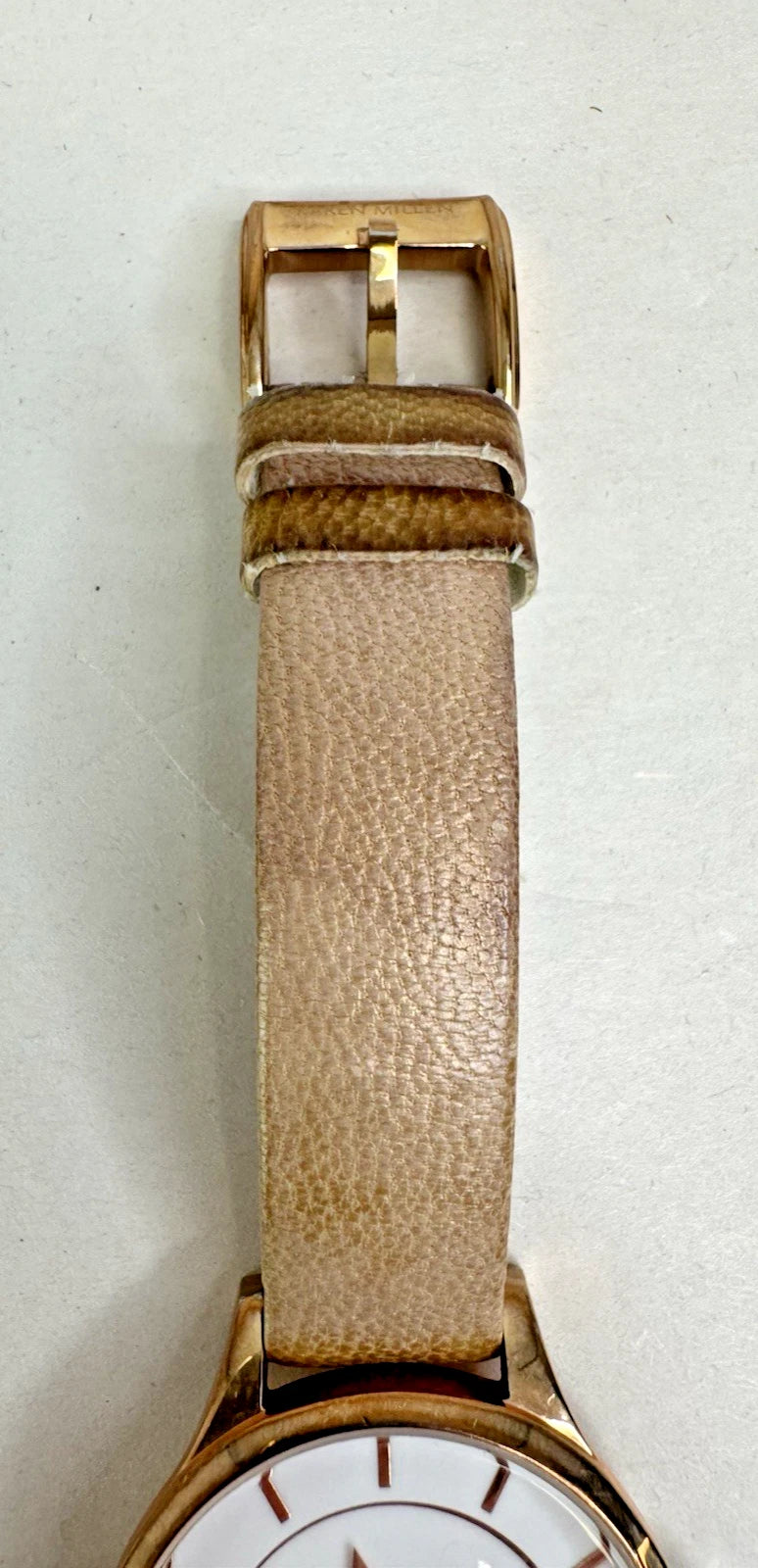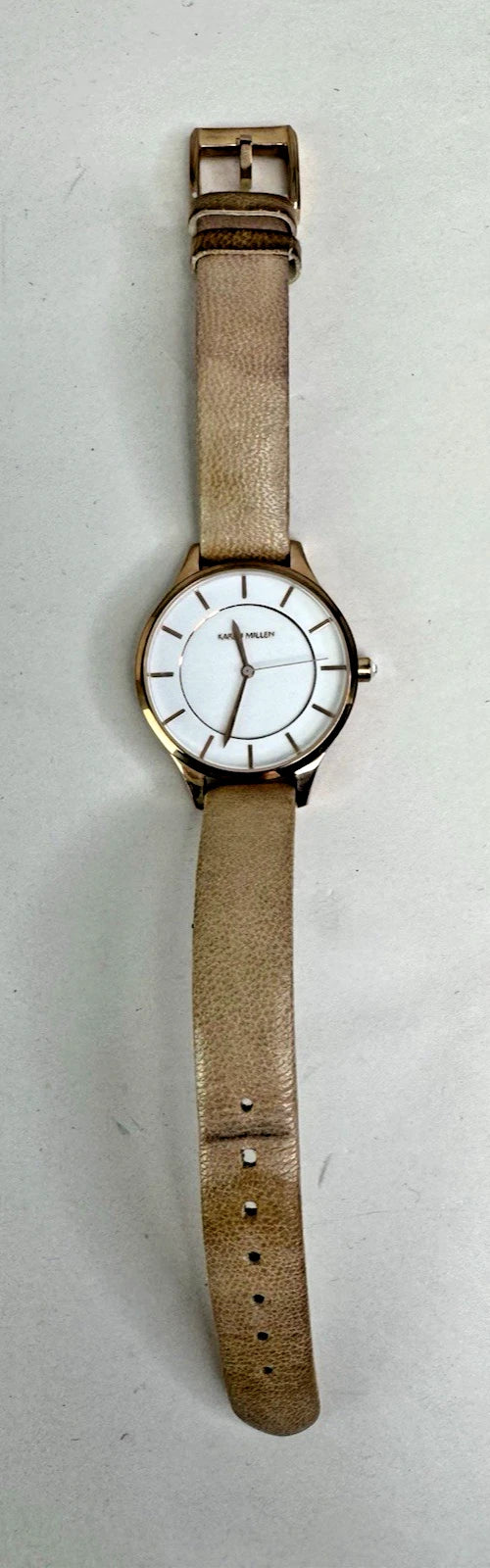 Karen Millen Women’s KM133C Quartz Watch White Dial Beige Leather Strap–UNTESTED