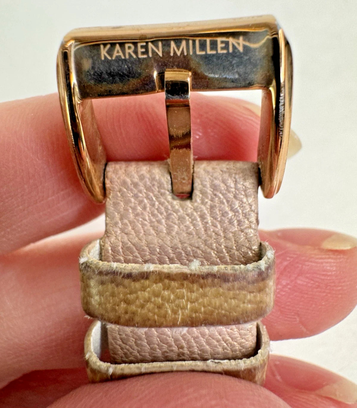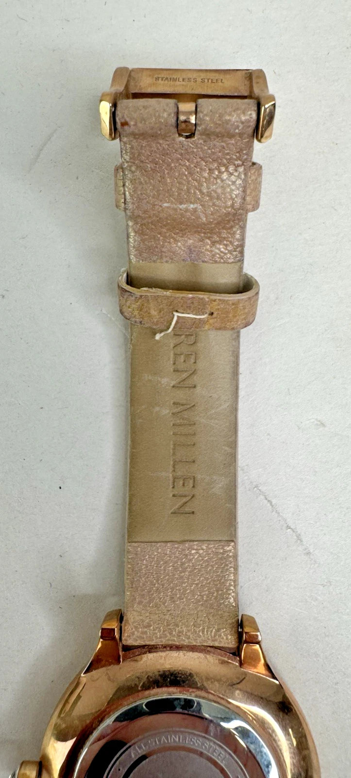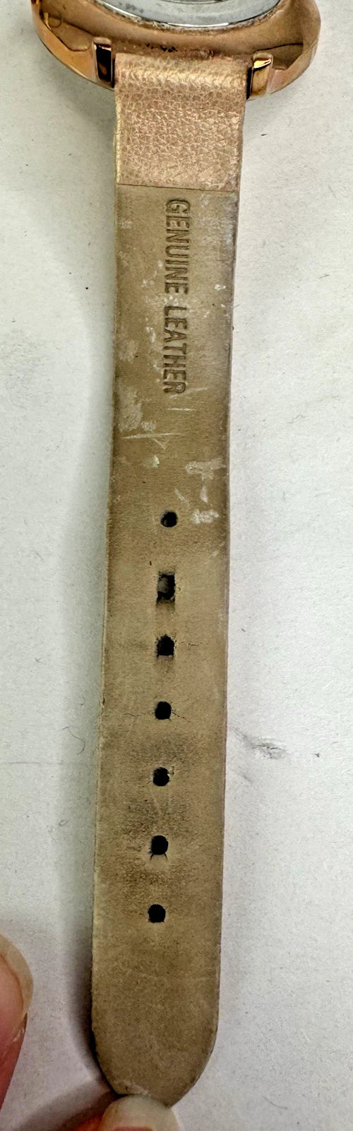 Karen Millen Women’s KM133C Quartz Watch White Dial Beige Leather Strap–UNTESTED