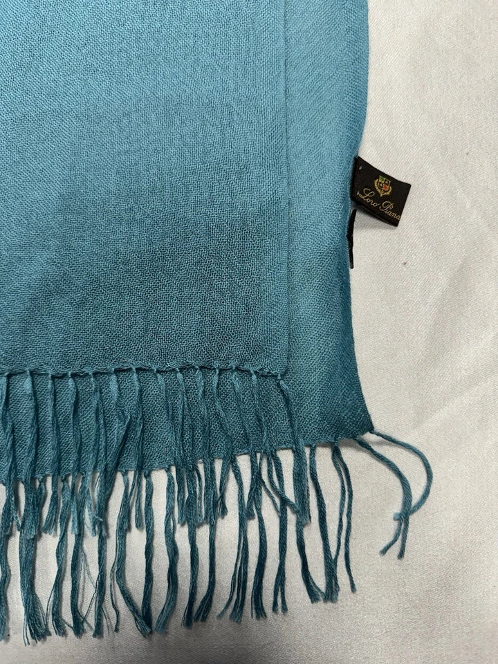 Loro Piana Cashmere Silk Blend Turquoise Tasselled Scarf
