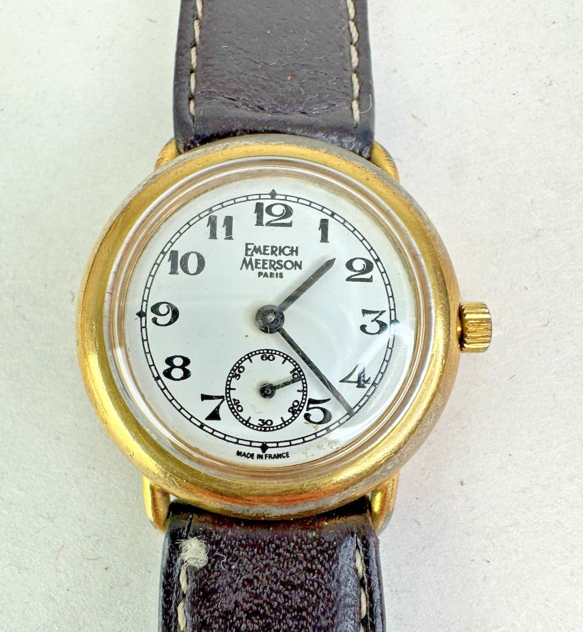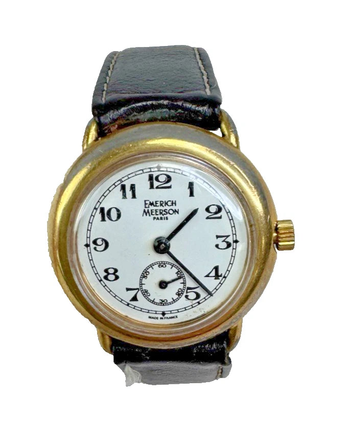 Vtg Emerich Meerson Women’s Officer’s Style Hand-Winding Watch Gold Tone - UNTESTED