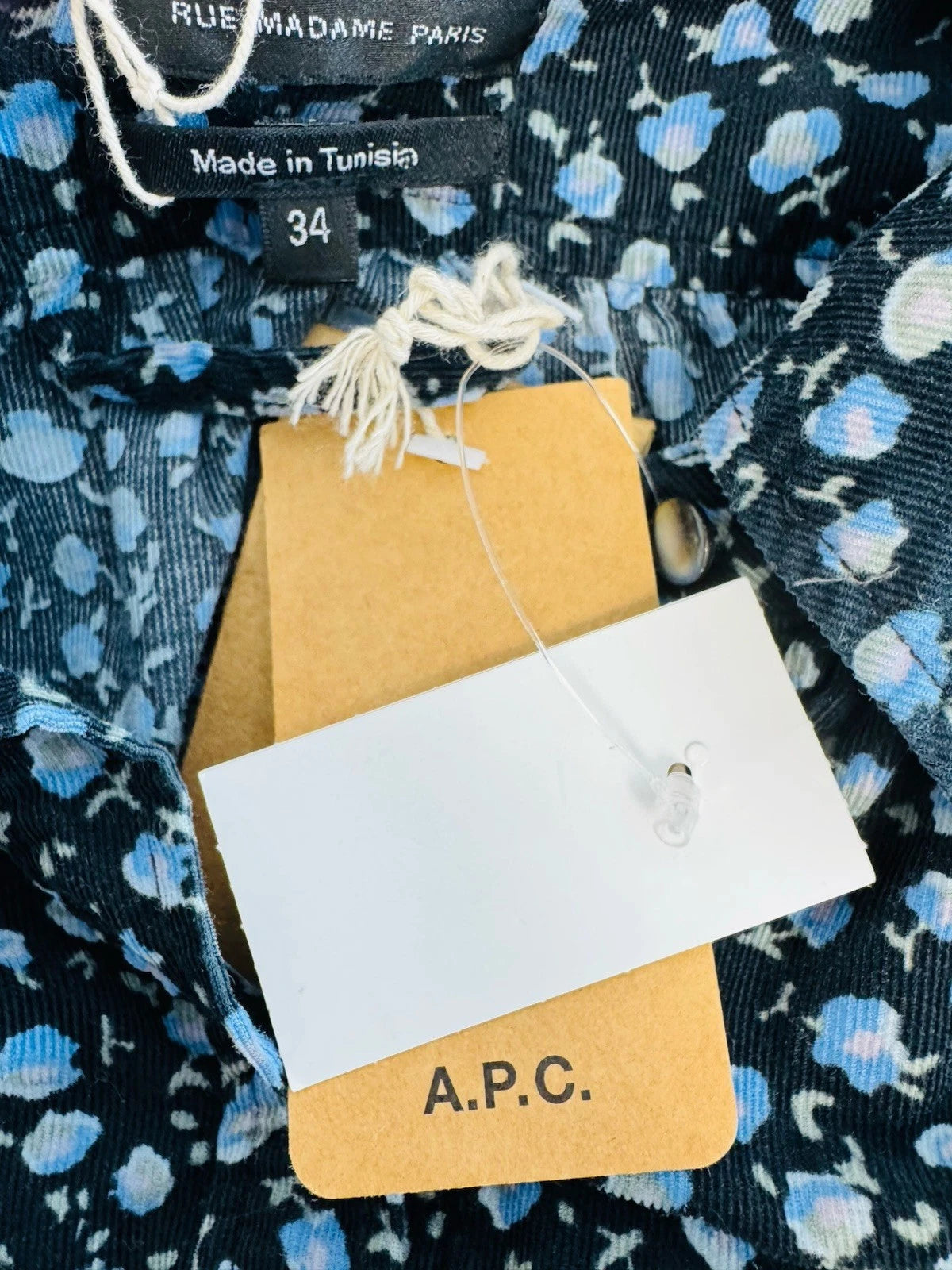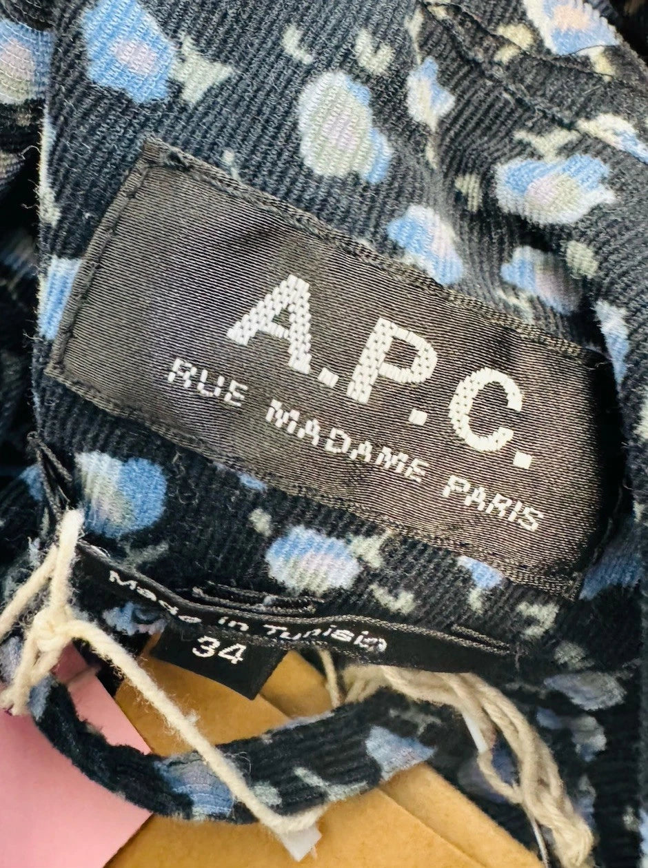 A.P.C. Black Liberty Floral 100% Cotton Corduroy Women’s Dress Size UK 8