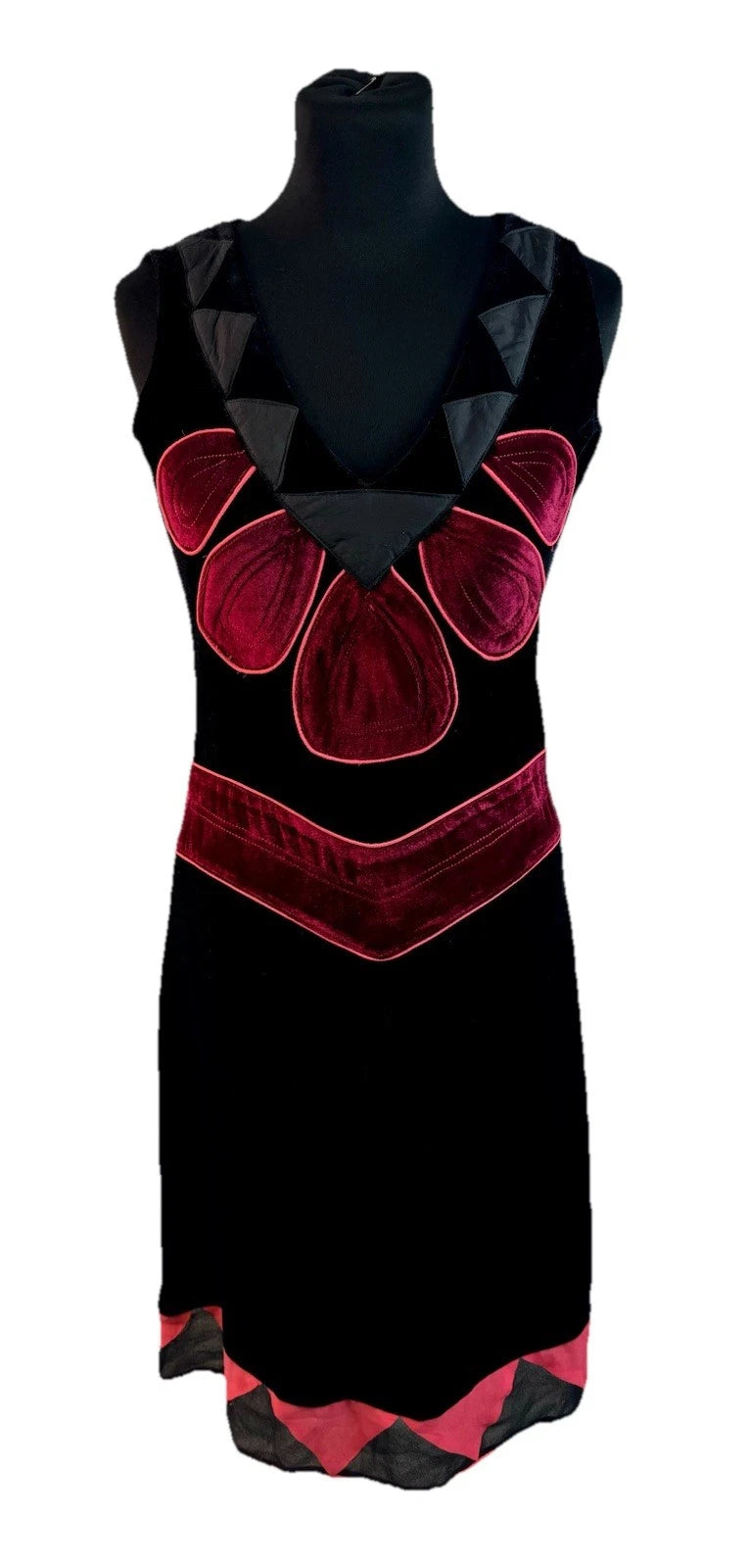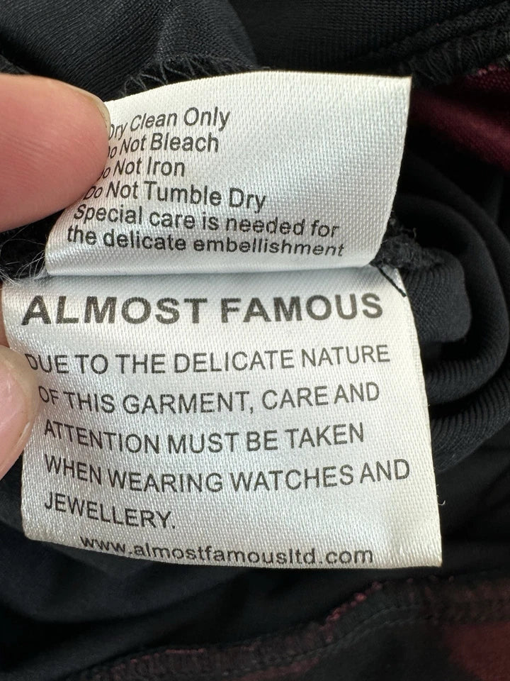 Almost Famous Black & Red Velvet Women’s V- Neck Dress Size UK 8
