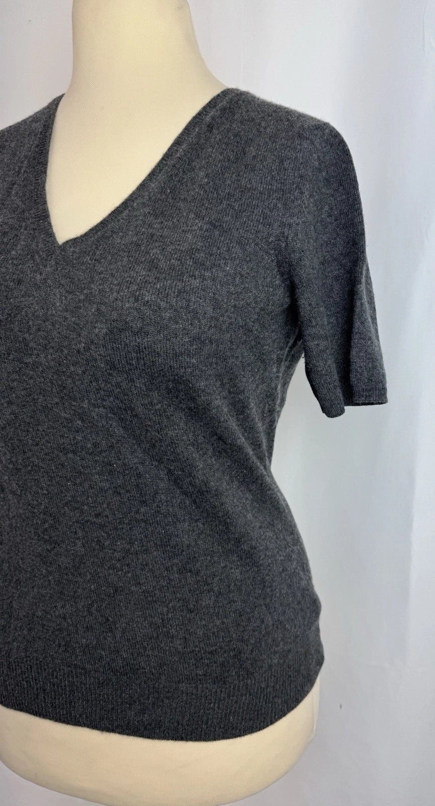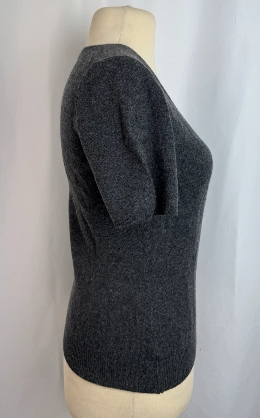 Asprey London Women’s 100%Cashmere Short Sleeve V-Neck Sweater Top Grey Size S