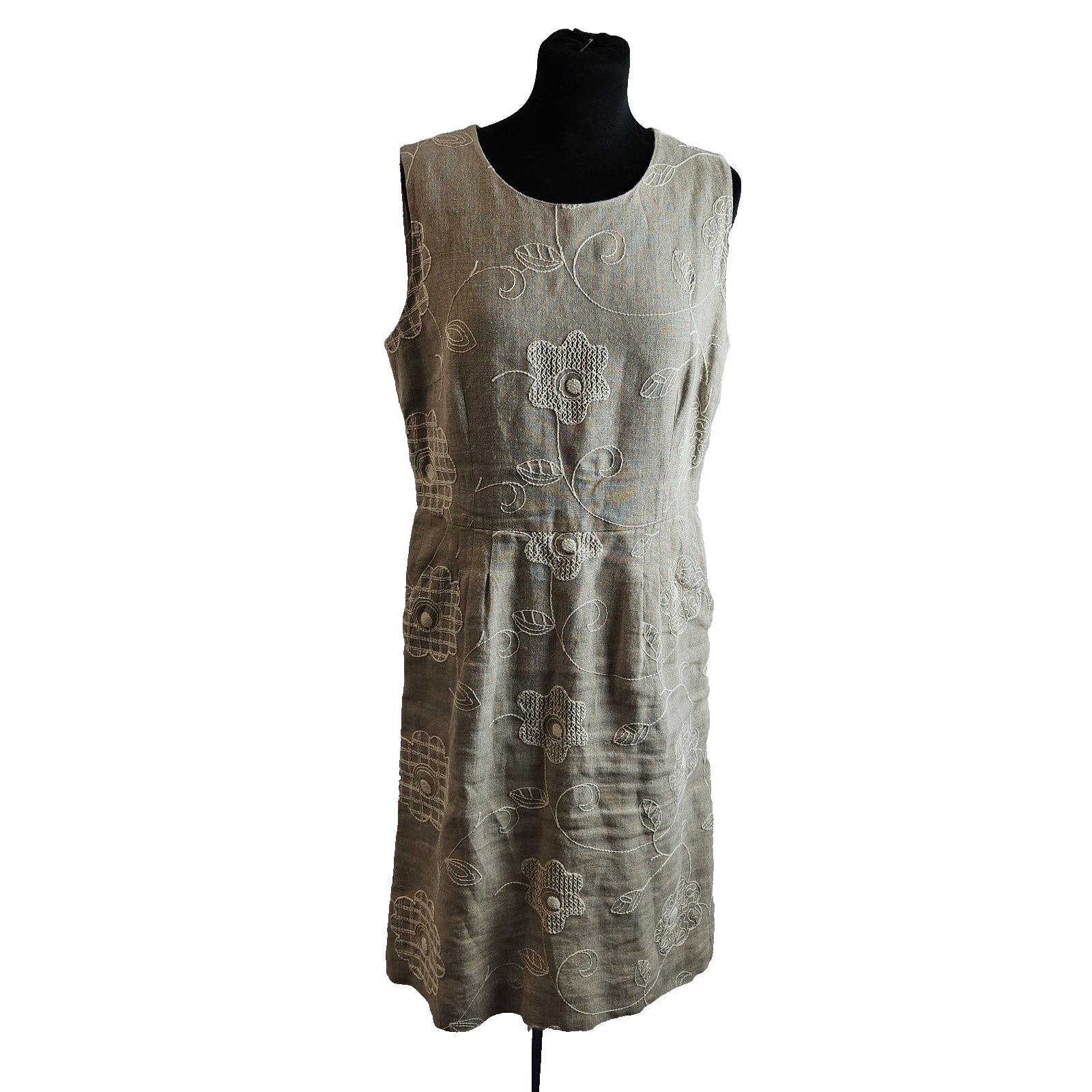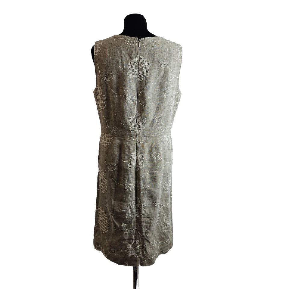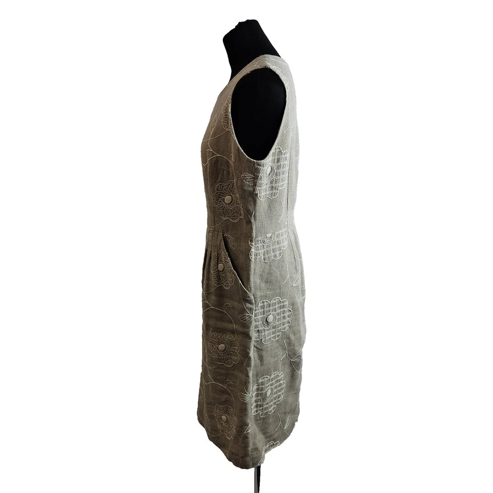 France Rety Roma Women's Grey Sleeveless Dress Floral Embroidery Size 44