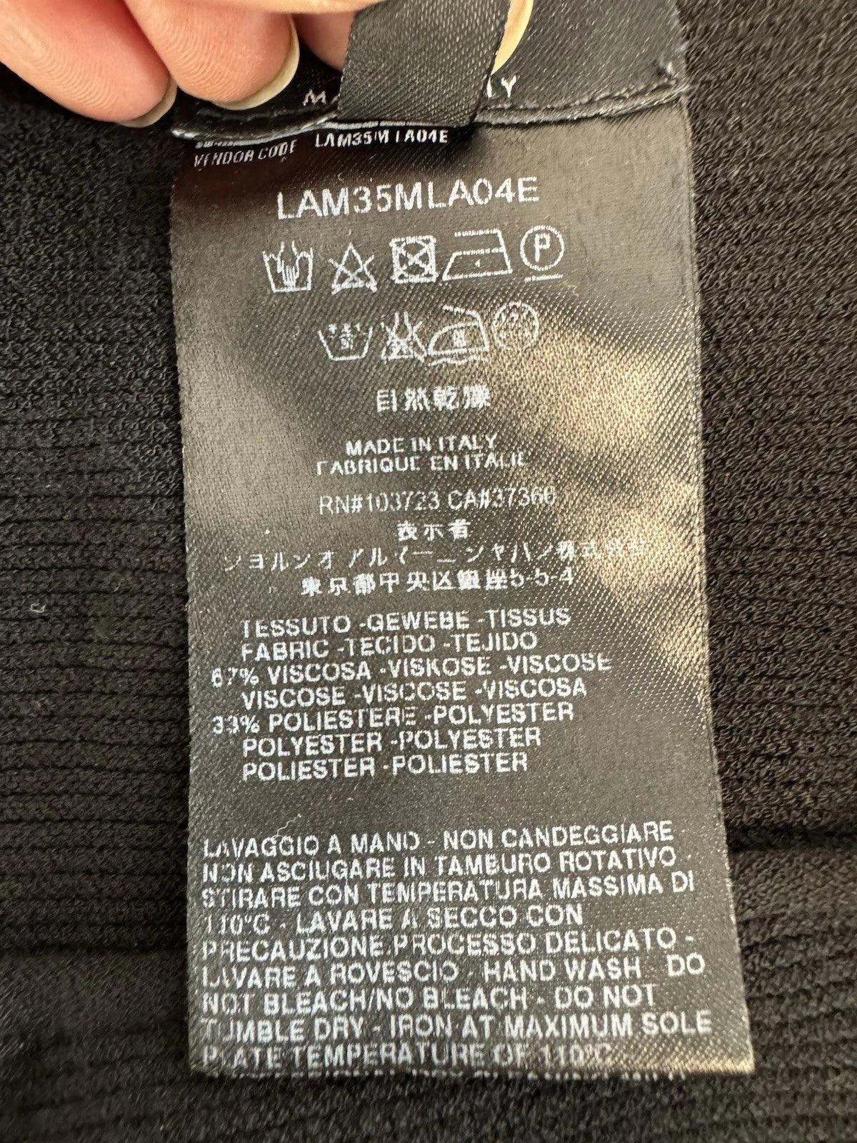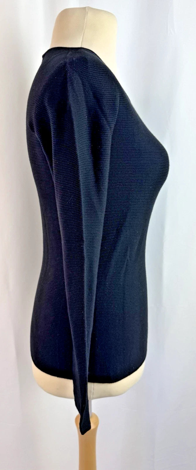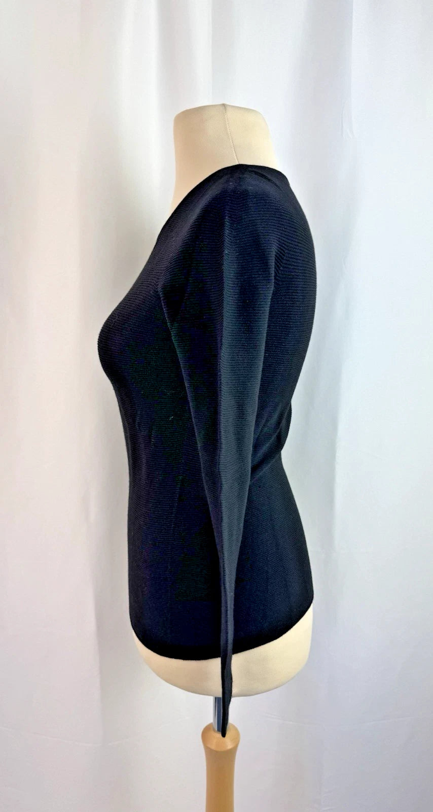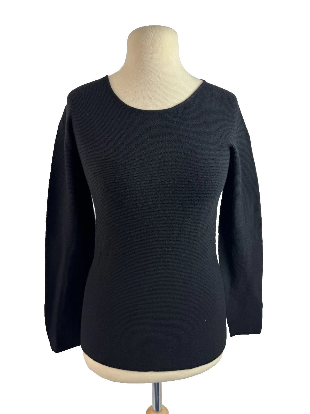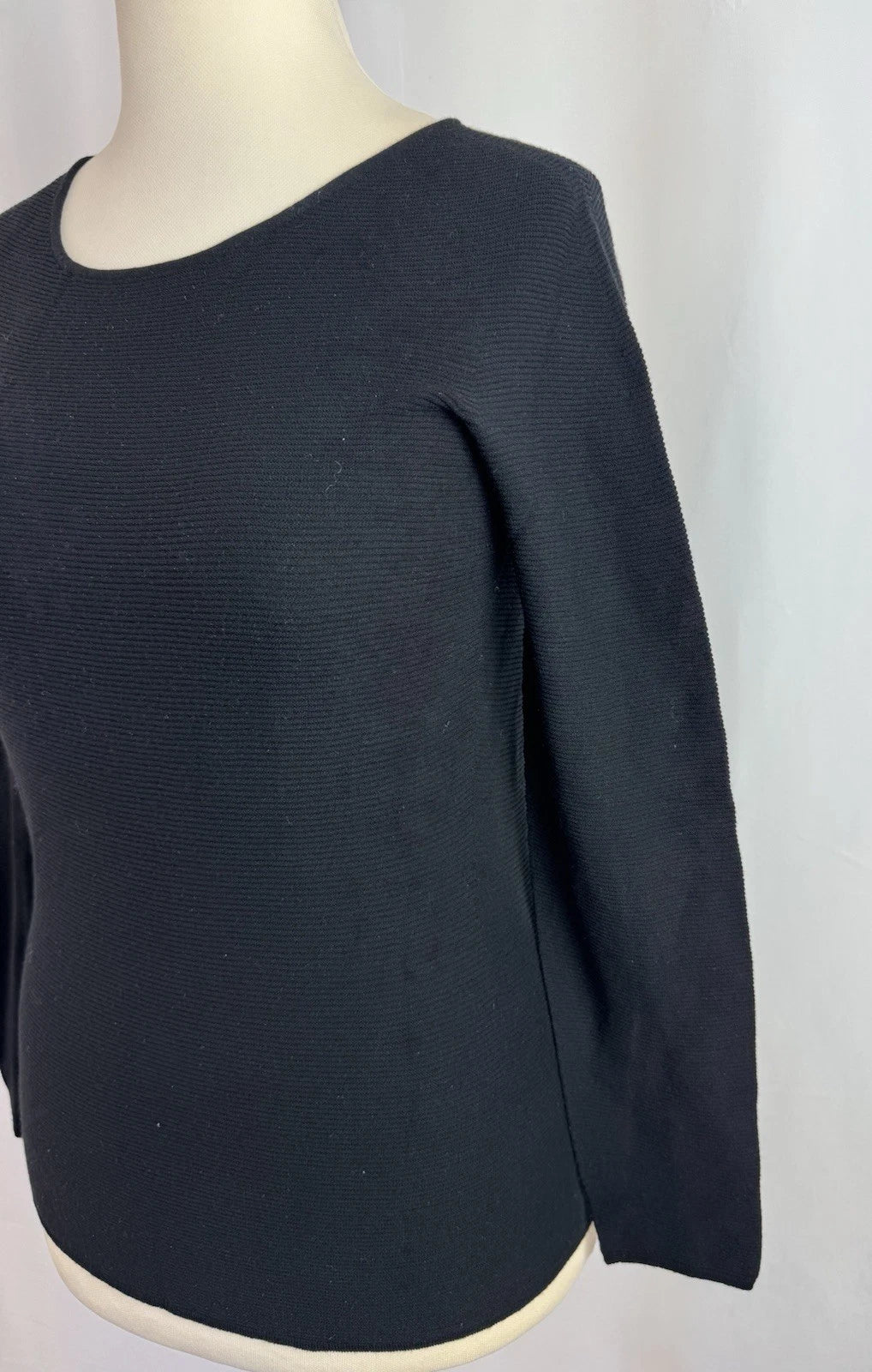Giorgio Armani Women’s Black Long Sleeve Stretchy Ribbed Crew Neck Top Size 16