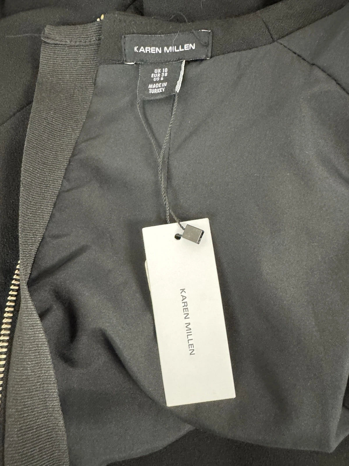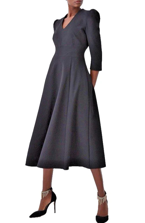 Karen Millen Women’s Structured Crepe Full Skirted Midi Dress Black Size 10 –NEW