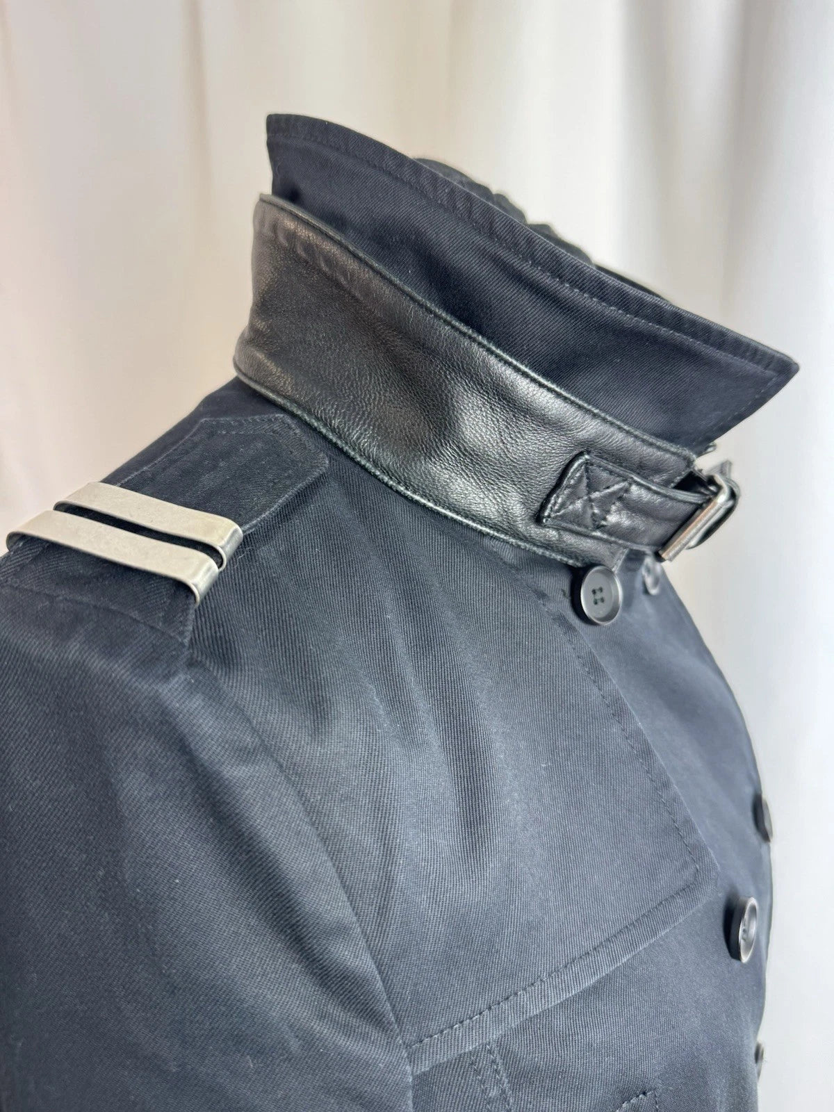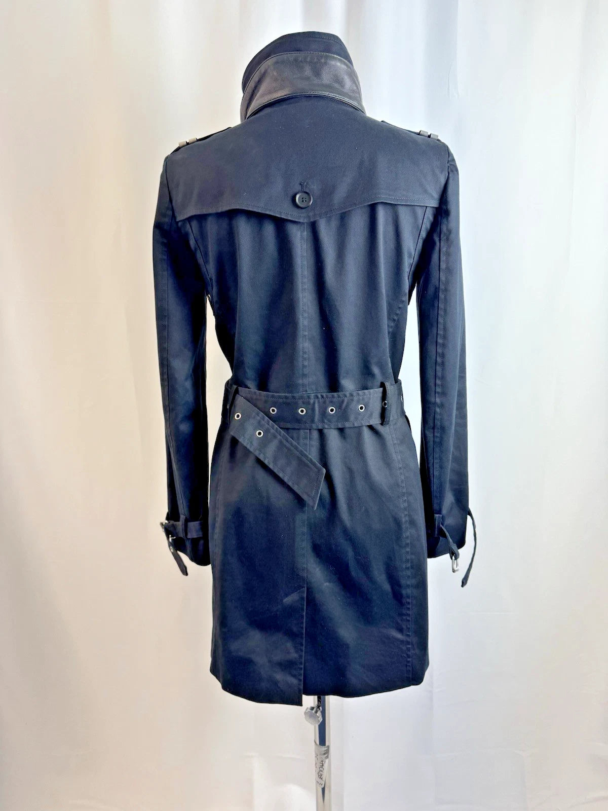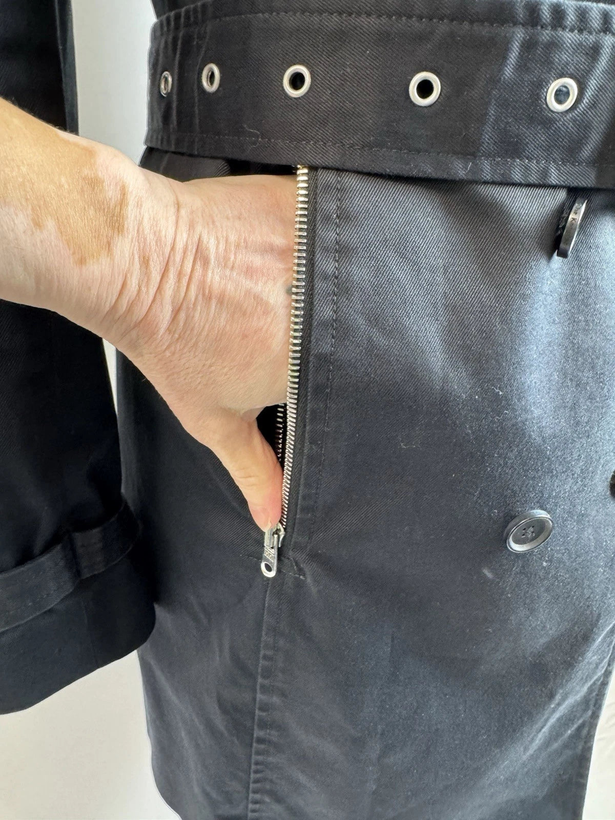The Kooples Women’s Black Biker Style Belted Trench Coat Zippers Epaulettes Sz 8