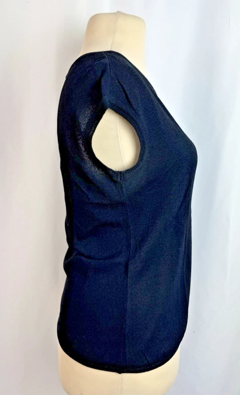 Vtg Yves Saint Laurent Women’s Black Short Sleeve Top Crew Neck Jumper Size 14