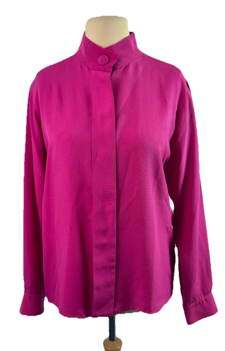 Yves Saint Laurent Rive Gauche Fuchsia Silk Womens Blouse Size M