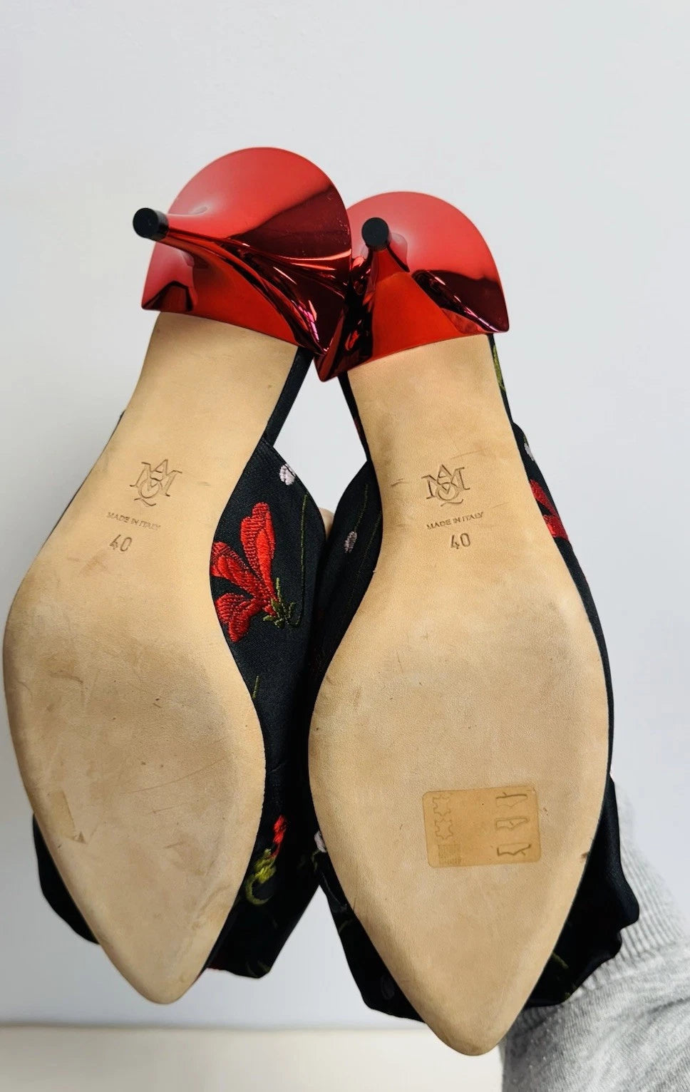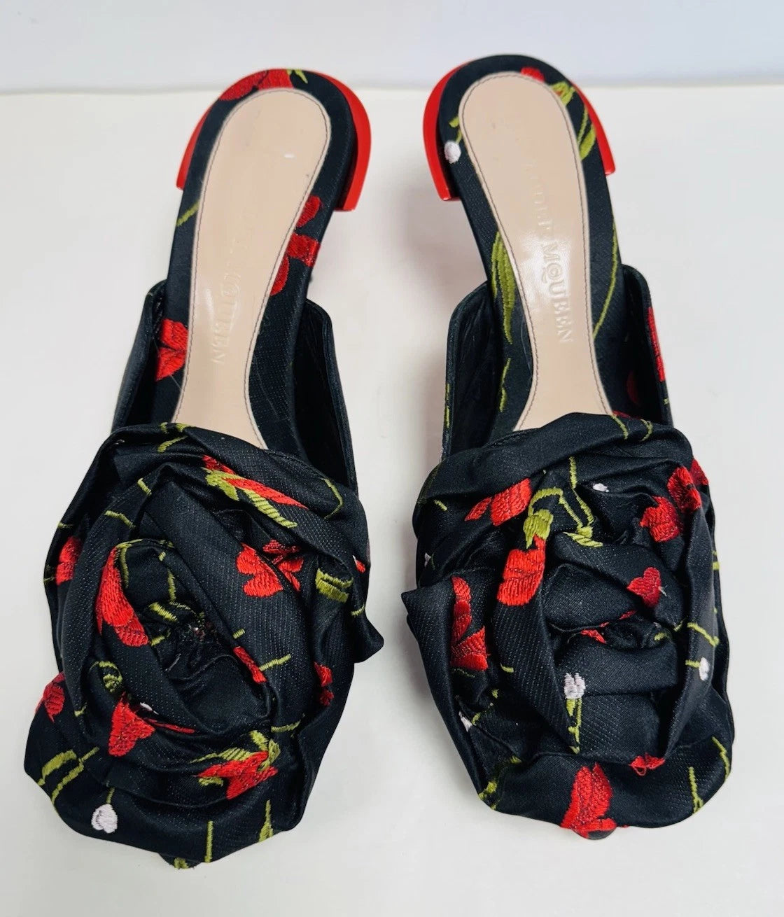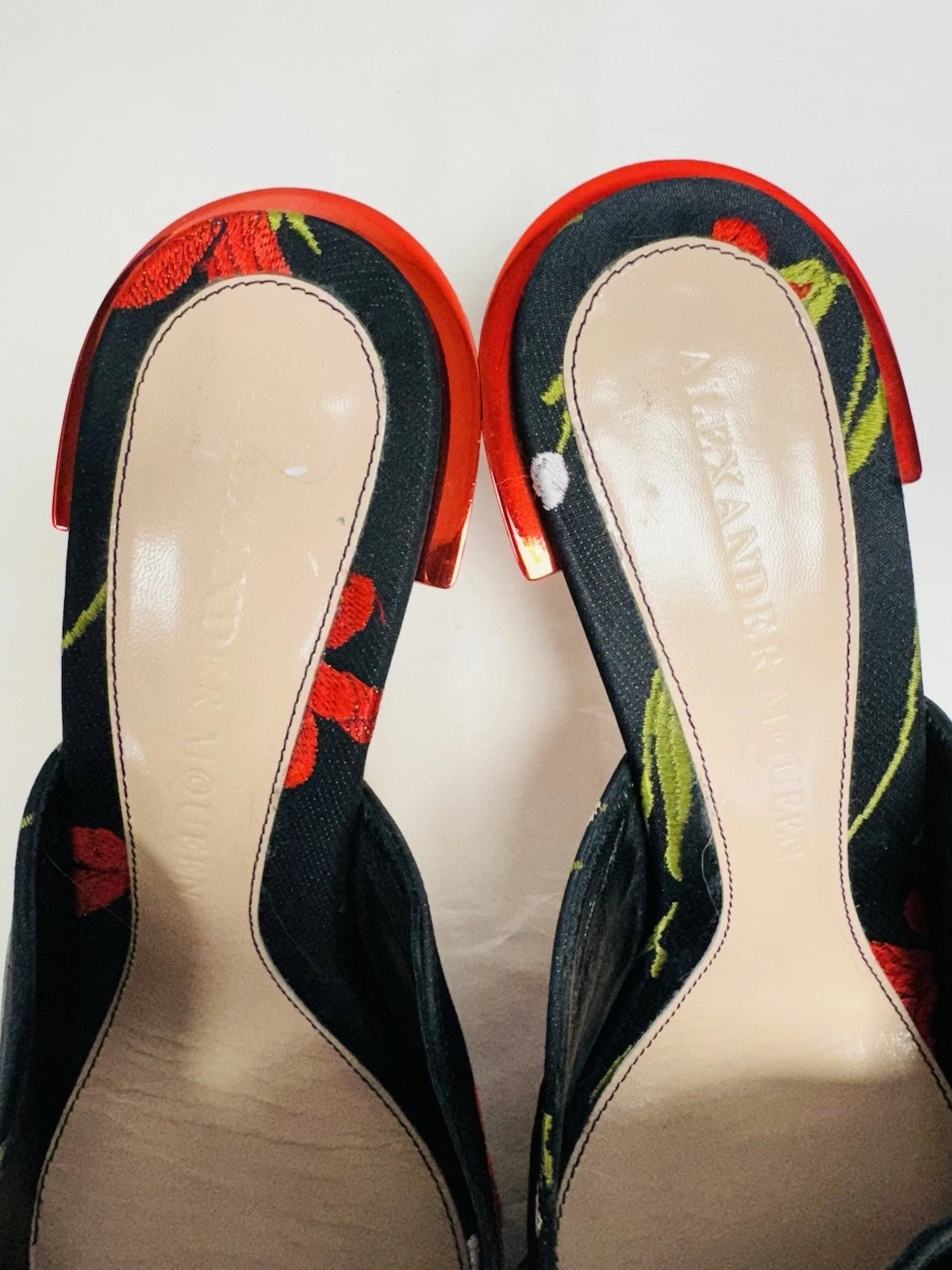 Alexander McQueen Black Floral Pattern Low Heel Women’s Mules Size UK 7