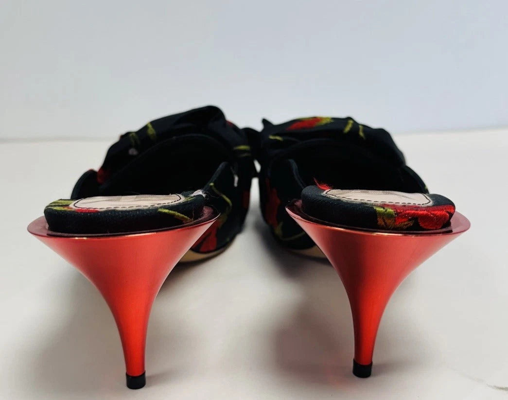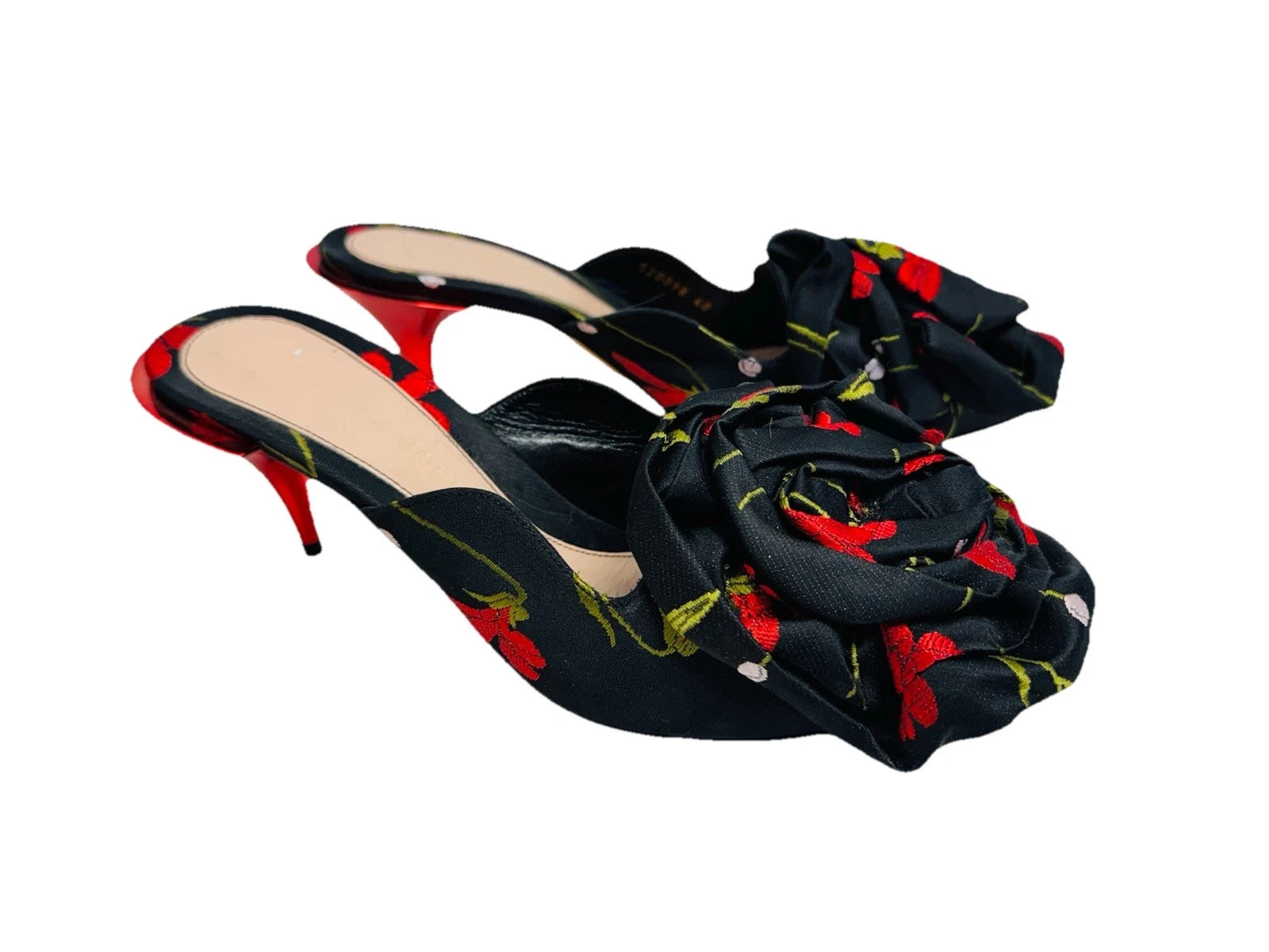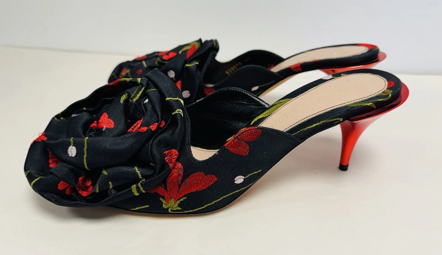 Alexander McQueen Black Floral Pattern Low Heel Women’s Mules Size UK 7