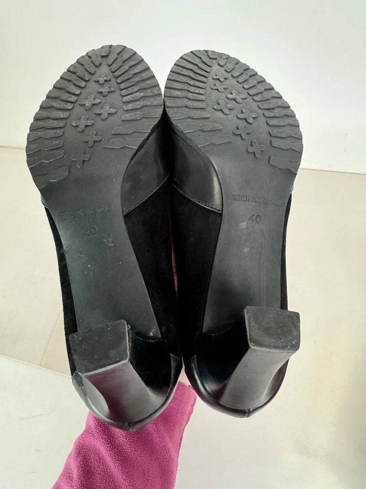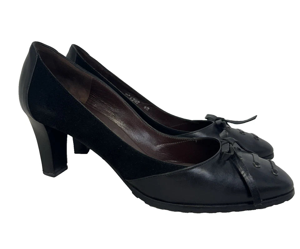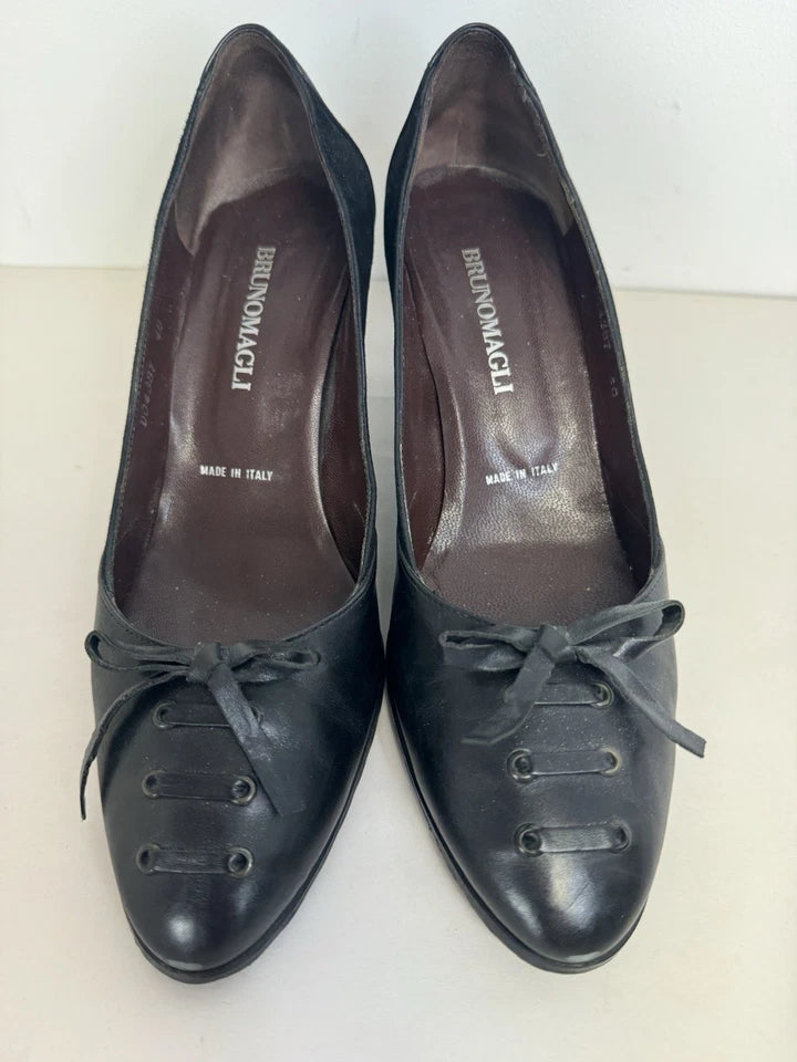 Bruno Magli Black Suede & Leather Bow Women’s Heeled Pumps Size 7