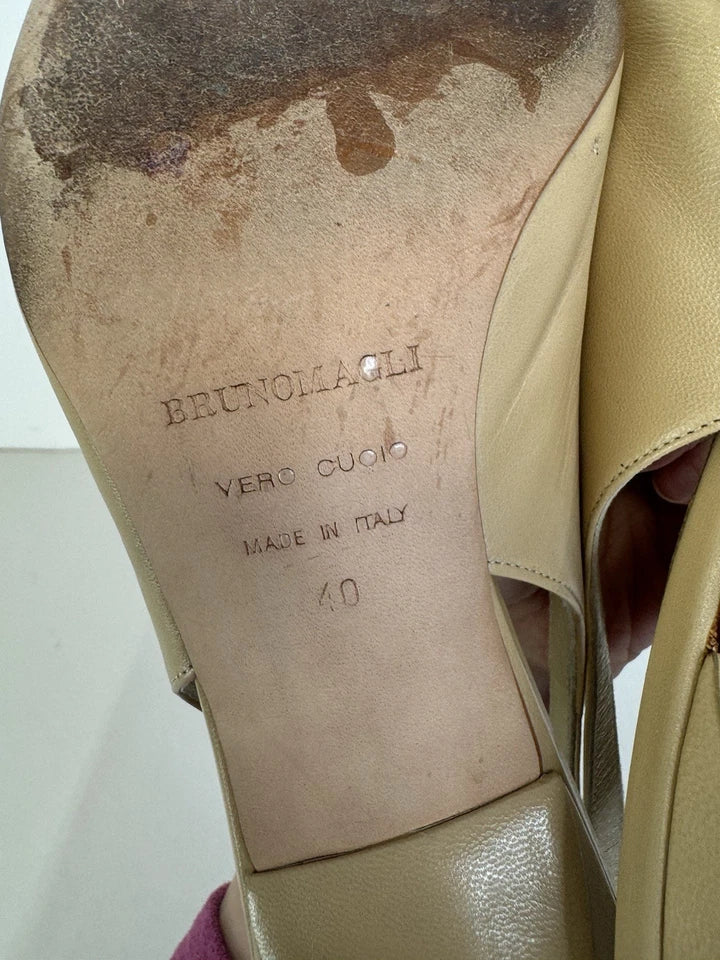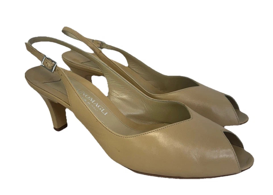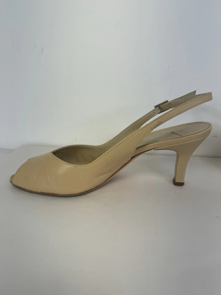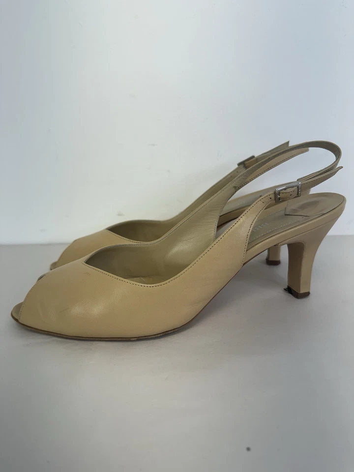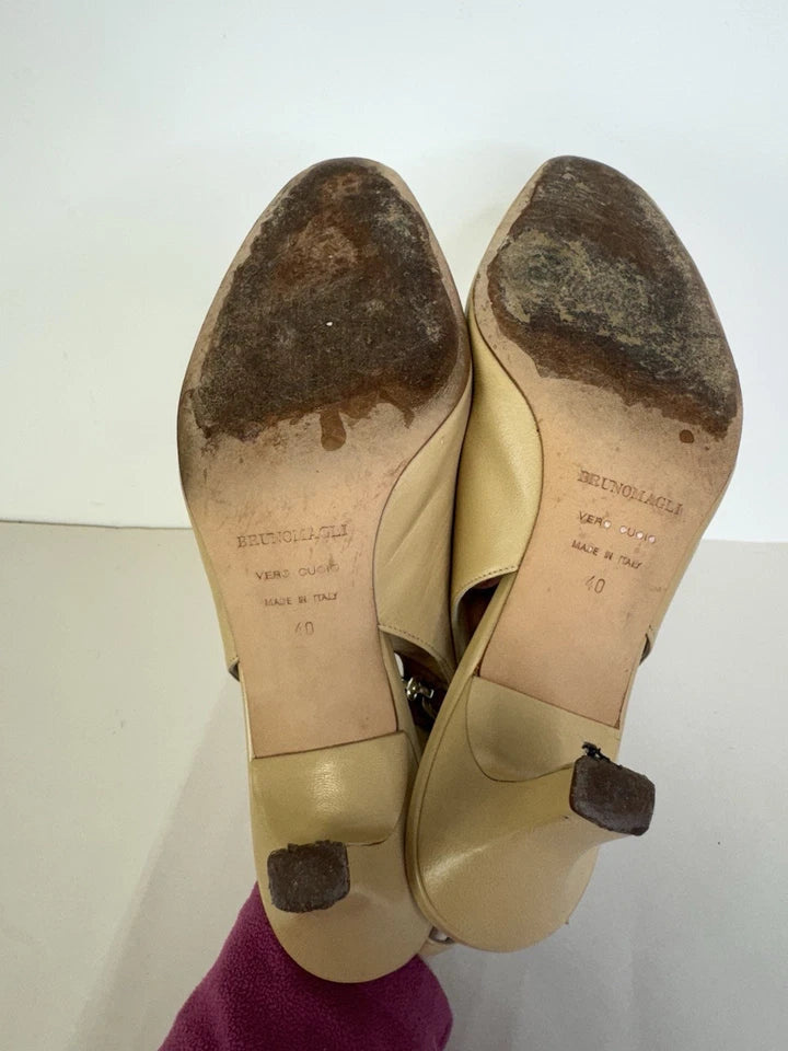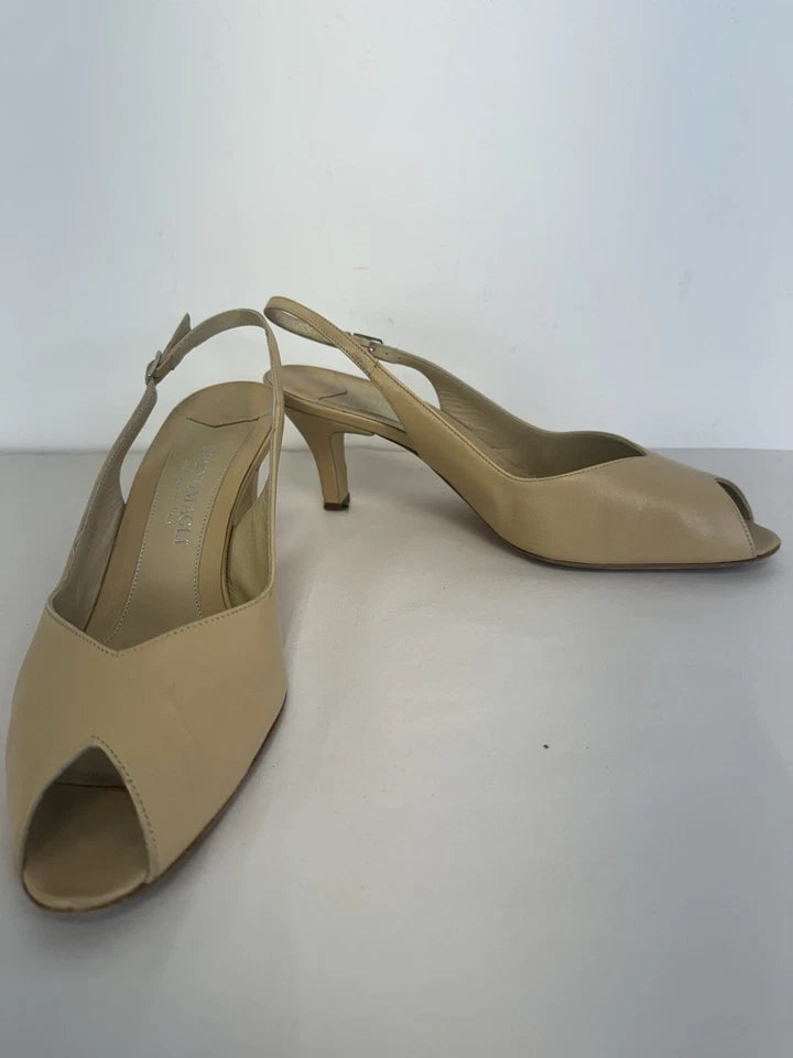Bruno Magli Tan Leather Peep Toe Women’s Heels Size UK 7