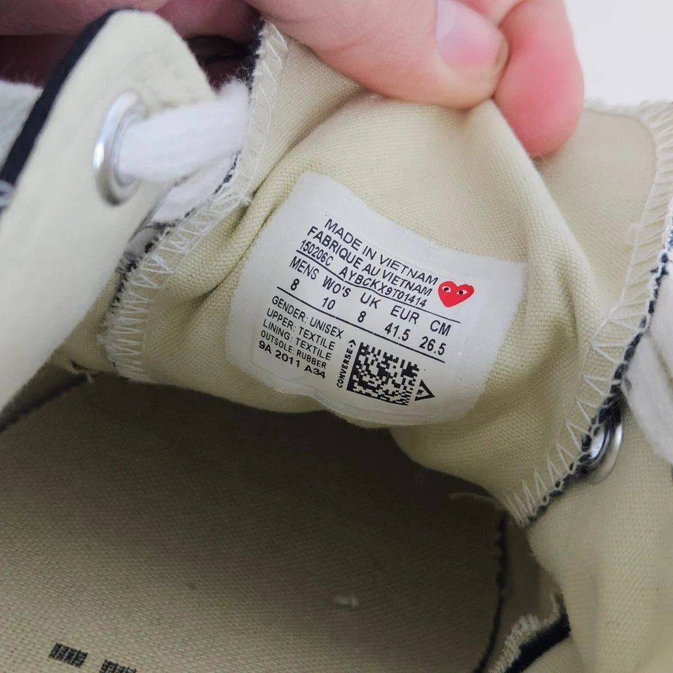 Converse Play Comme Des Garcon Unisex Black Low Top Sneakers Red Heart Size 8
