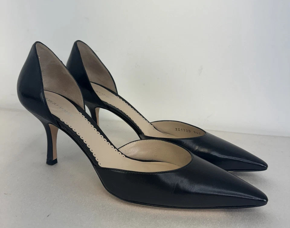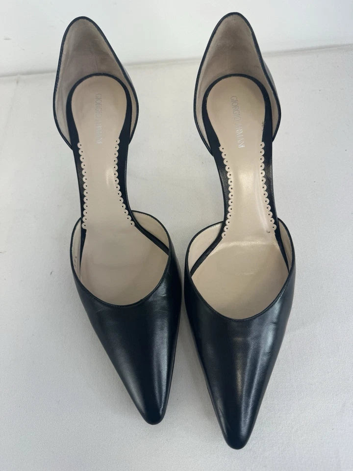 Giorgio Armani Black Leather Women’s Pointed Toe Heels Size UK6.5