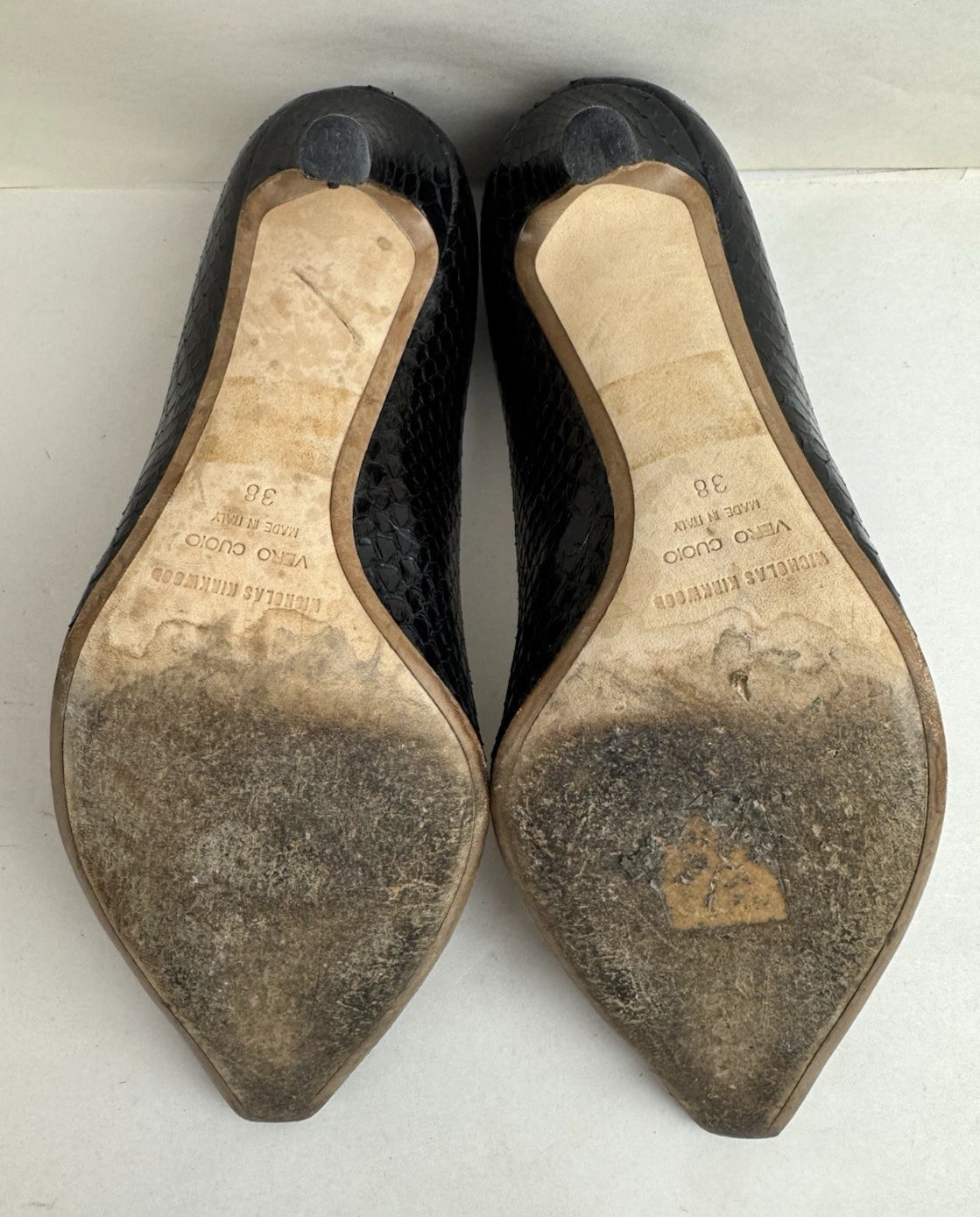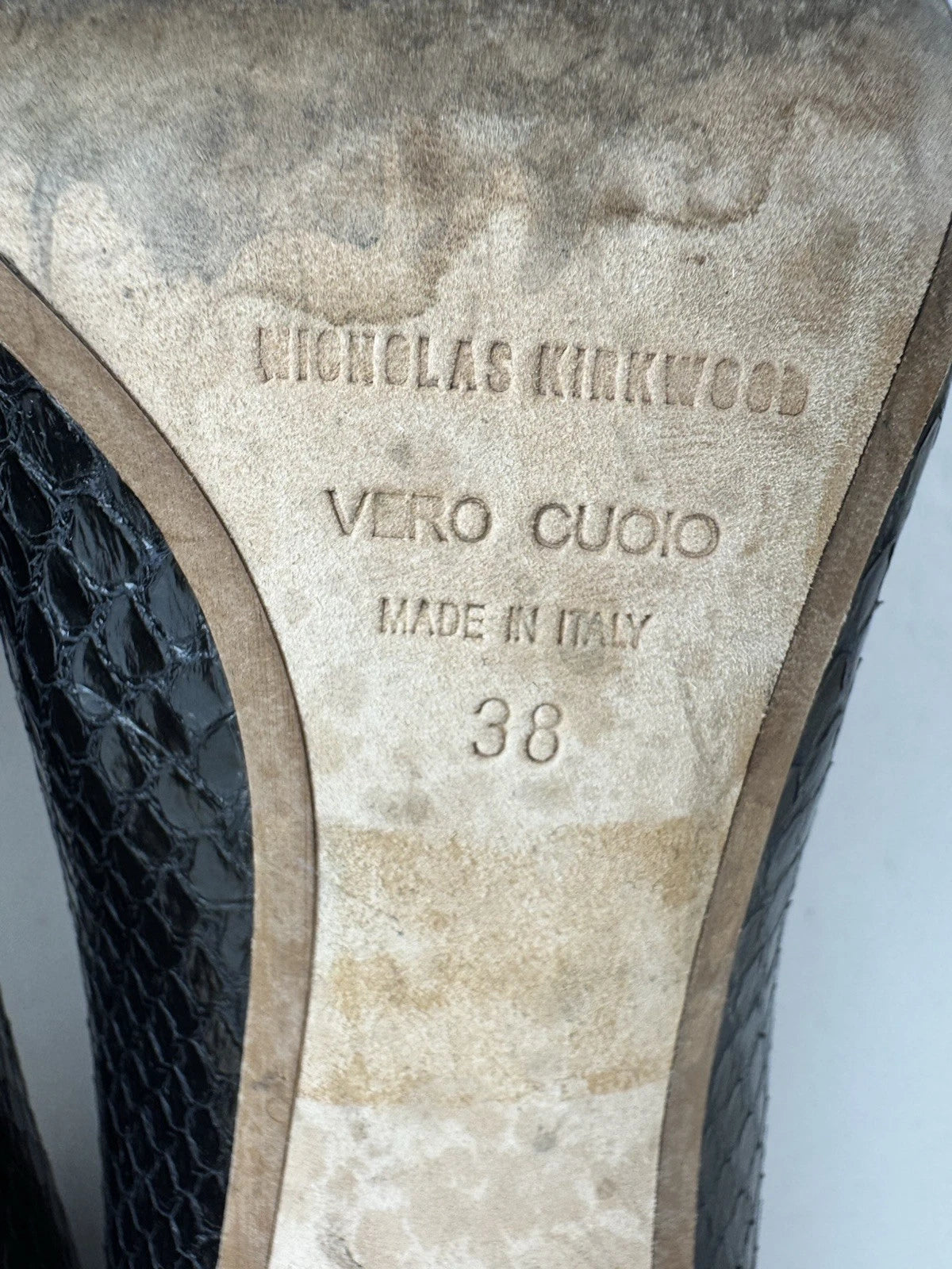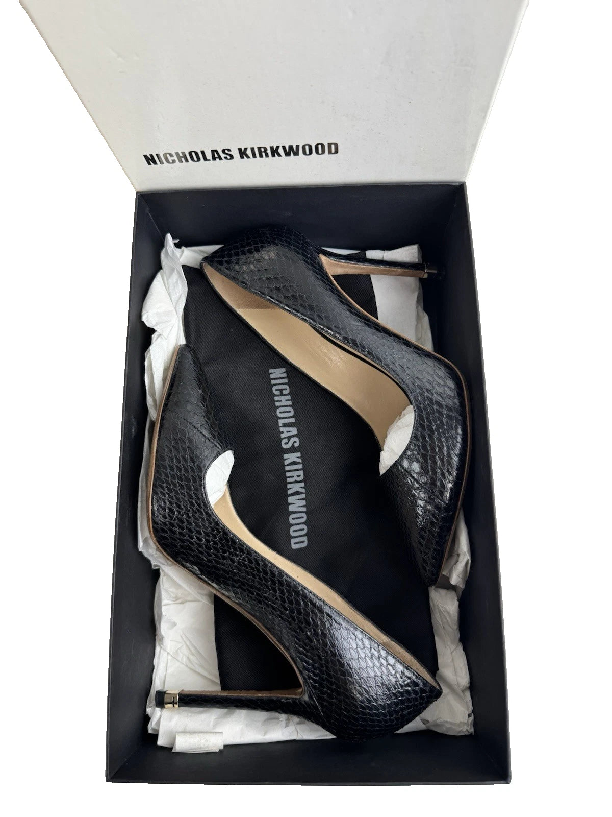 Nicholas Kirkwood Snakeskin Leather Stiletto High Heel Pumps Shoes Black Size 5 - BOXED