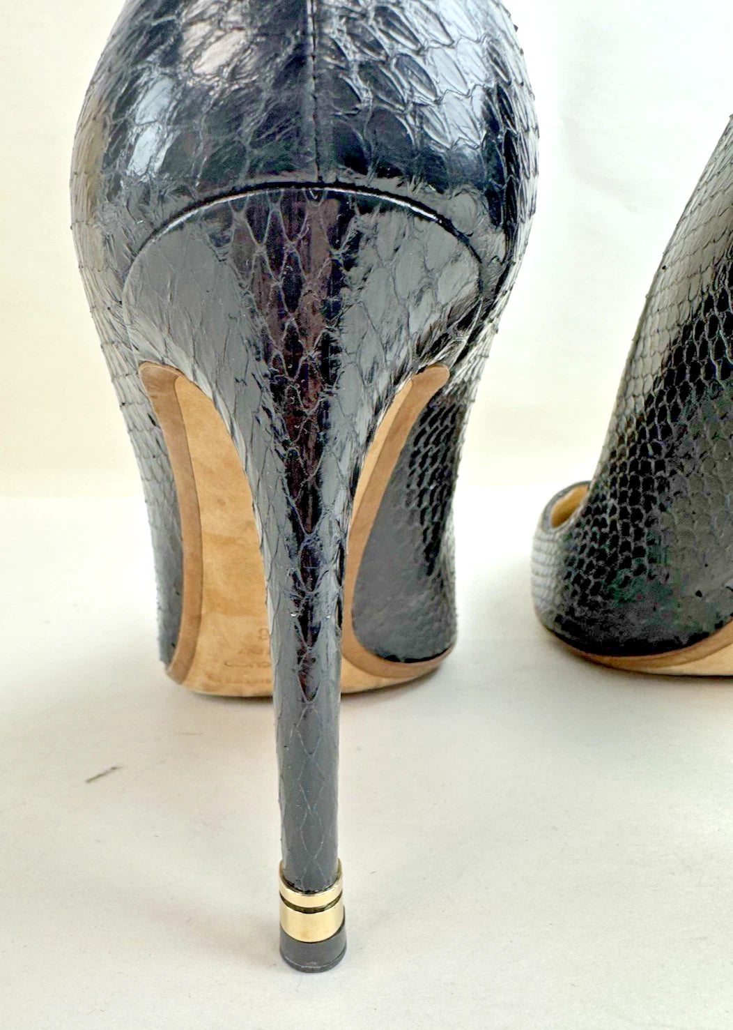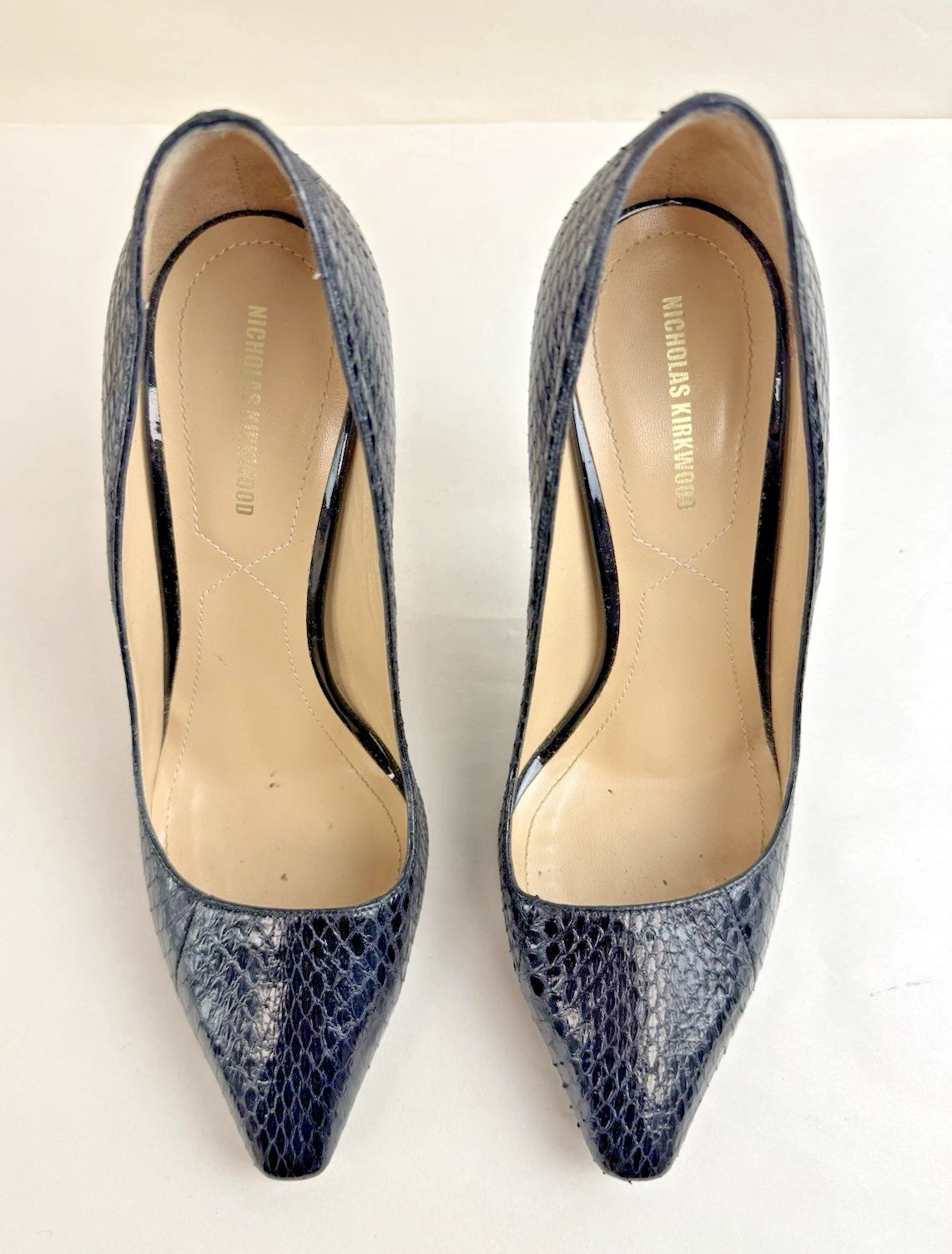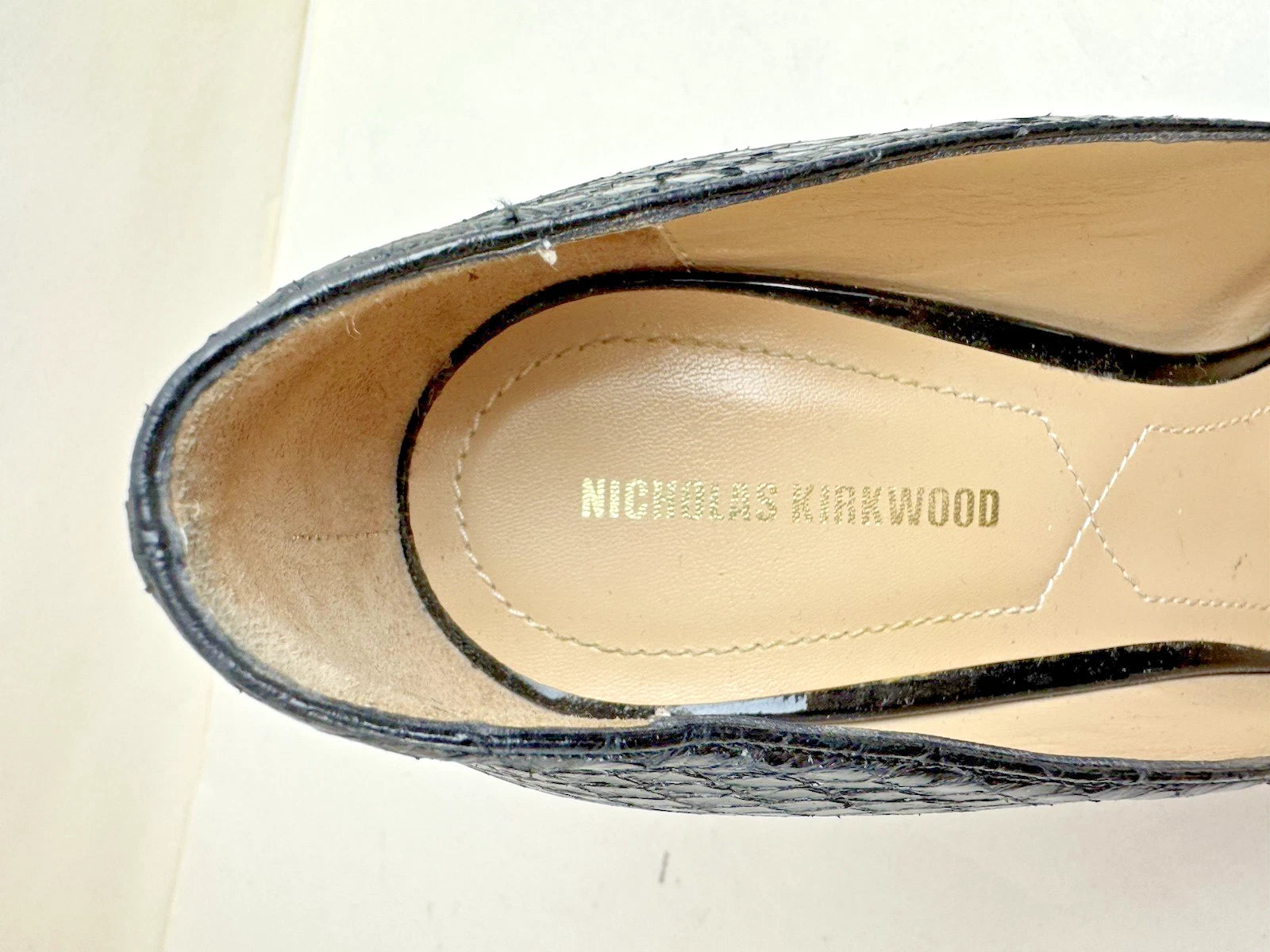 Nicholas Kirkwood Snakeskin Leather Stiletto High Heel Pumps Shoes Black Size 5 - BOXED
