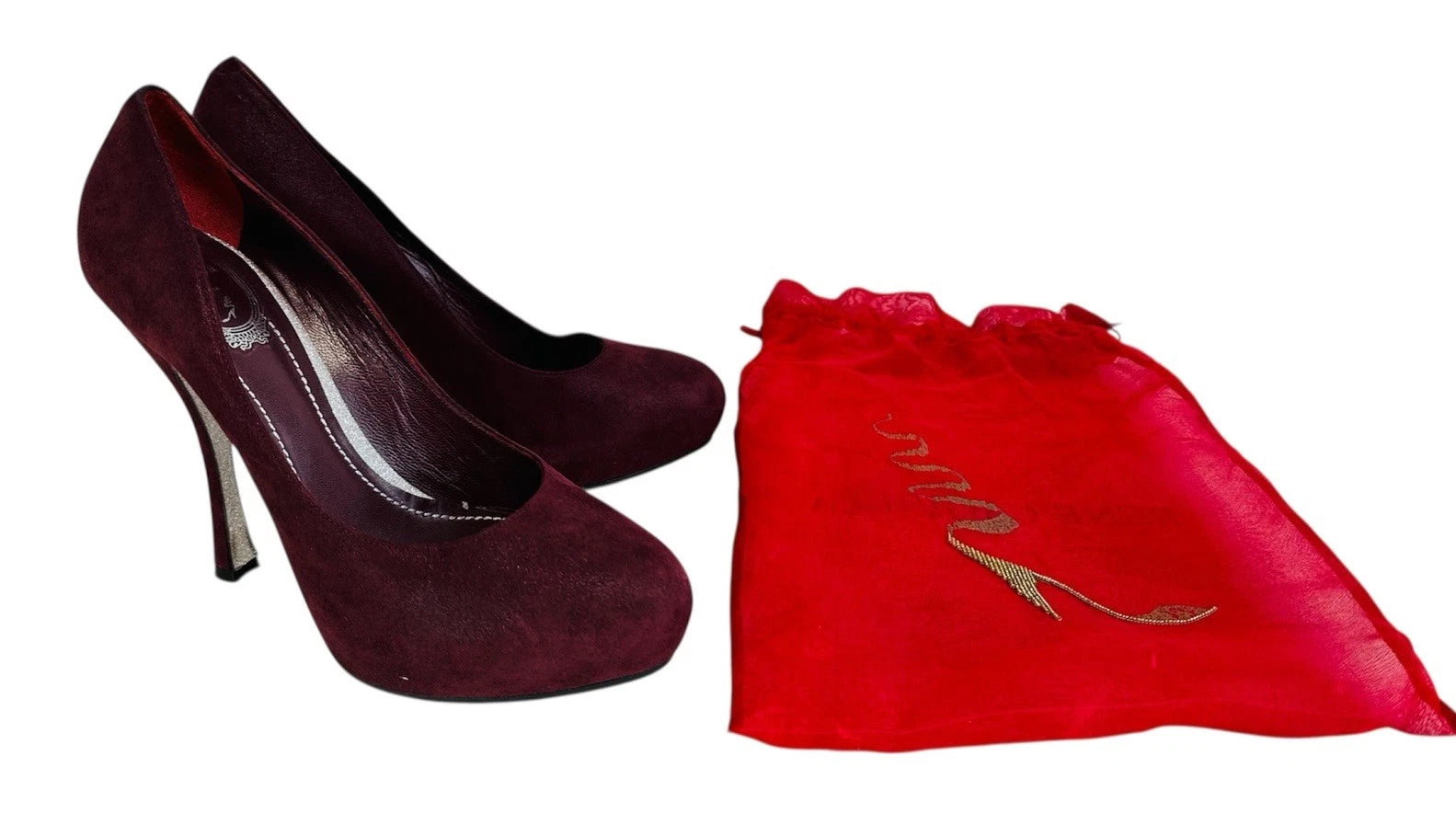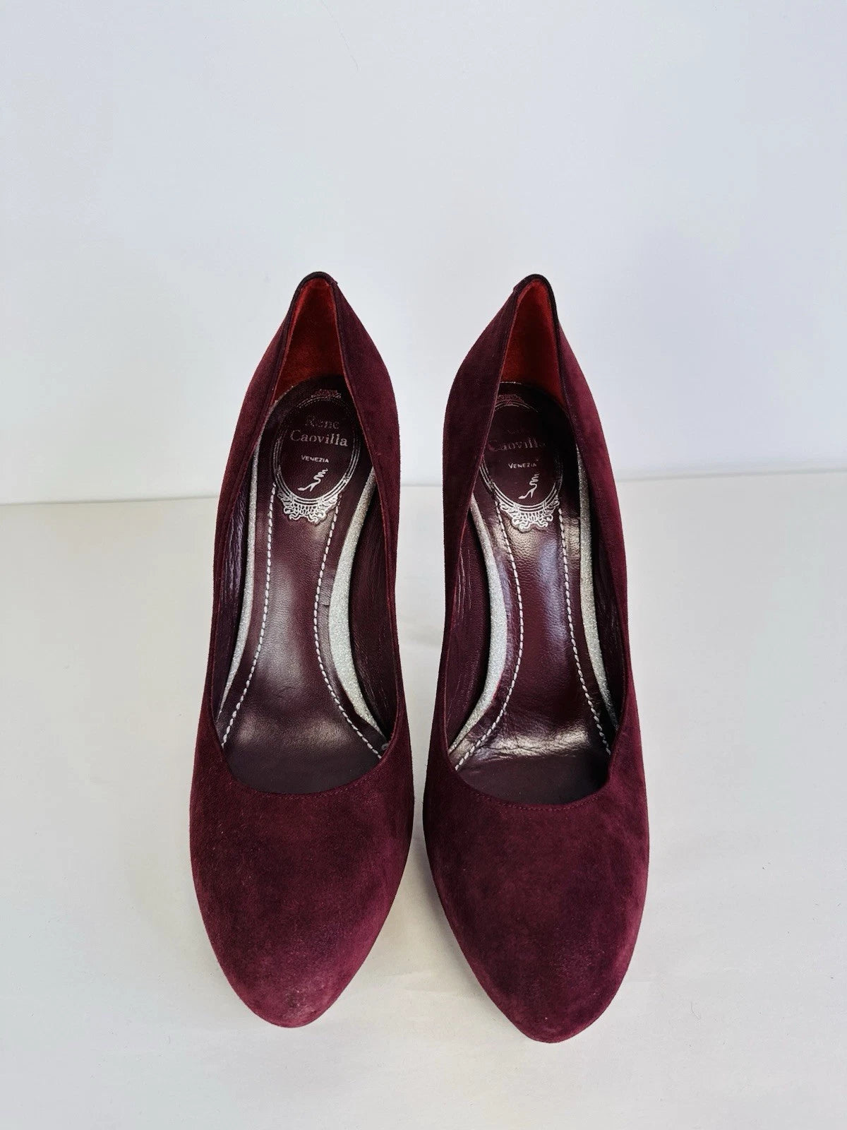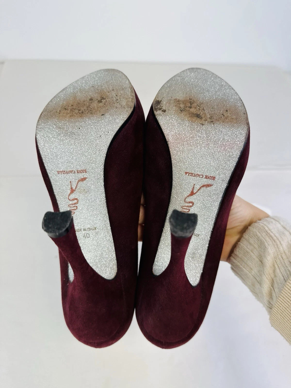 Rene Caovilla Suede Burgundy Stiletto Heels Size UK 7