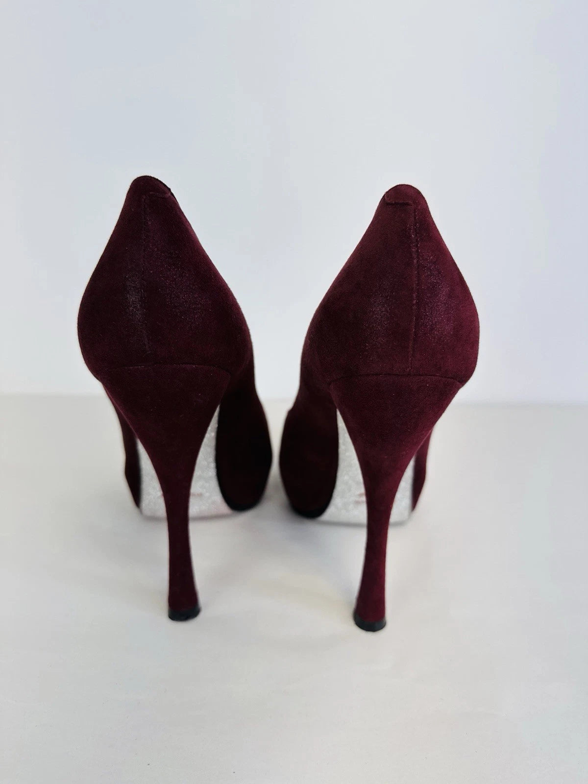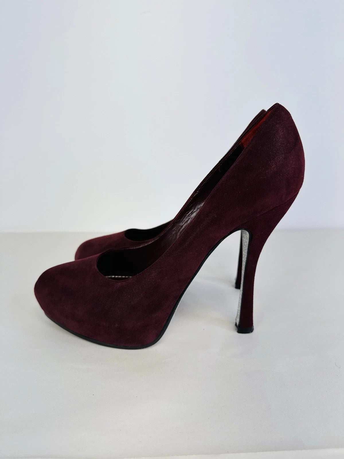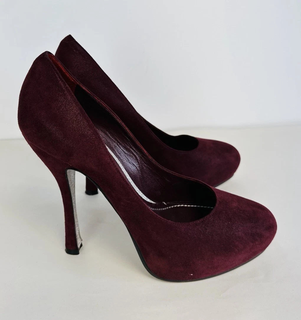 Rene Caovilla Suede Burgundy Stiletto Heels Size UK 7
