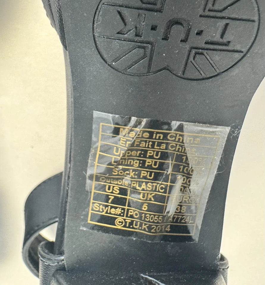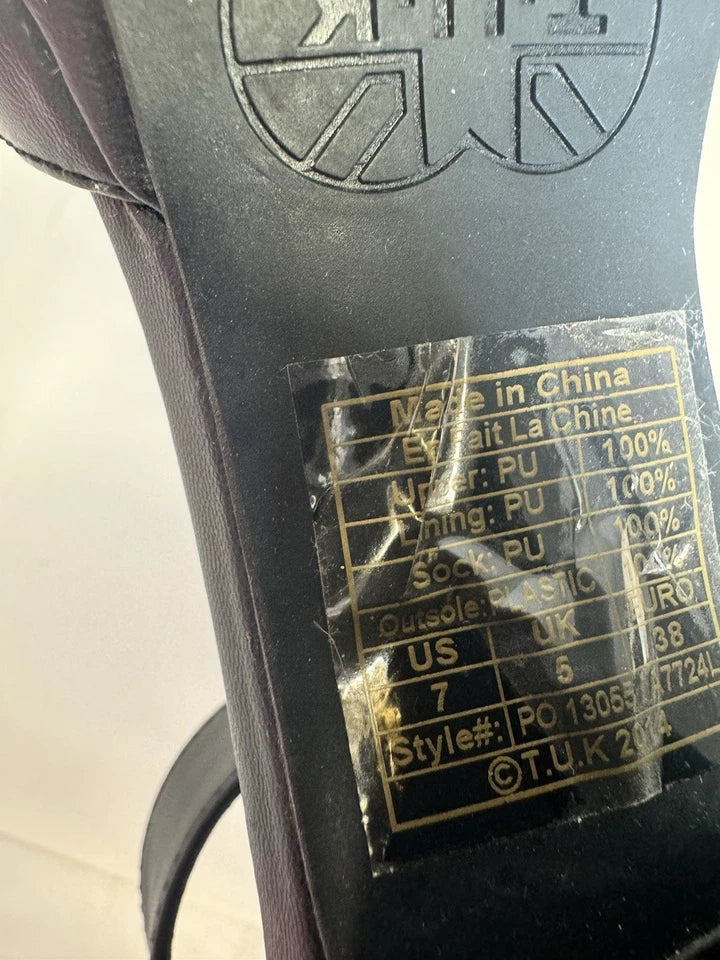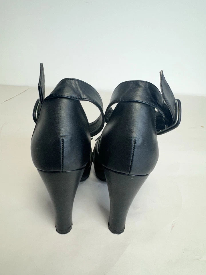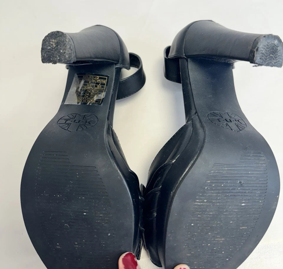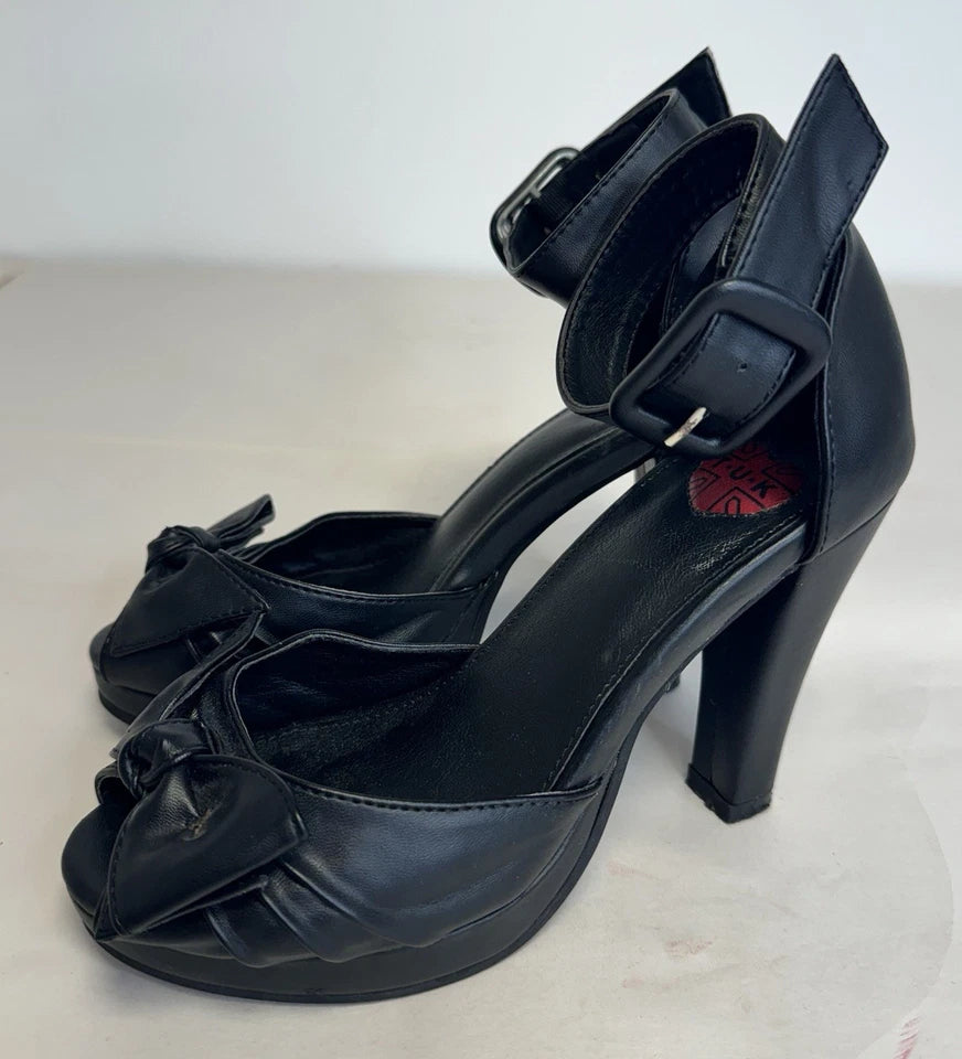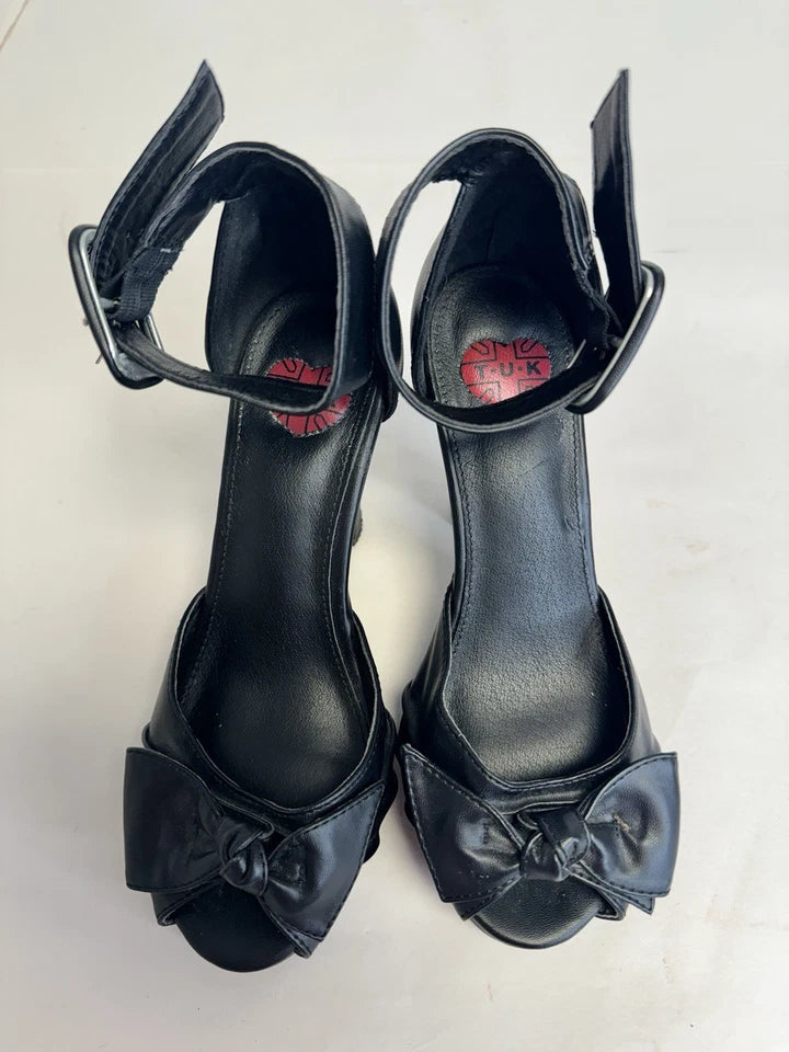 T.U.K Tuk Black Leather Bow Open Toe Women’s Heels Size UK5