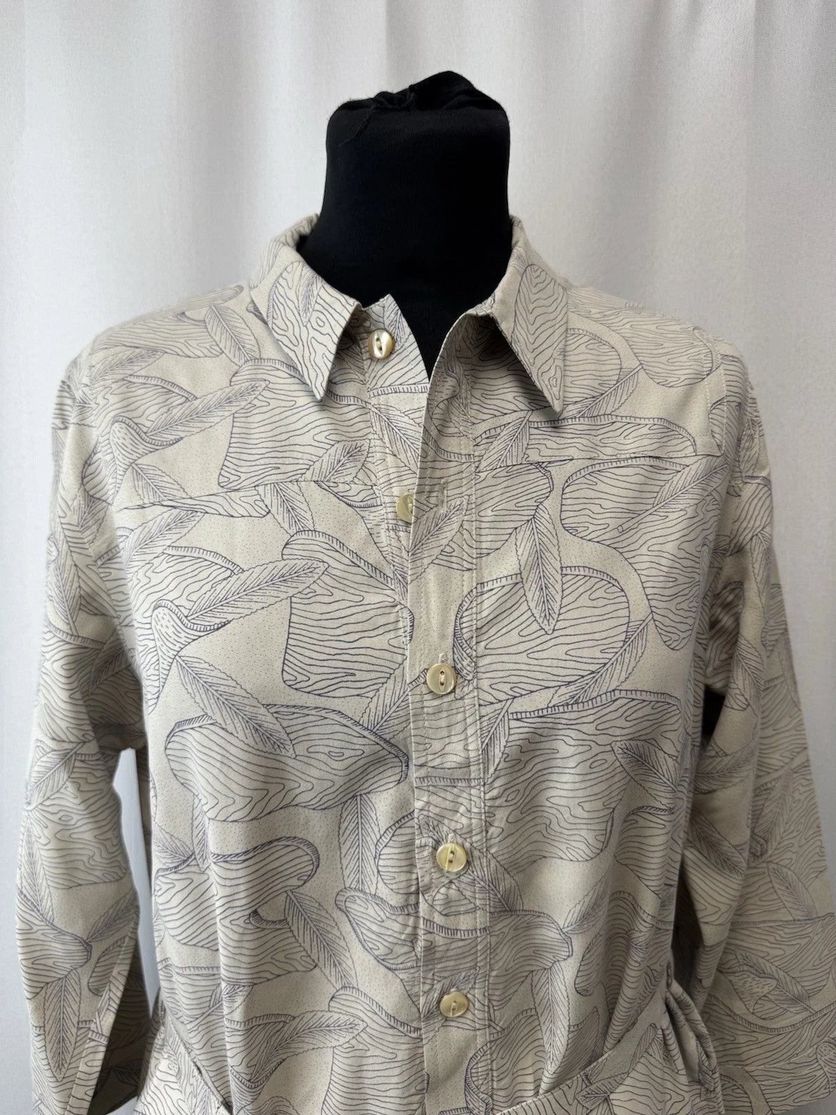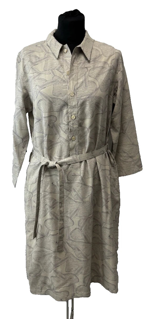 A. P. C. Women’s Silk Long Sleeve Belted Shirt Dress Beige Size 10