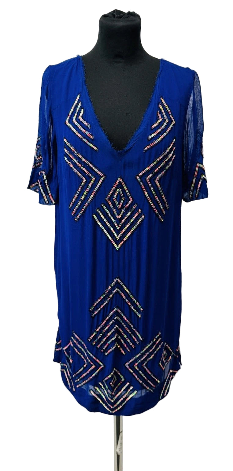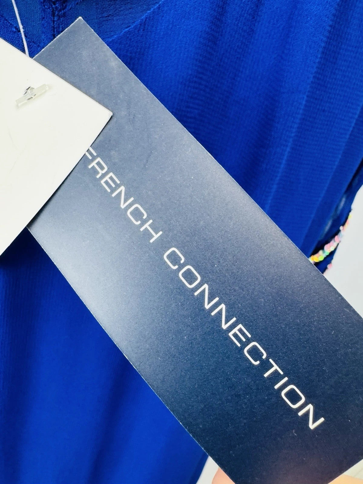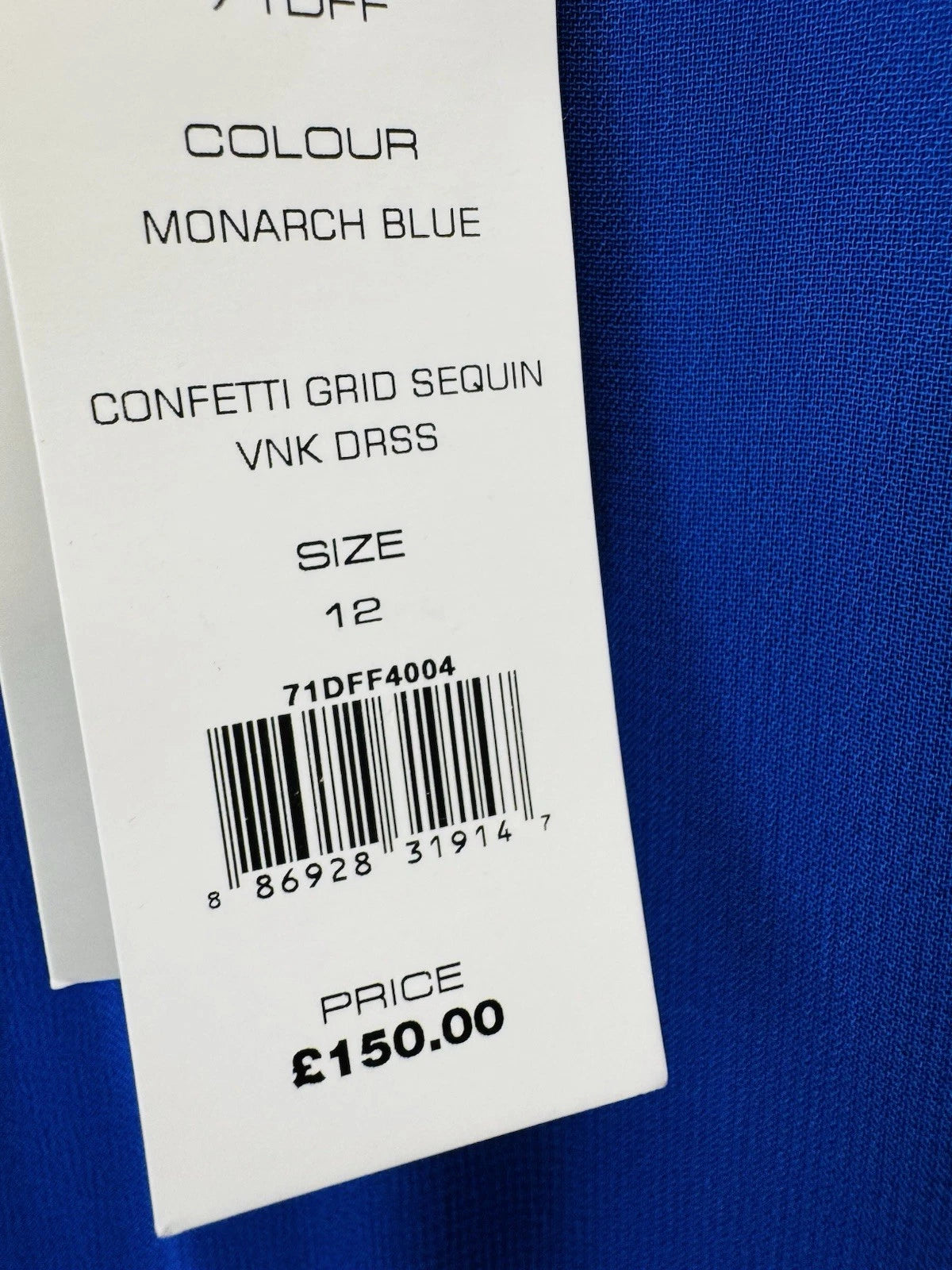 French Connection Royal Blue Confetti Grid Sequin V Neck Dress Size UK 12, NEW
